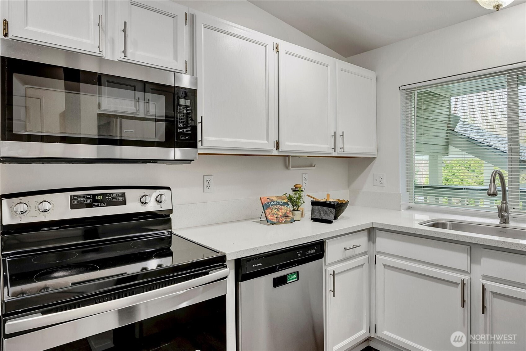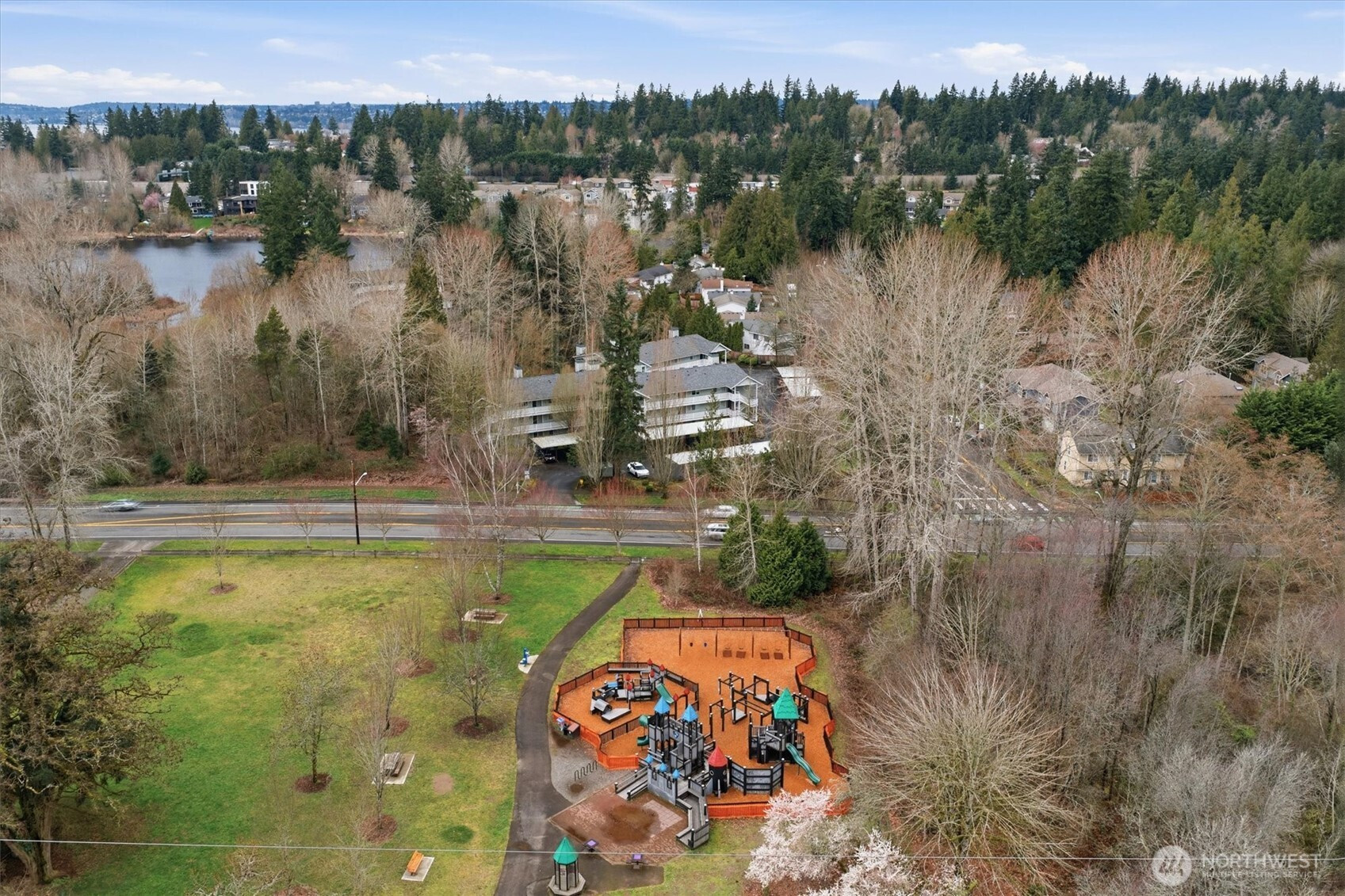 Top-floor living in the heart of Kirkland, this light-filled condo offers vaulted ceilings and serene views of a beautiful birch tree forest. Expansive floor-to-ceiling windows flood the home with natural light, creating a bright and inviting space. The well-designed layout features 2 bedrooms and 2 bathrooms, along with covered parking, an extra storage unit, and EV charging on site for added convenience. Set on Forbes Lake, this community is surrounded by nature, with trails right outside your front door. Directly across the street from the beloved North Rose Hill Woodlands Park, also known as Castle Park, and just a short walk to Mark Twain Elementary, this location offers the perfect balance of tranquility and accessibility.