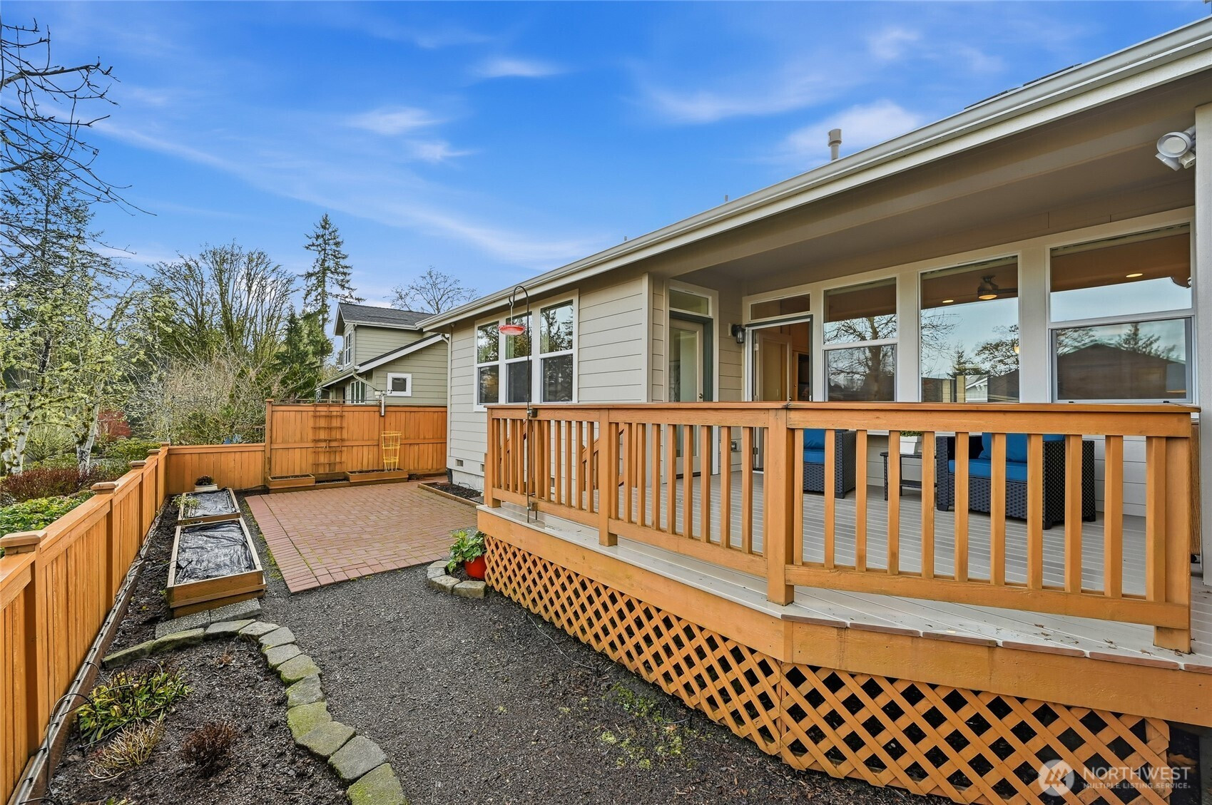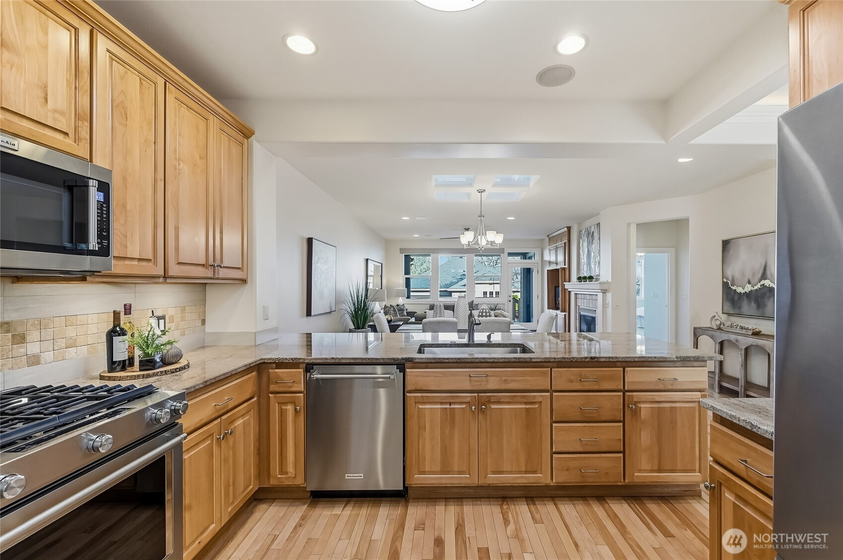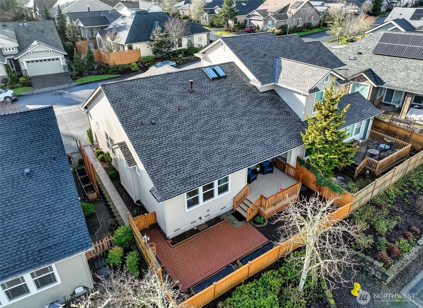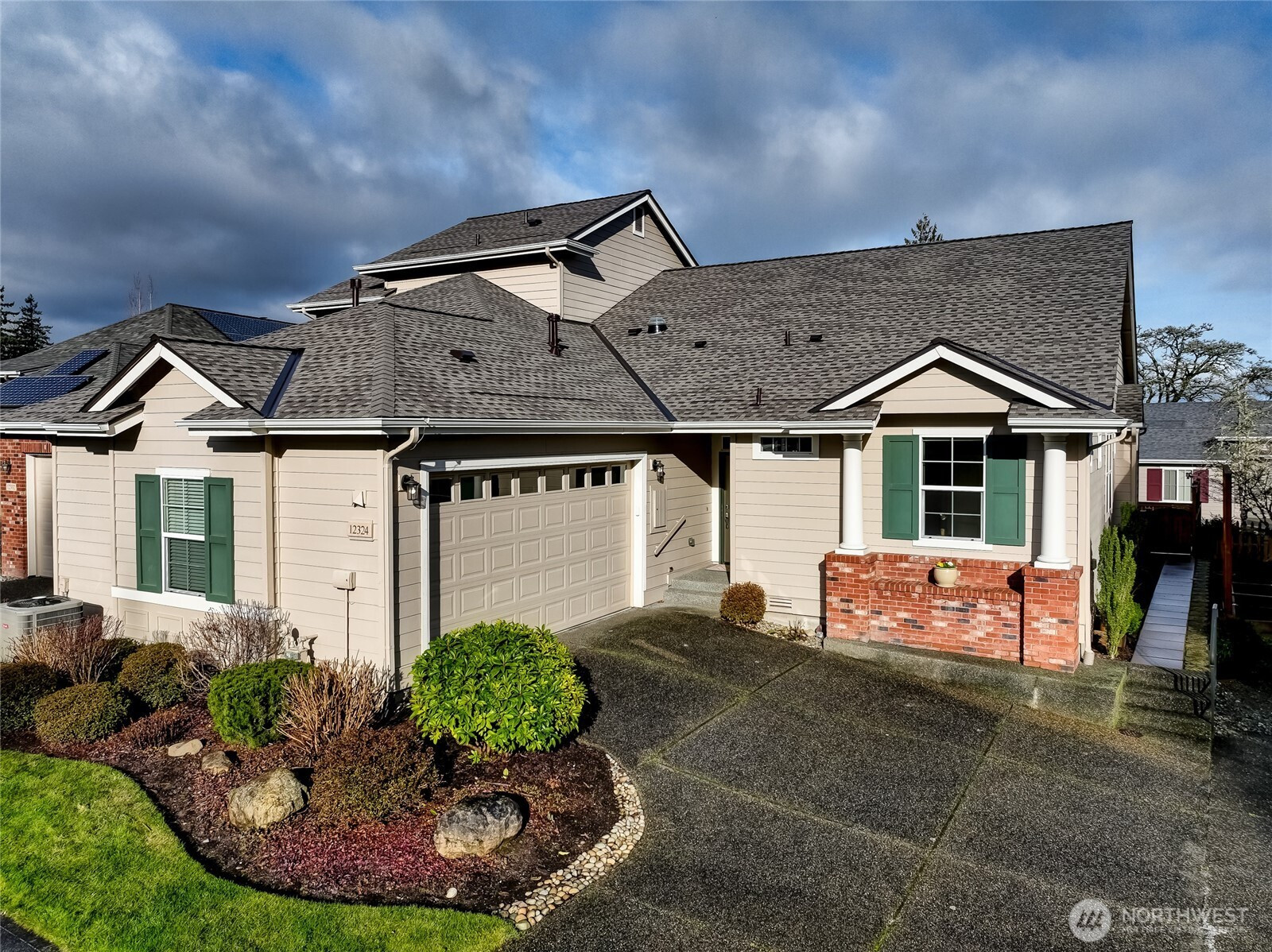 Enjoy year-round resort style living in this rare, 3-bedroom Union model home located on a sunny, level lot in the 55+ community of Trilogy at Redmond Ridge. Hardwood floors anchor the expansive great room which features a built-in media cabinet, a cozy gas fireplace and Silhouette window treatments. Wood cased windows frame the sweeping territorial and big sky views. The beautifully updated chef's kitchen includes 42" Maple cabinetry with handy pullouts topped with gorgeous granite countertops, a newer Kitchen Aid stainless steel appliance package, large walk-in pantry & Solartube skylight. Oversized primary bedroom and beautiful ensuite bath features a new step-in shower, walk-in closet plus a reach-in closet. The additional 2 bedrooms provide flexible bedroom, office or craft area options. They share a full bath that can create a 2-bedroom guest suite for your long, or short term, guests. Superb outdoor space includes an expanded, partially covered, Wolf composite deck plus a sunny brick patio area with raised beds for easy gardening. The fully fenced backyard is perfect for your four-legged friend. 2 car garage has lots of storage cabinets and a handy work bench ideal for household projects. Premium millwork package. Fischer Paykel washer and dryer. H2O tank with H2O water recirculating pump. Newer furnace and A/C. The BRAND NEW ROOF with transferable warranty is the cherry on top. Ages 55+