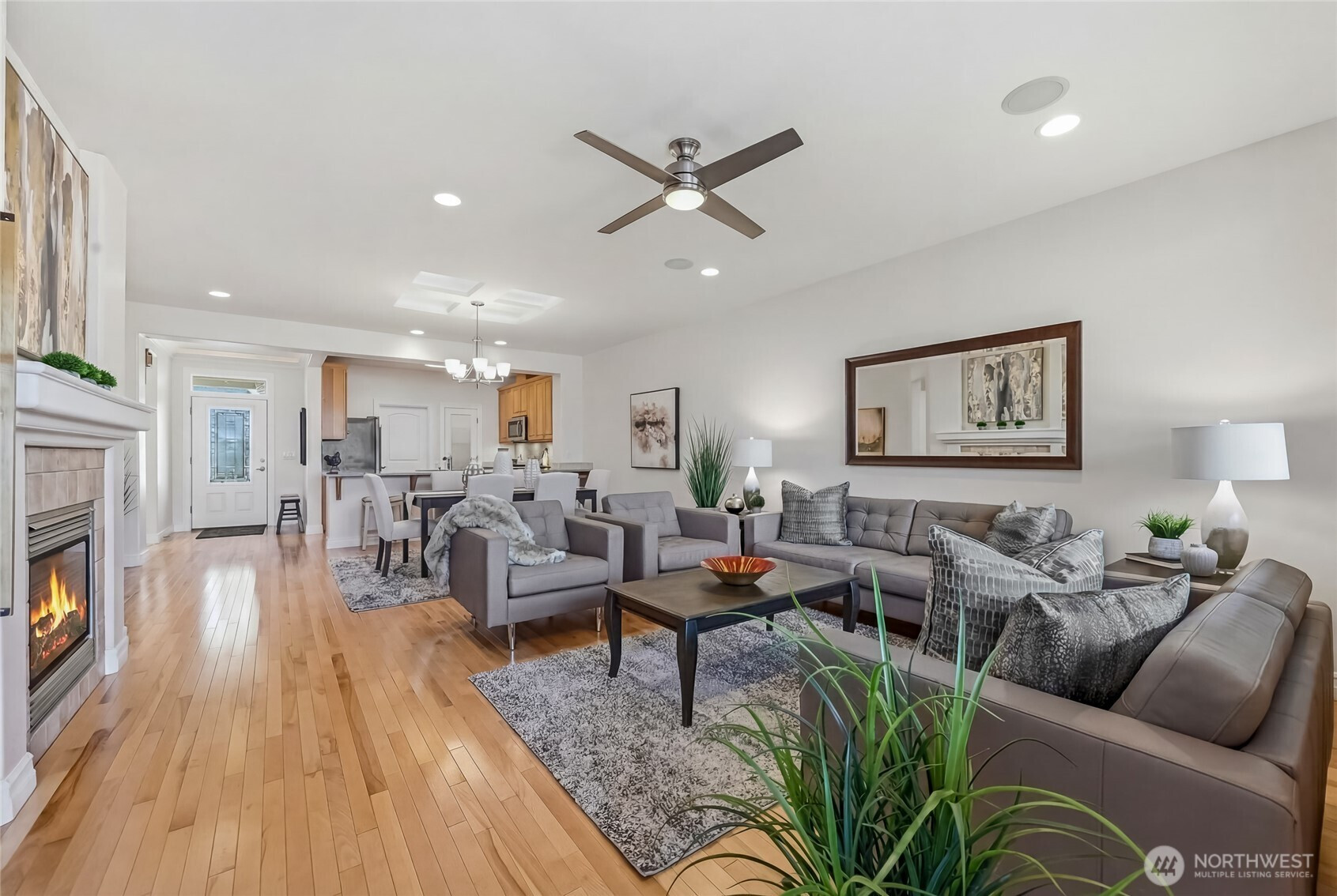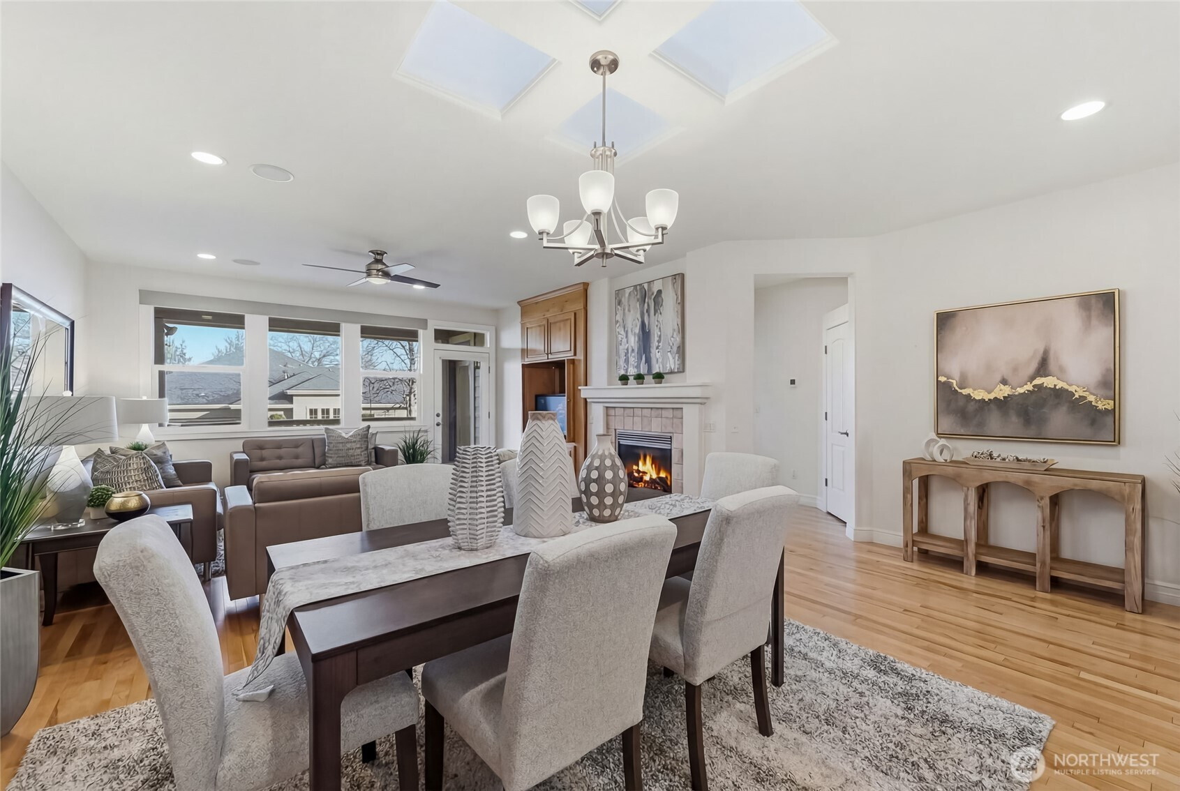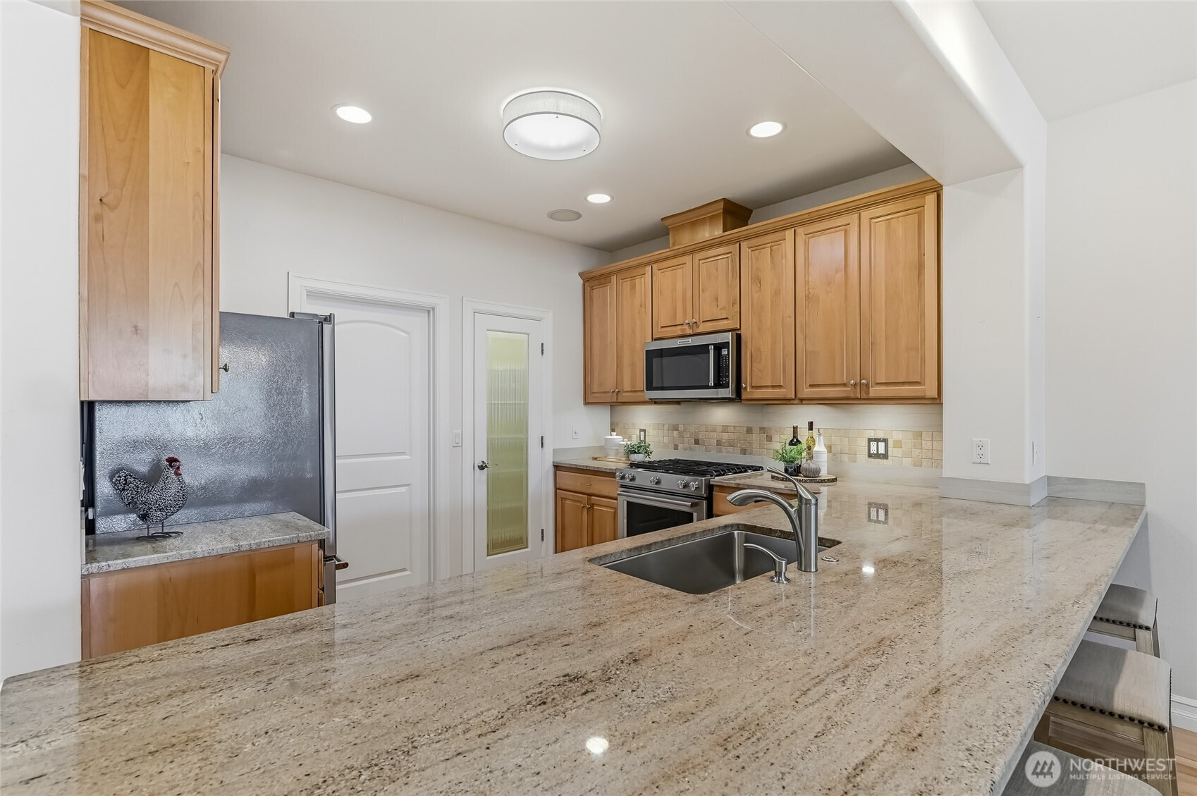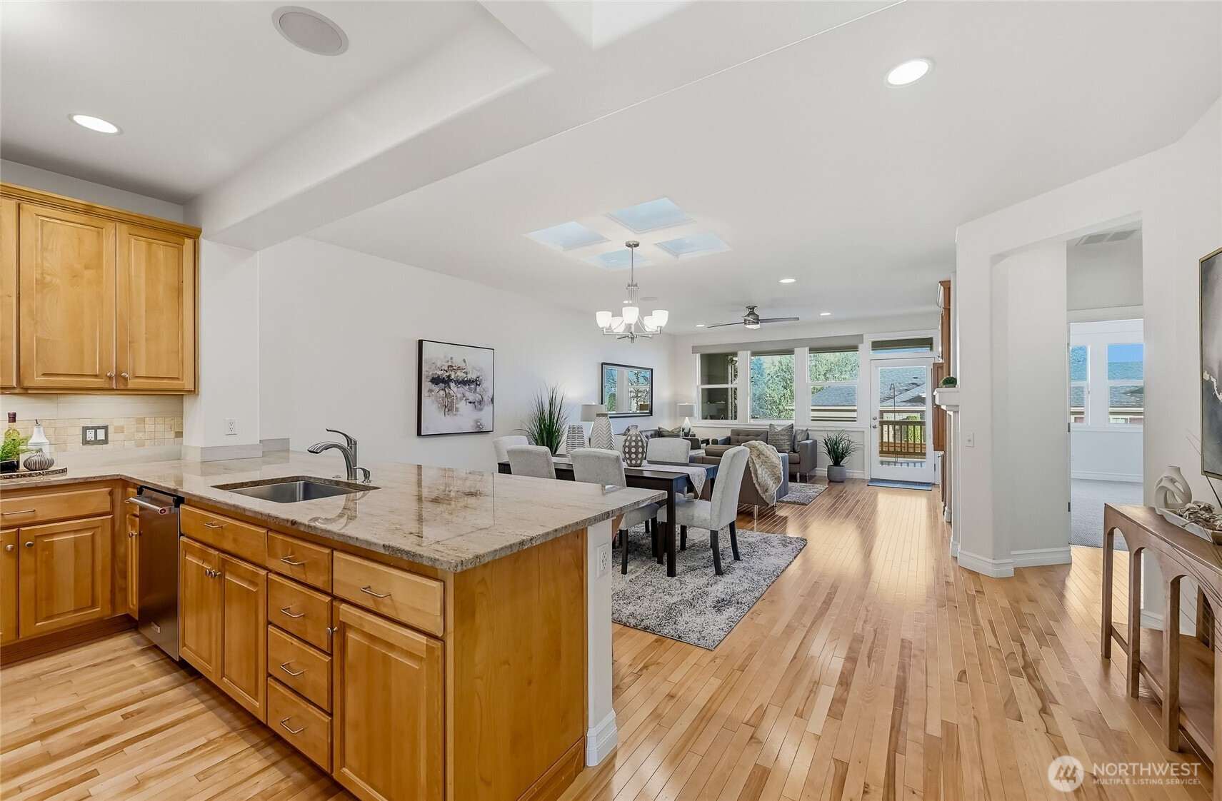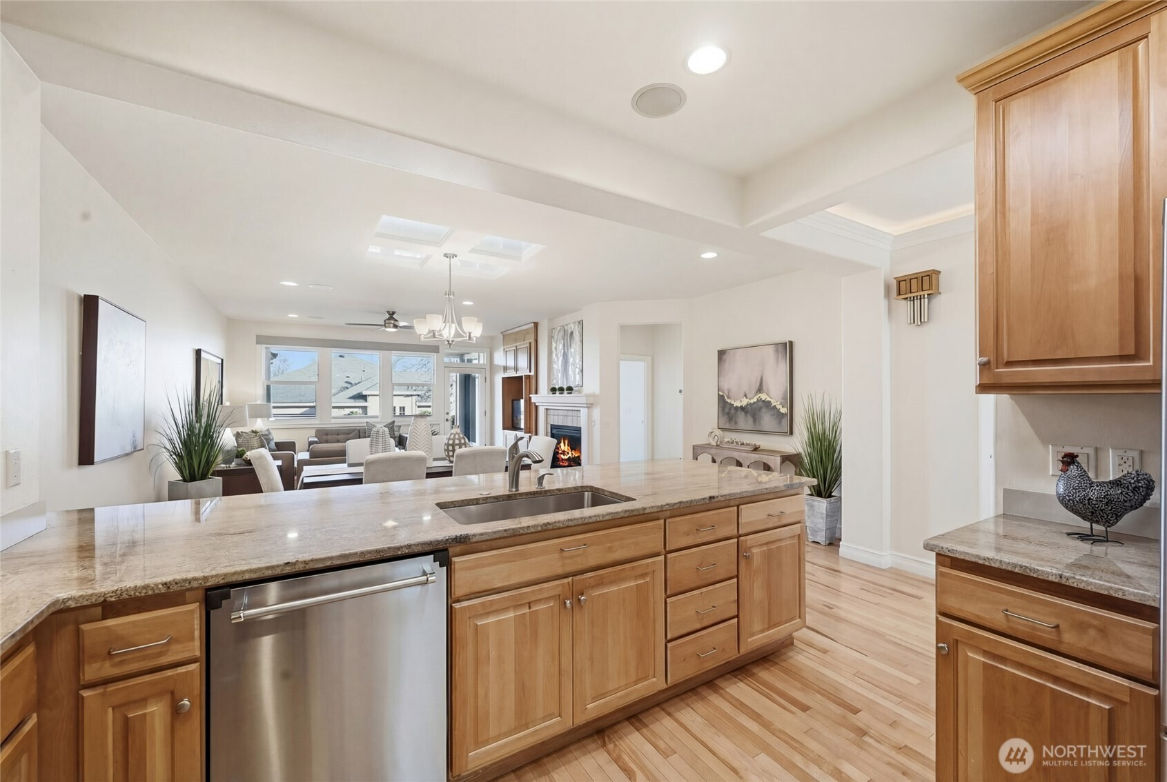 Enjoy year-round resort style living in this rare, 3-bedroom Union model home located on a sunny, level lot in the 55+ community of Trilogy at Redmond Ridge. Hardwood floors anchor the expansive great room which features a built-in media cabinet, a cozy gas fireplace and Silhouette window treatments. Wood cased windows frame the sweeping territorial and big sky views. The beautifully updated chef's kitchen includes 42" Maple cabinetry with handy pullouts topped with gorgeous granite countertops, a newer Kitchen Aid stainless steel appliance package, large walk-in pantry & Solartube skylight. Oversized primary bedroom and beautiful ensuite bath features a new step-in shower, walk-in closet plus a reach-in closet. The additional 2 bedrooms provide flexible bedroom, office or craft area options. They share a full bath that can create a 2-bedroom guest suite for your long, or short term, guests. Superb outdoor space includes an expanded, partially covered, Wolf composite deck plus a sunny brick patio area with raised beds for easy gardening. The fully fenced backyard is perfect for your four-legged friend. 2 car garage has lots of storage cabinets and a handy work bench ideal for household projects. Premium millwork package. Fischer Paykel washer and dryer. H2O tank with H2O water recirculating pump. Newer furnace and A/C. The BRAND NEW ROOF with transferable warranty is the cherry on top. Ages 55+