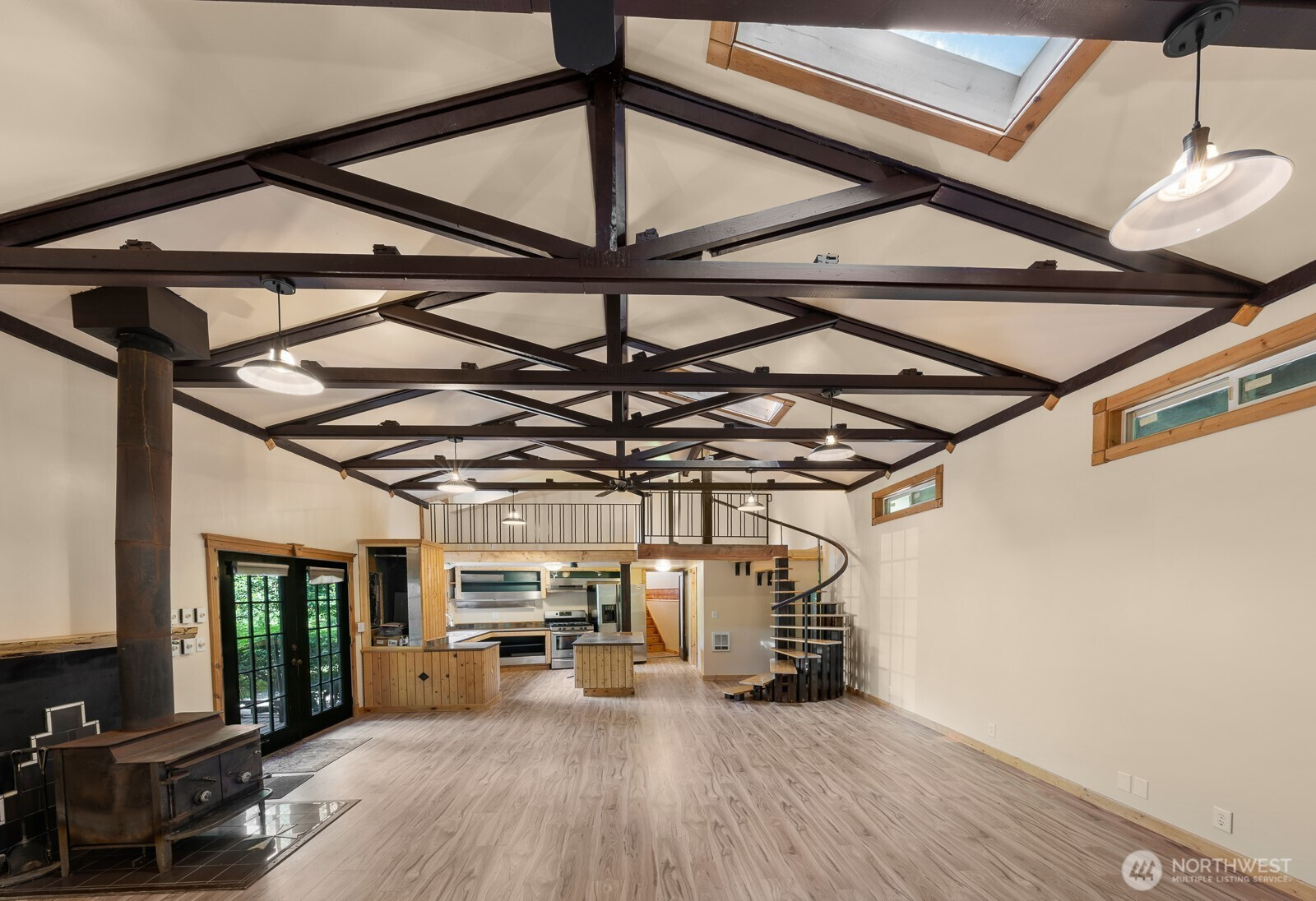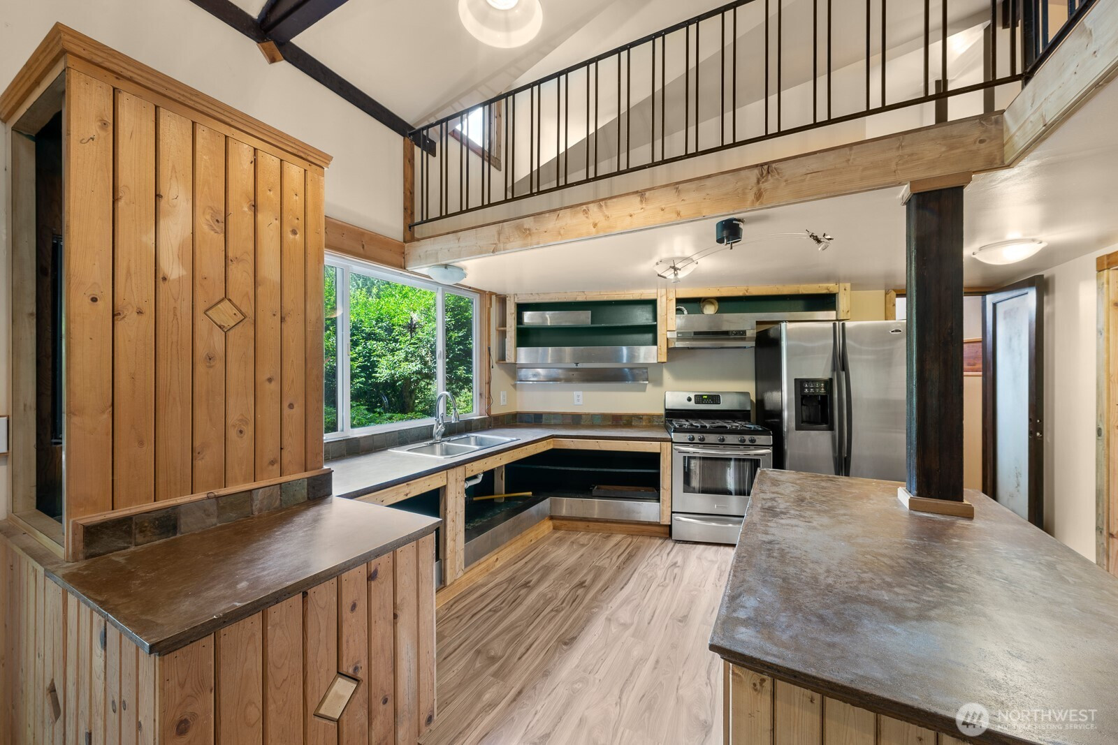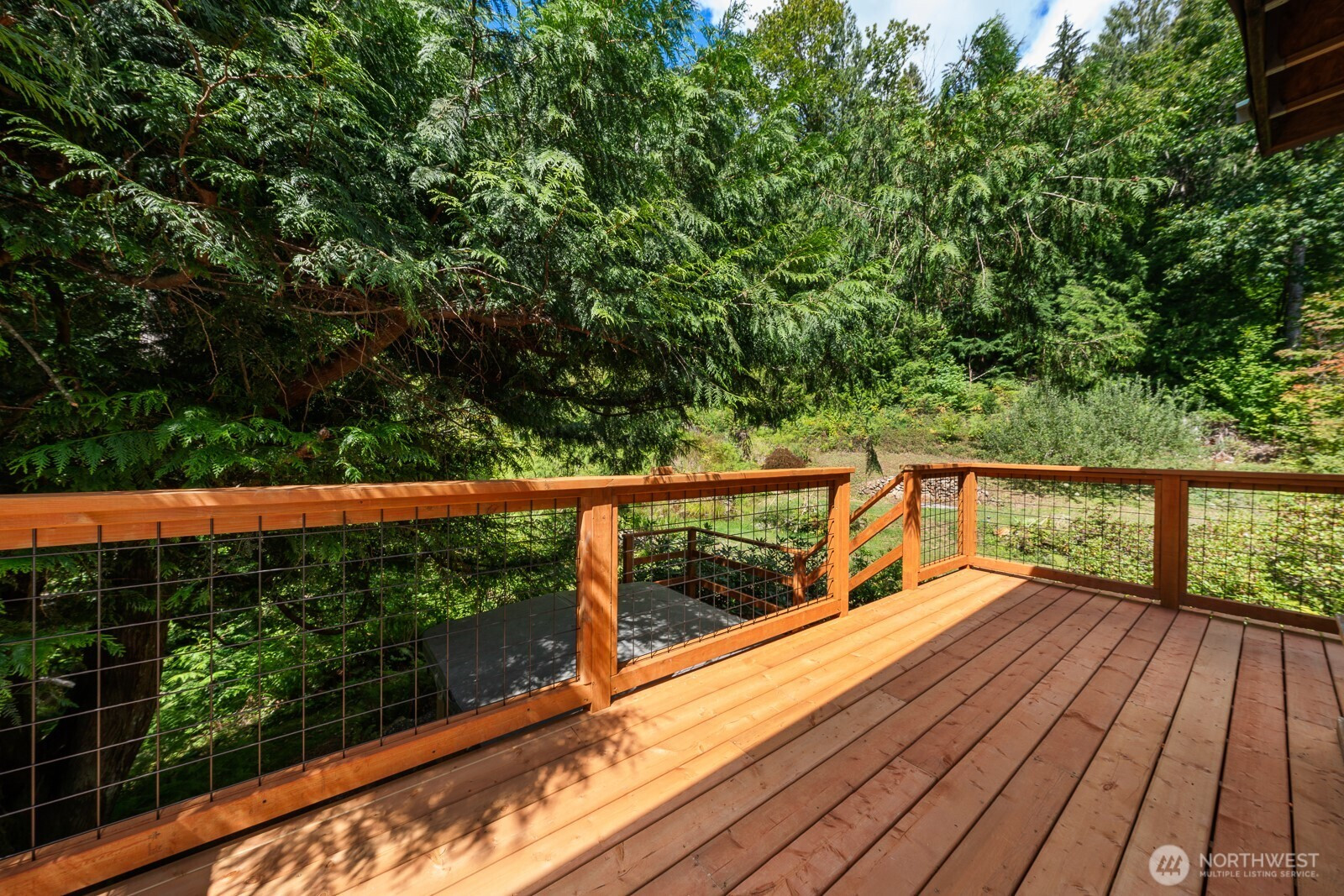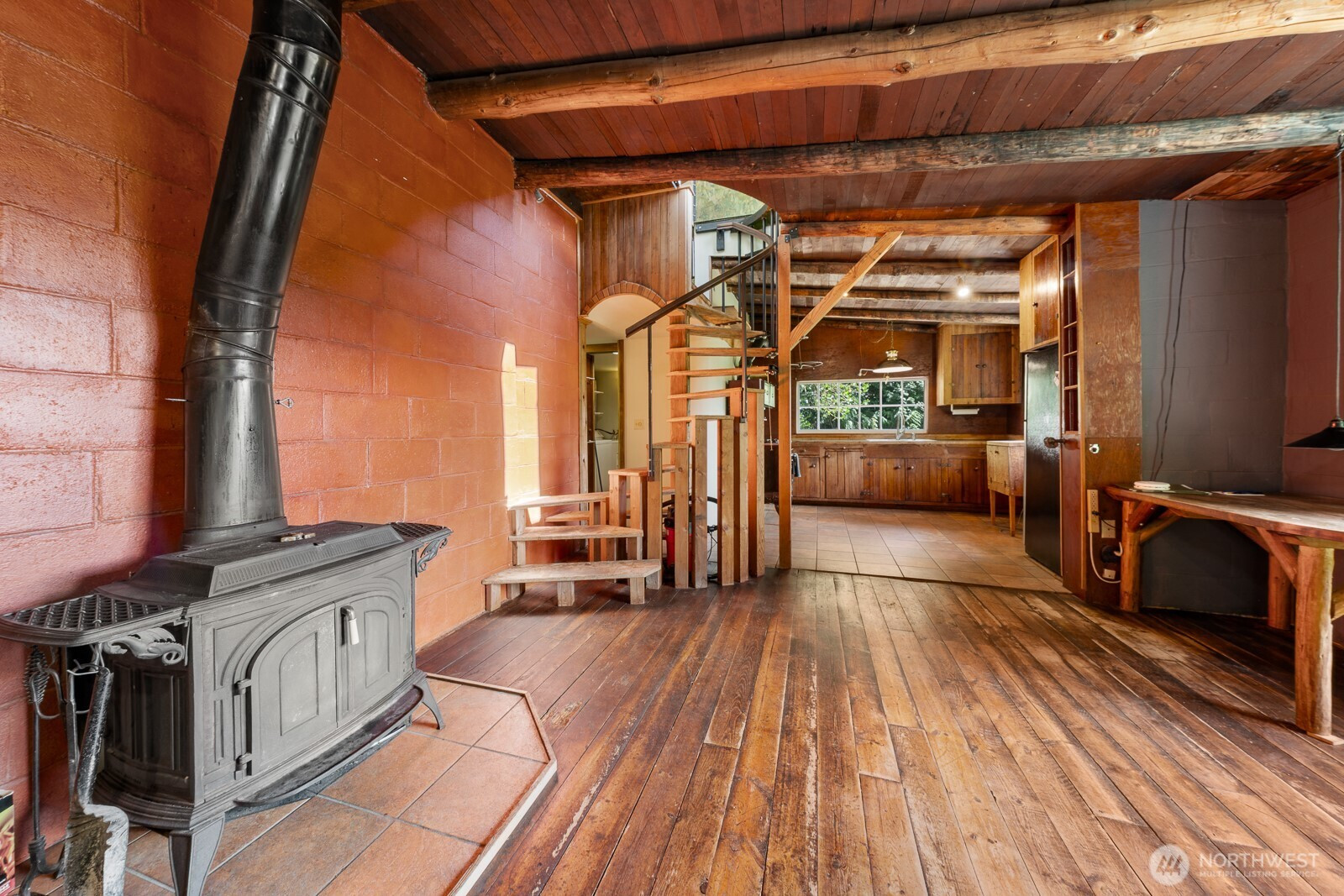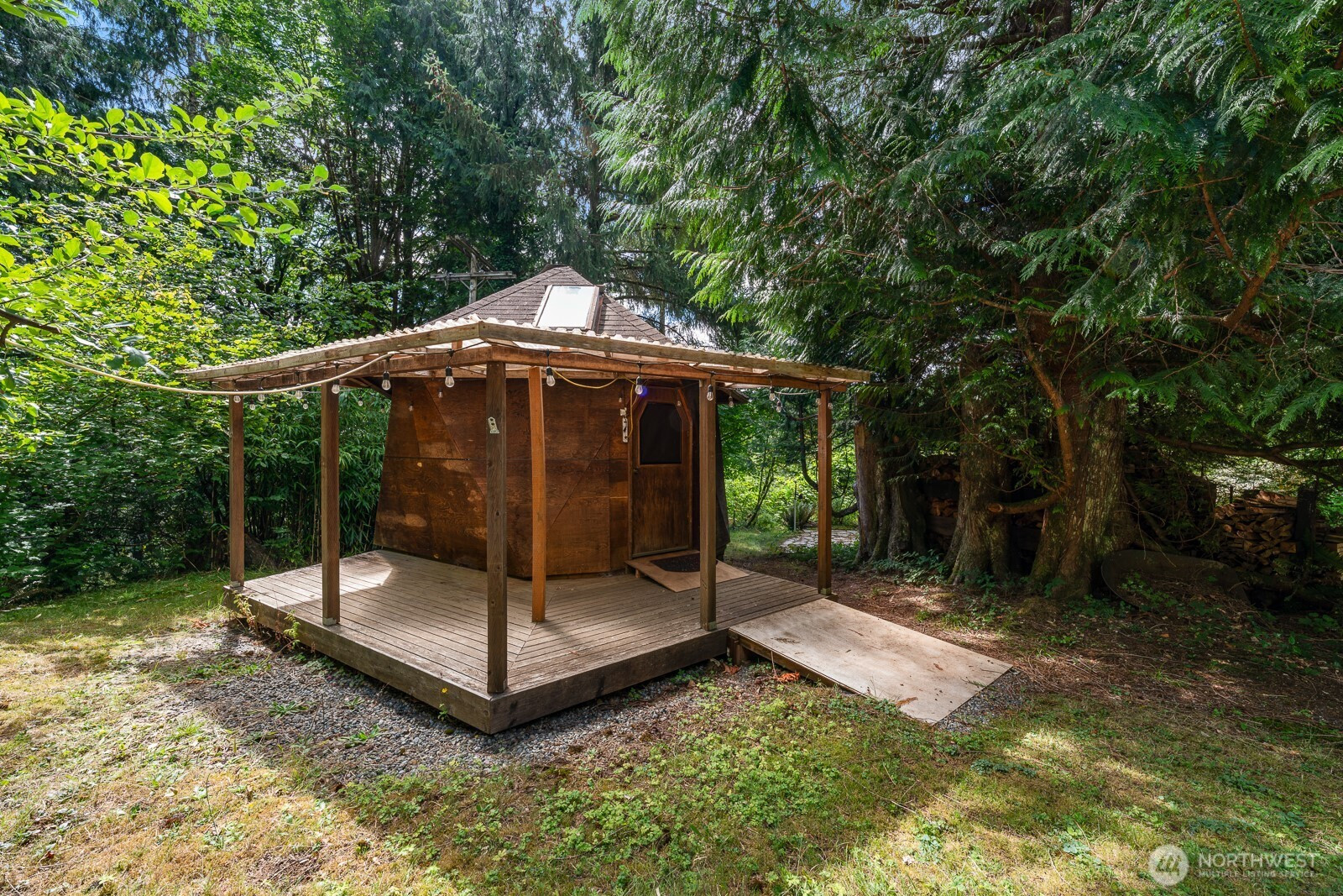 This one-of-a-kind property abuts the Mt. Si Trail and is truly enchanting! Each of the two dwellings are distinct in style. The first is a Northwest contemporary design with vaulted architectural rafters, built for easy living. The second is larger with high timber ceilings and lovely mountain views. From the large upper terrace listen to the gentle sounds of your waterfall, watch hummingbirds dance through the magical gardens while eagles soar above. The daylight basement has a greenhouse annex running the full length. It has grapevines and is great for longer season gardening. There's a finished geodesic dome for meditation, creativity, or whatever is your bliss. Fruit trees, varietal gardens, meadow, and pond add to the perfection.