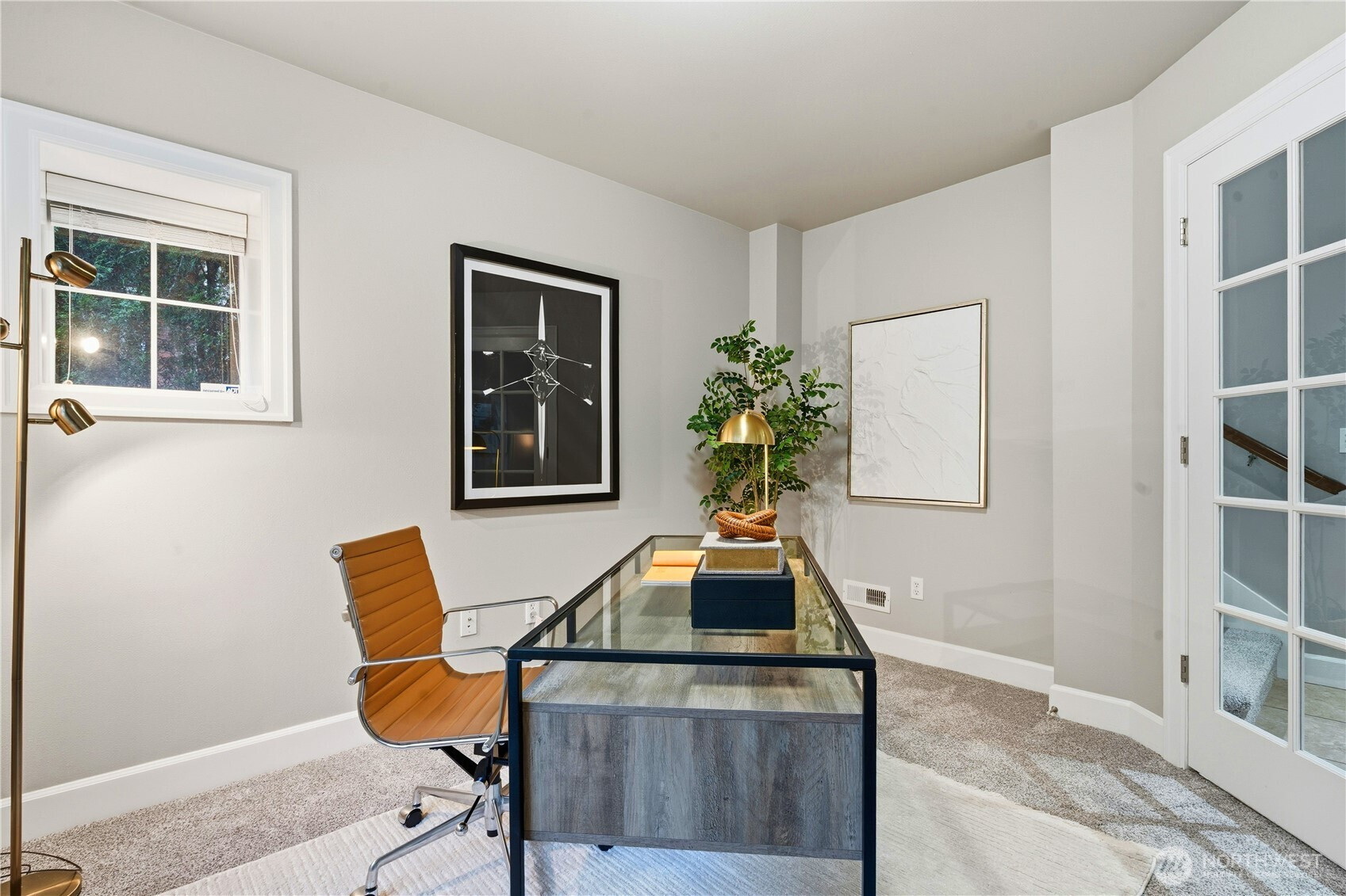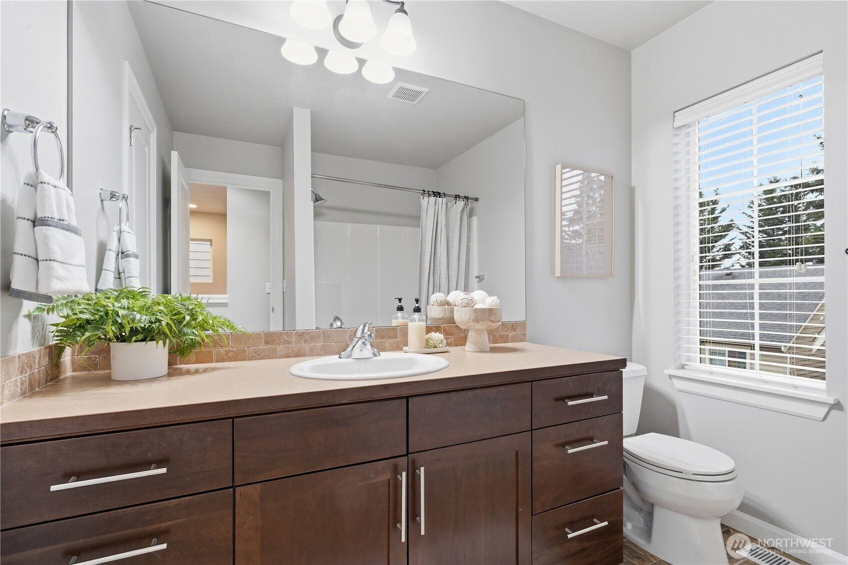 Beautiful detached townhouse-style home with an excellent and open floor plan. Main level features a spacious great room with bamboo floors, gas fireplace, and a large kitchen with slab granite counters, oversized center island with seating, stainless steel appliances, wine cooler, and abundant cabinet space. Dining area opens to a partially covered oversized deck, perfect for year-round outdoor living and BBQs. Fully fenced private yard. First floor includes a den/media or bonus room. Upstairs offers three bedrooms and two bathrooms, including a large primary suite with walk-in closet and built-in shelving. Fresh interior paint. Spacious 2-car garage. Close to Costco and easy access to 405.
