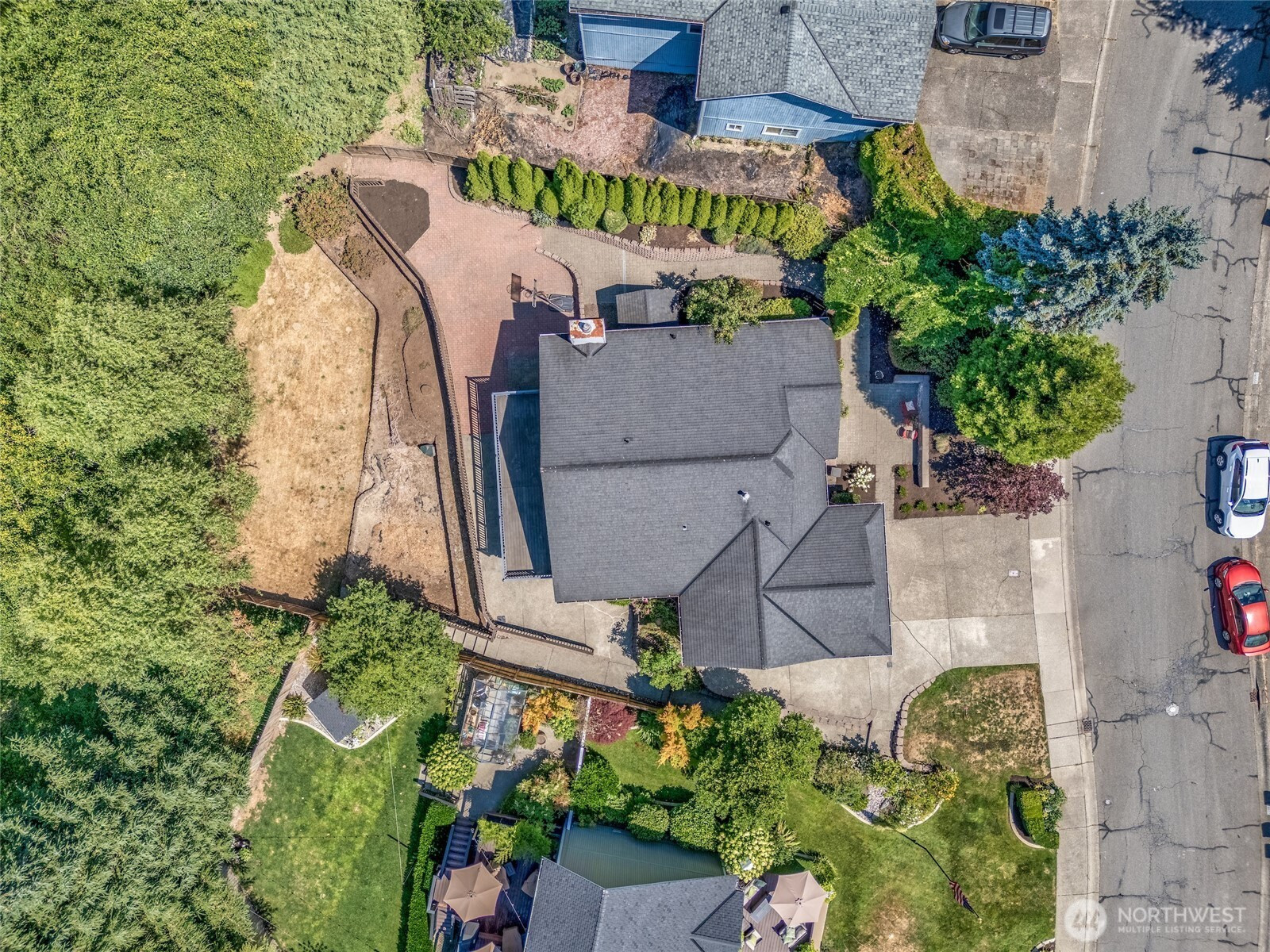 Spacious one-story with basement on private 10,783 sqft lot awaits. Updated and move-in-ready home features large primary suite with ¾ bath. Light and bright living room has abundance of windows and vaulted ceilings. Ample kitchen with breakfast counters and newer SS appliances. Flex dining/family room with gas fireplace. Slider leads to expansive deck overlooking greenbelt. Huge daylight lower-level beckons your imagination - ADU conversion is a conspicuous possibility. Outdoors you will find a fully fenced yard, extensive patio and paved outdoor space, garden shed and mature landscaping. 2-car garage and off-street/RV parking. Notable features include mini-split air conditioning/heating, EV ready, double-pane vinyl windows and more.
