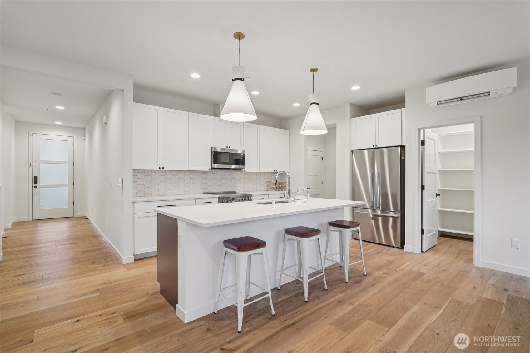 Experience exceptional comfort and functionality in this beautifully designed home, ideal for everyday living and entertaining. The open floor plan flows seamlessly, with expansive windows filling the space with natural light. The living room features a fireplace, while the kitchen boasts a striking oversized island perfect for gathering. Step onto the private deck overlooking a large, fully fenced backyard, visible from the kitchen and family room. Upstairs, the spacious primary suite includes a spa-like bath with heated floors and a generous walk-in closet, plus three additional bedrooms, a den, and laundry. A two-car garage and extra driveway parking add convenience. PLEASE USE GOOGLE MAPS FOR CORRECT DIRECTIONS.