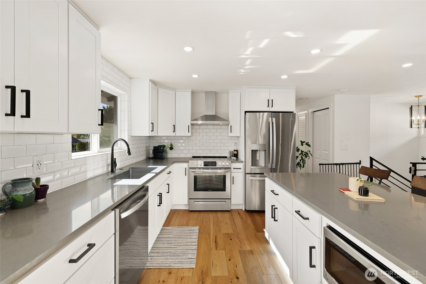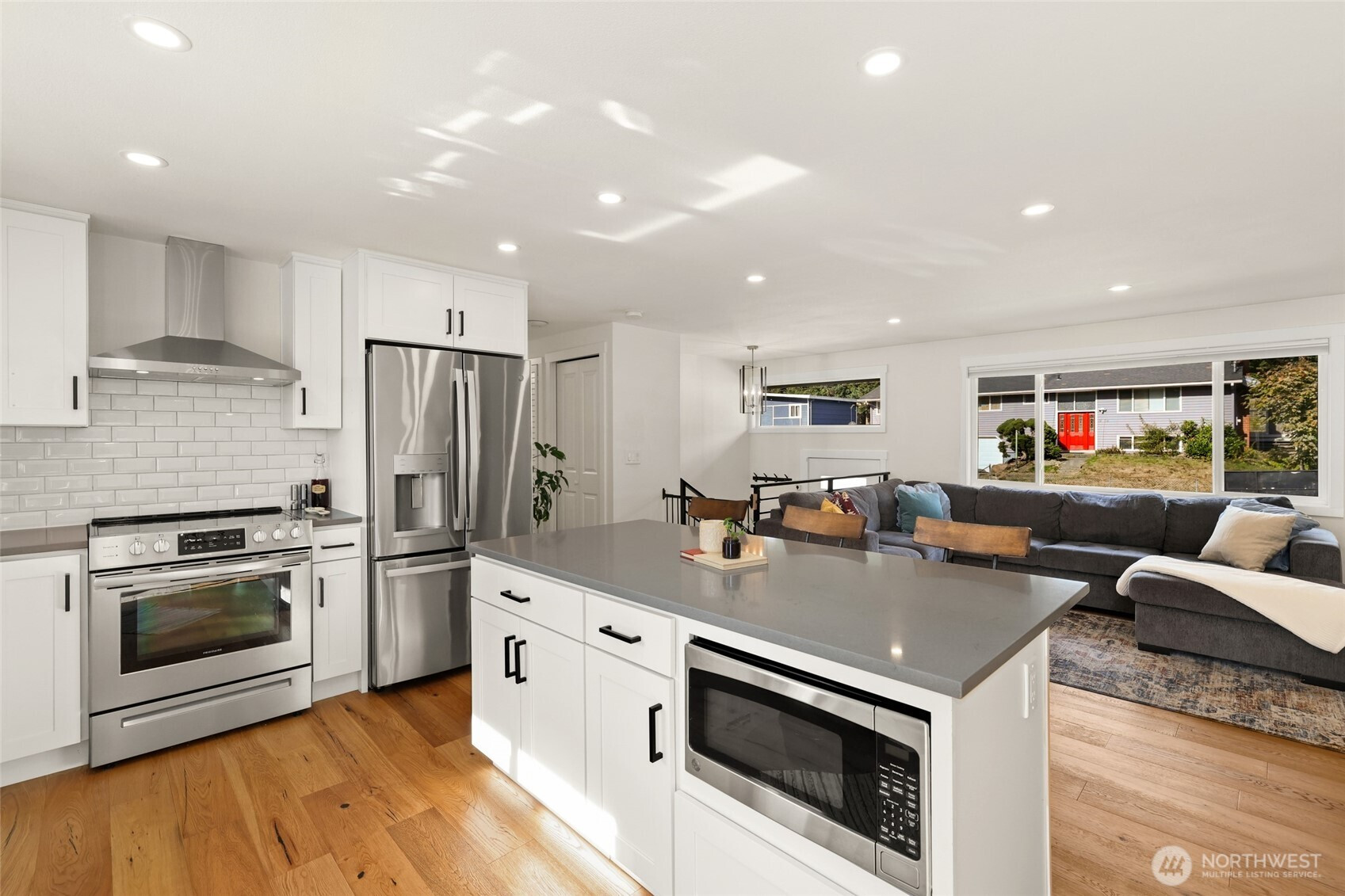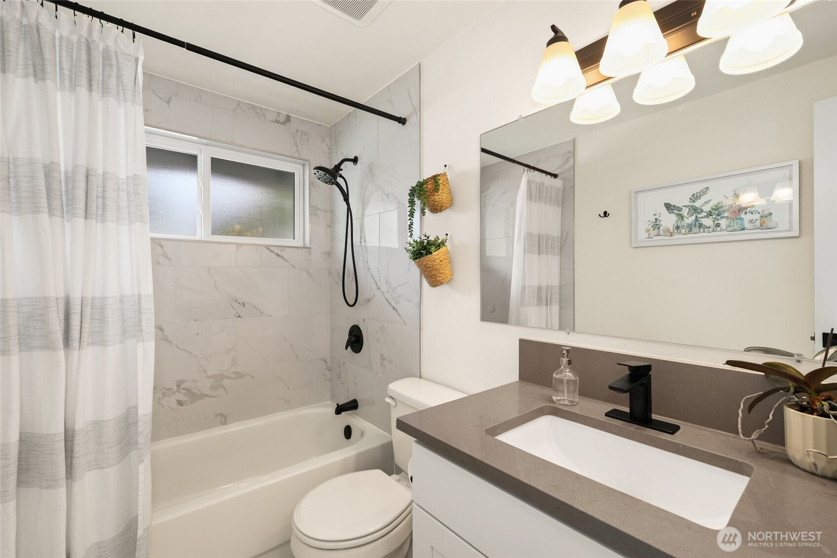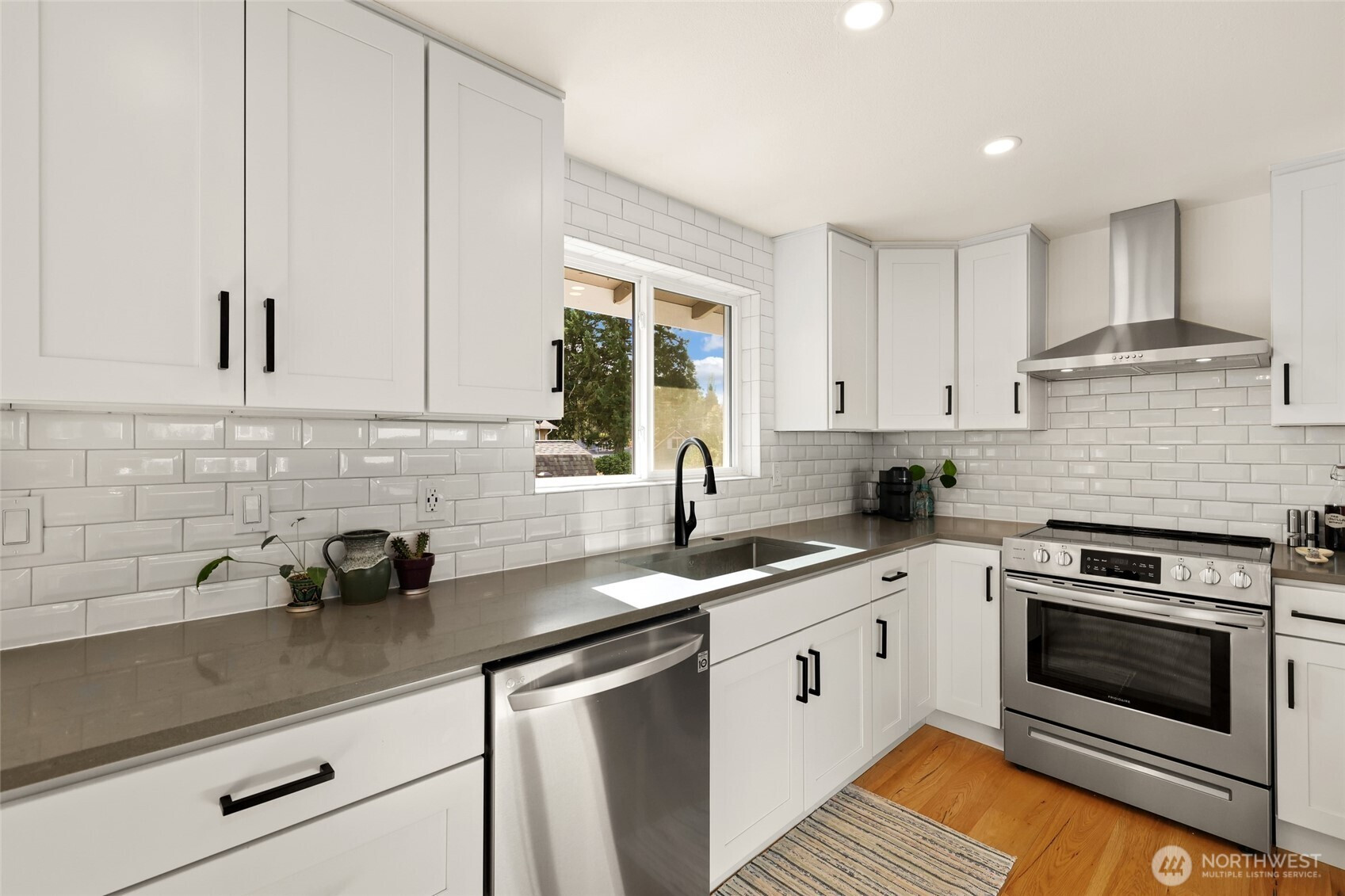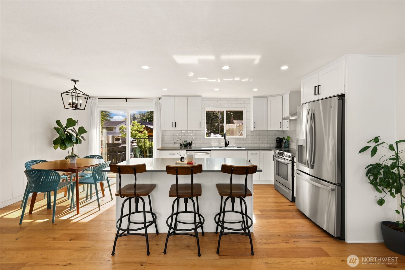 Beautifully remodeled home in a desirable Renton neighborhood! Enjoy an open concept layout with a fully updated kitchen featuring modern finishes—all appliances stay! Both bathrooms have been tastefully remodeled, and the newer oversized Trex deck is perfect for entertaining. The main floor offers three spacious bedrooms and a cozy fireplace. Downstairs includes a huge 4th bedroom, stunning new bathroom, flex space, and walk-out access to a fully fenced backyard with a shed. Attached garage (wired for multiple 220V tools on dedicated circuits), large carport, and RV parking provide ample space for all your vehicles and toys. Conveniently located near shopping, schools, and just minutes to Hwy 167 & I-405—ideal for commuters!
