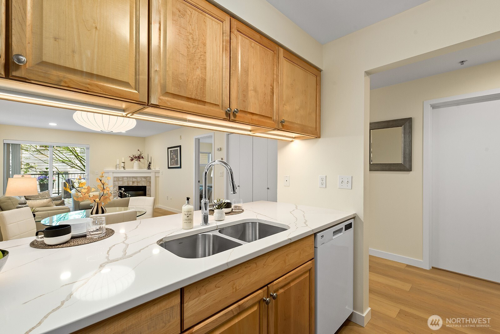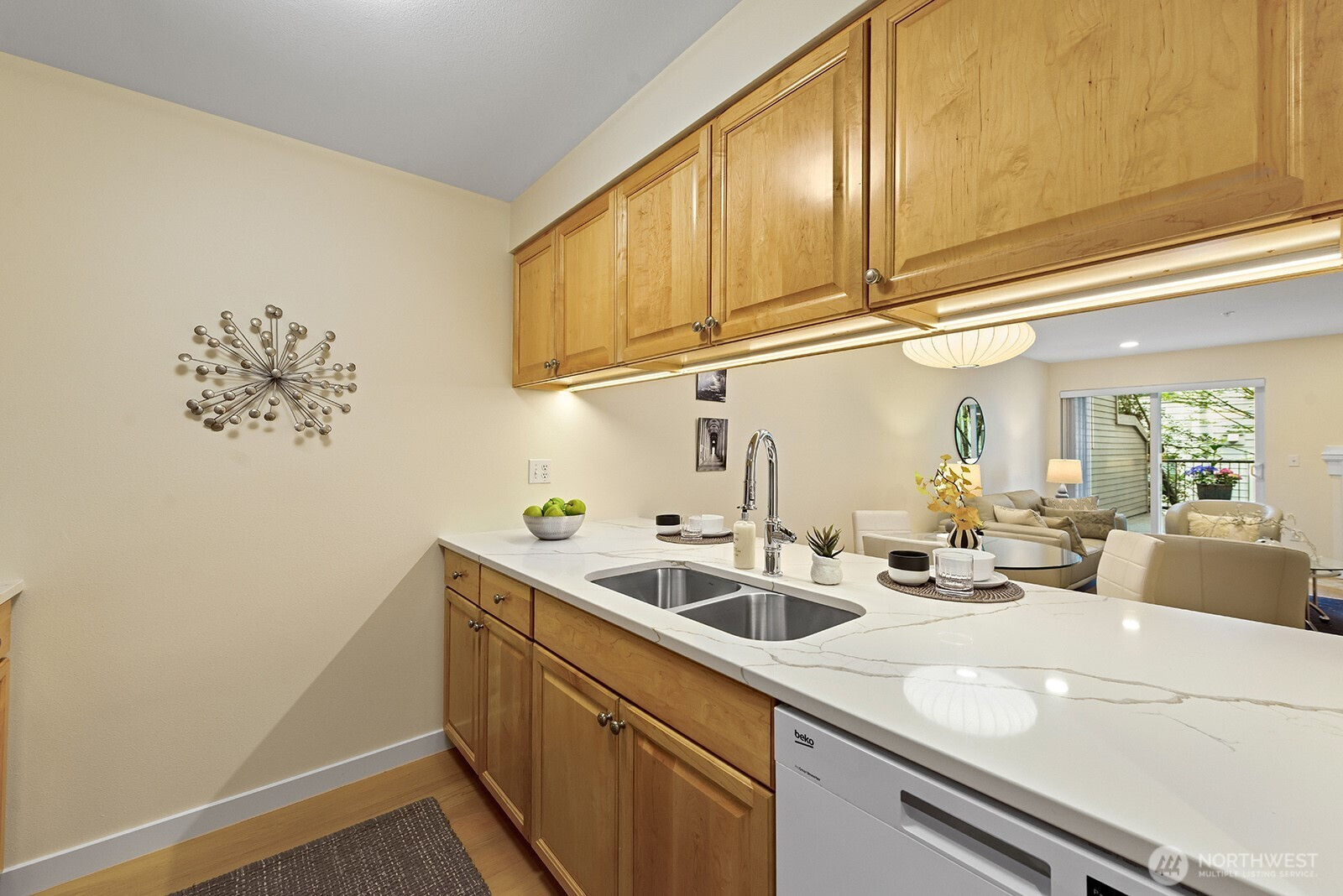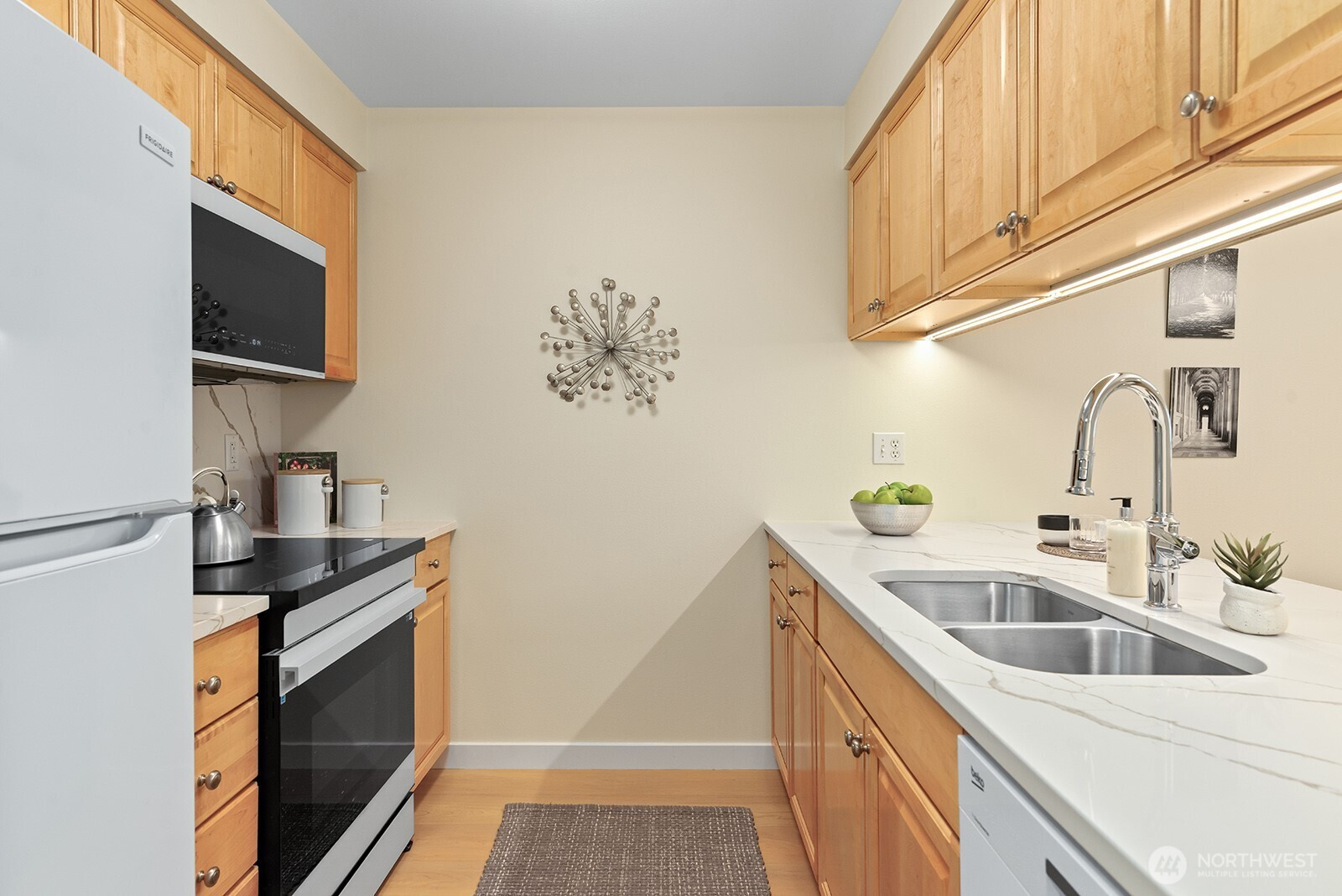 This immaculate remodeled unit is ready for a lucky new owner! A great opportunity to enjoy a quiet space and the convenience of neighborhood amenities. A recent remodel includes a new luxury vinyl floors, remodeled kitchen and bath, new appliances, new lighting and fresh paint. A full sized washer/dryer and storage room are in the unit. Secure lobby entry and parking garage with designated parking space. A private 18 X 21 ft. deck (1of 2 in the blg.) is great for entertaining. Convenient access for shopping, bus lines and soon to open Light Rail station.