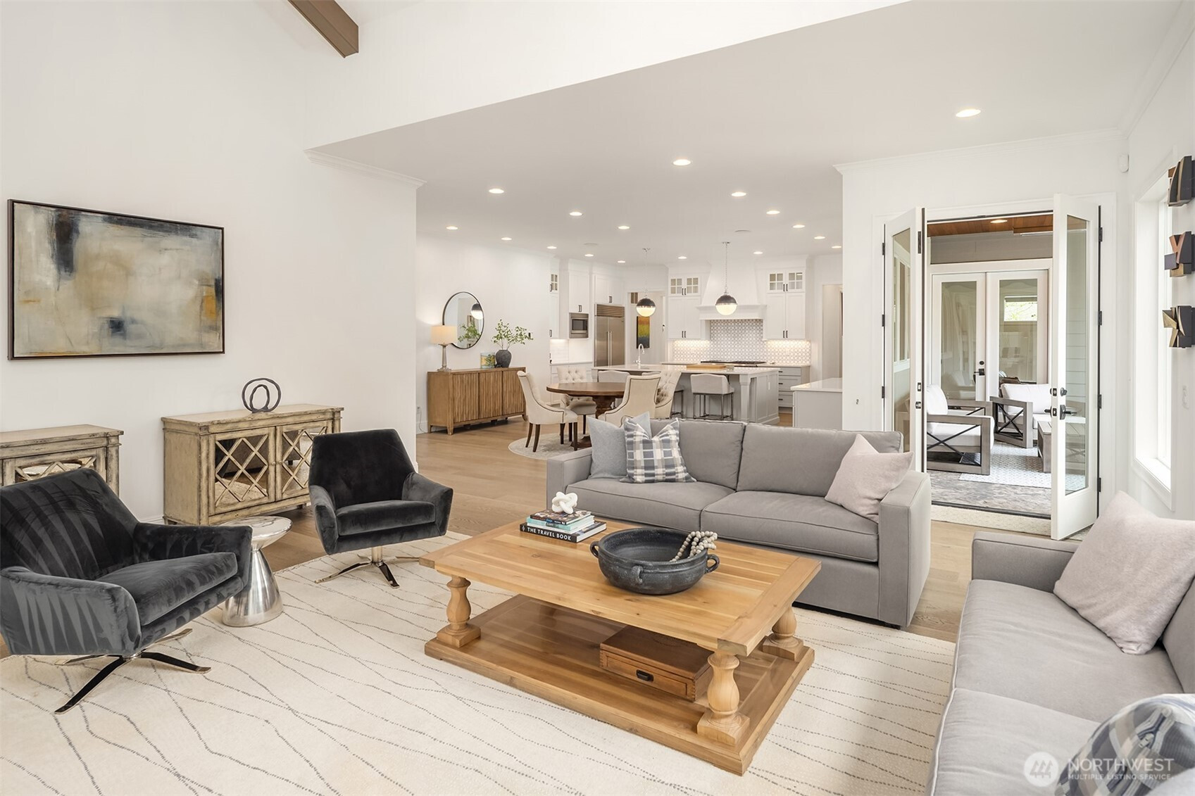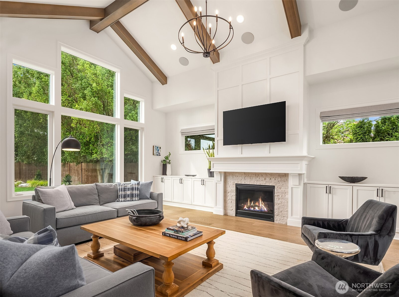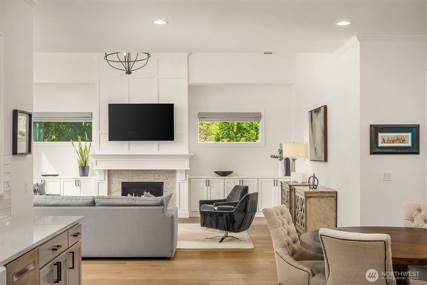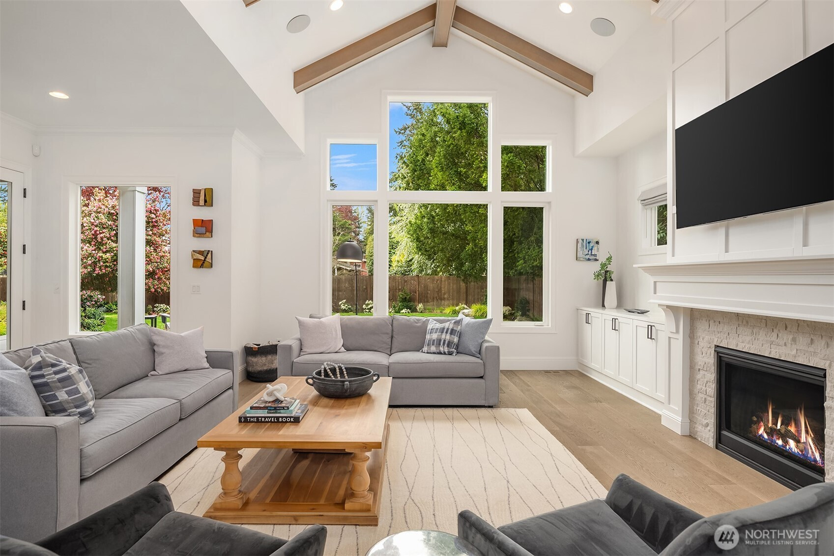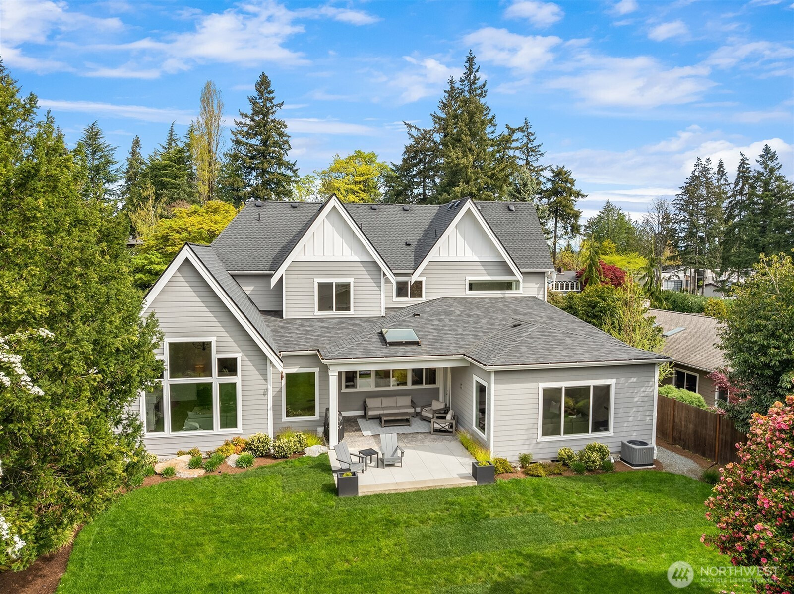 Built by MN Custom Homes, this stunning Woodridge home is thoughtfully designed with timeless elegance and exceptional living spaces. Well-curated for both everyday living and effortless entertaining. The dramatic vaulted great room anchors the main level, complemented by a luxurious entertainer’s kitchen with casual eating area and seamless access to a covered outdoor living area. The flexible main level includes a spacious bonus room and a private guest en-suite. Upstairs, the lovely primary suite showcases a spa-inspired marble bath and expansive walk-in closet, along with two additional bedrooms. This home is just moments from Norwood Park & Pool, Bellevue School District, downtown Bellevue, I-90, and beyond.