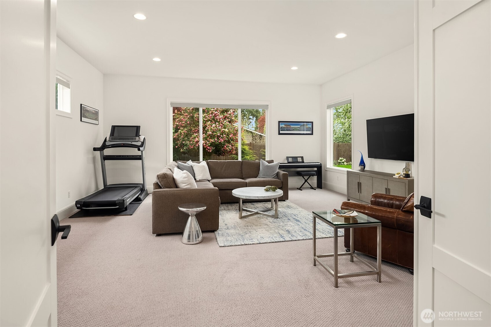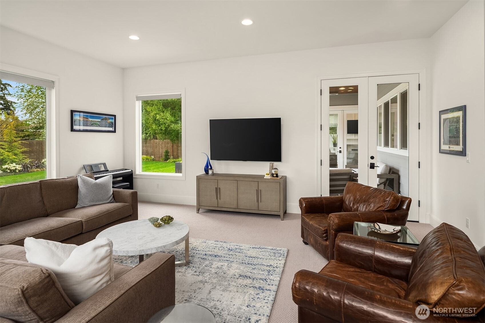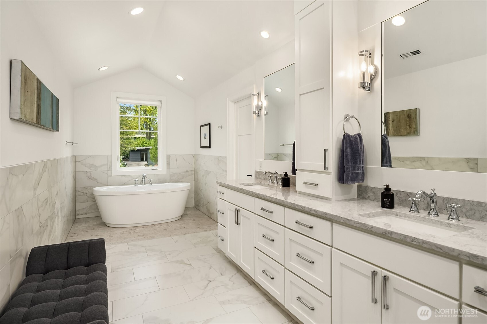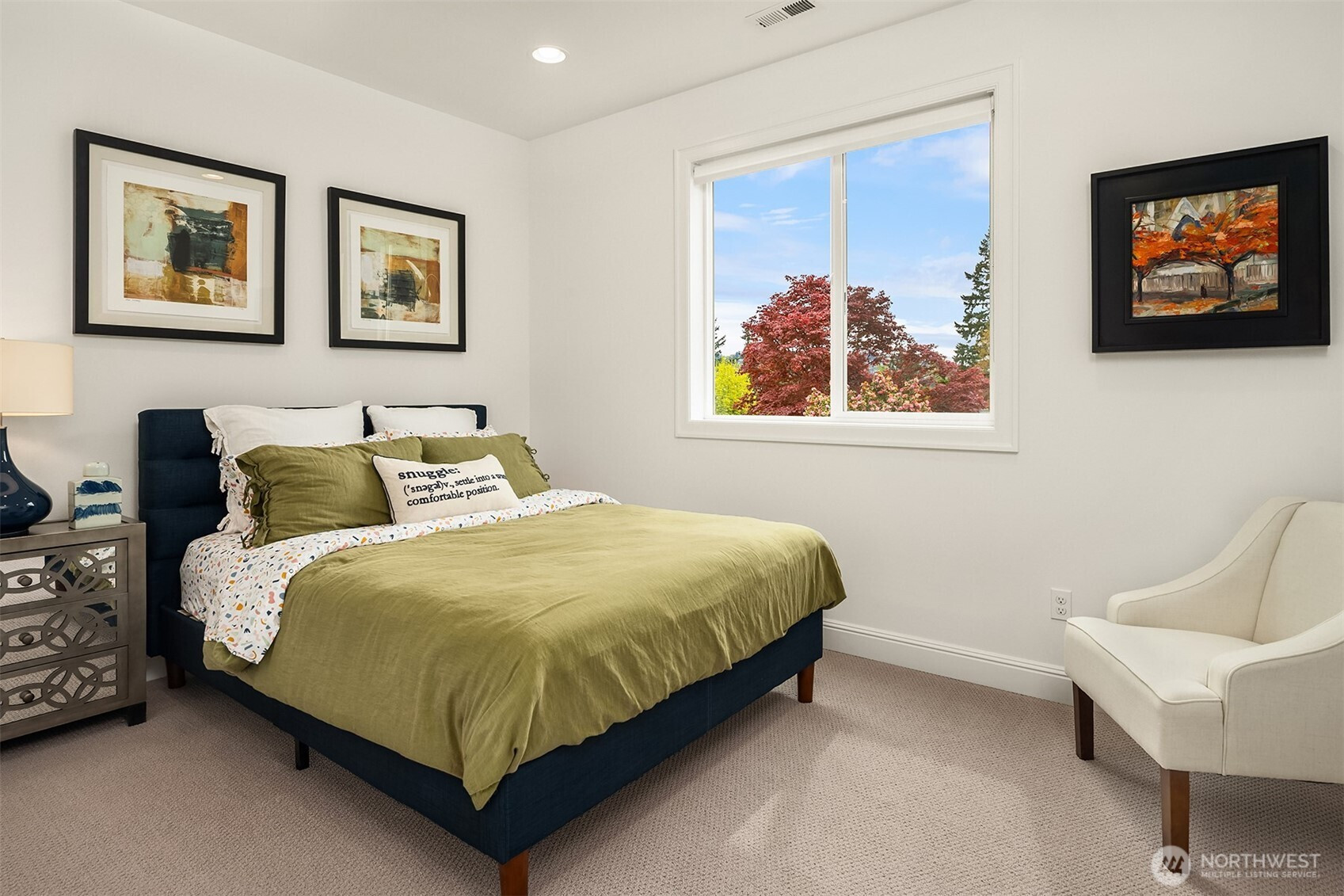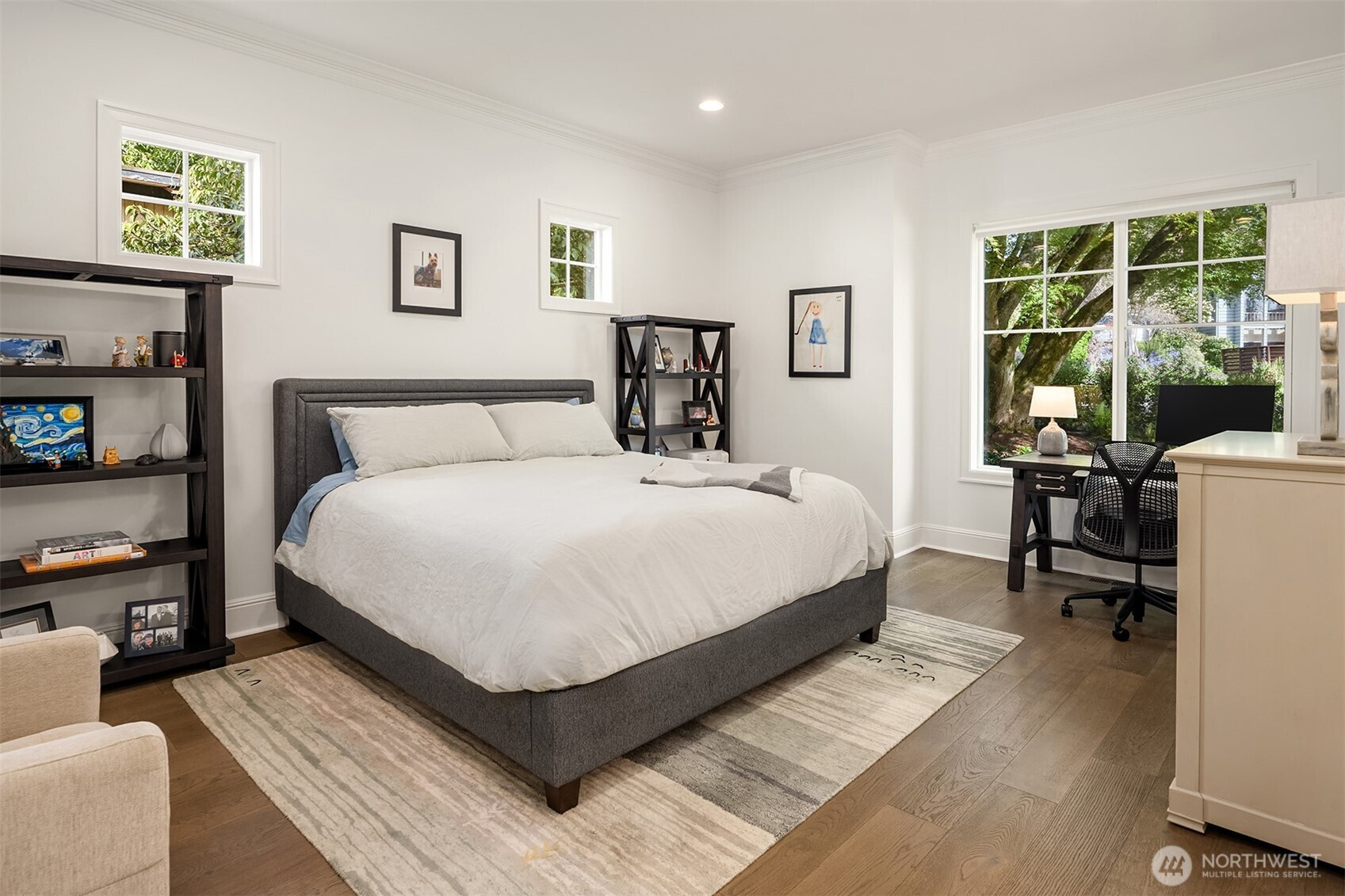 Built by MN Custom Homes, this stunning Woodridge home is thoughtfully designed with timeless elegance and exceptional living spaces. Well-curated for both everyday living and effortless entertaining. The dramatic vaulted great room anchors the main level, complemented by a luxurious entertainer’s kitchen with casual eating area and seamless access to a covered outdoor living area. The flexible main level includes a spacious bonus room and a private guest en-suite. Upstairs, the lovely primary suite showcases a spa-inspired marble bath and expansive walk-in closet, along with two additional bedrooms. This home is just moments from Norwood Park & Pool, Bellevue School District, downtown Bellevue, I-90, and beyond.