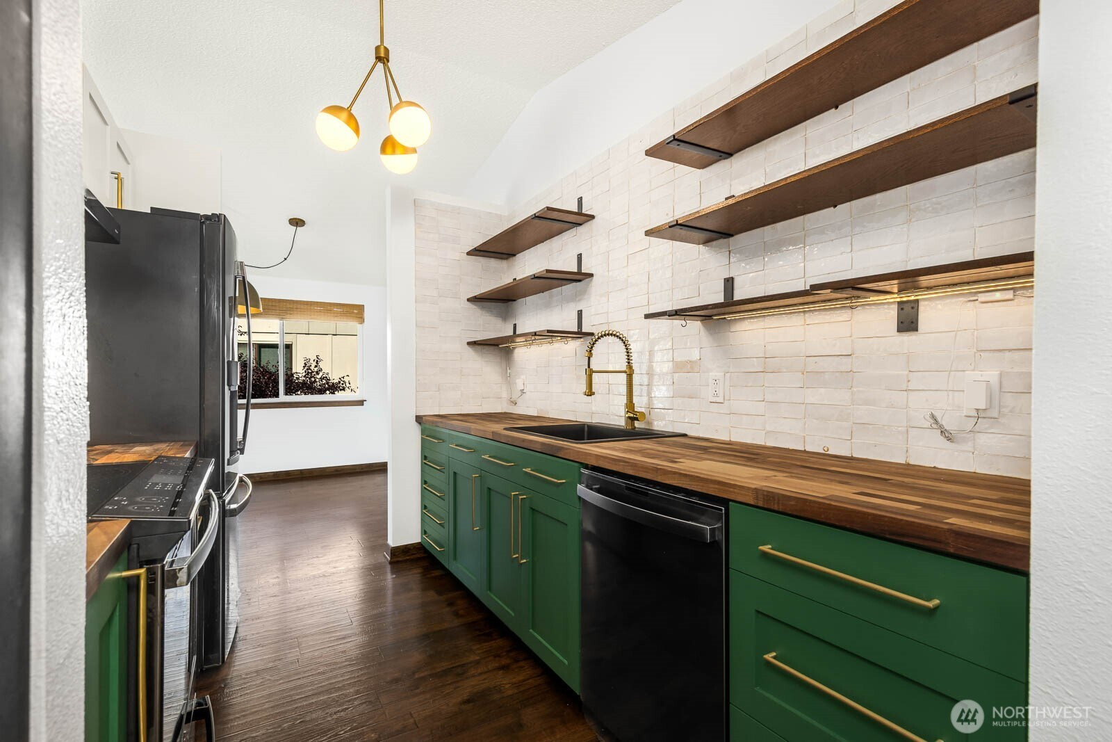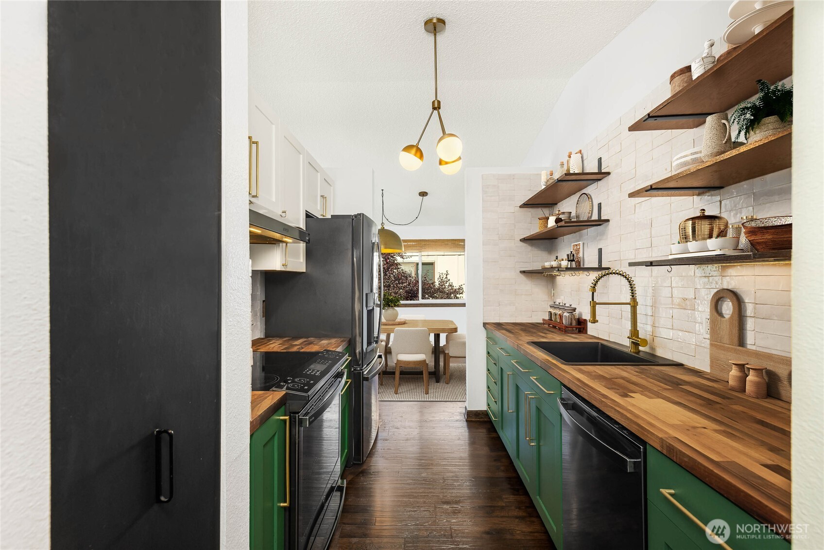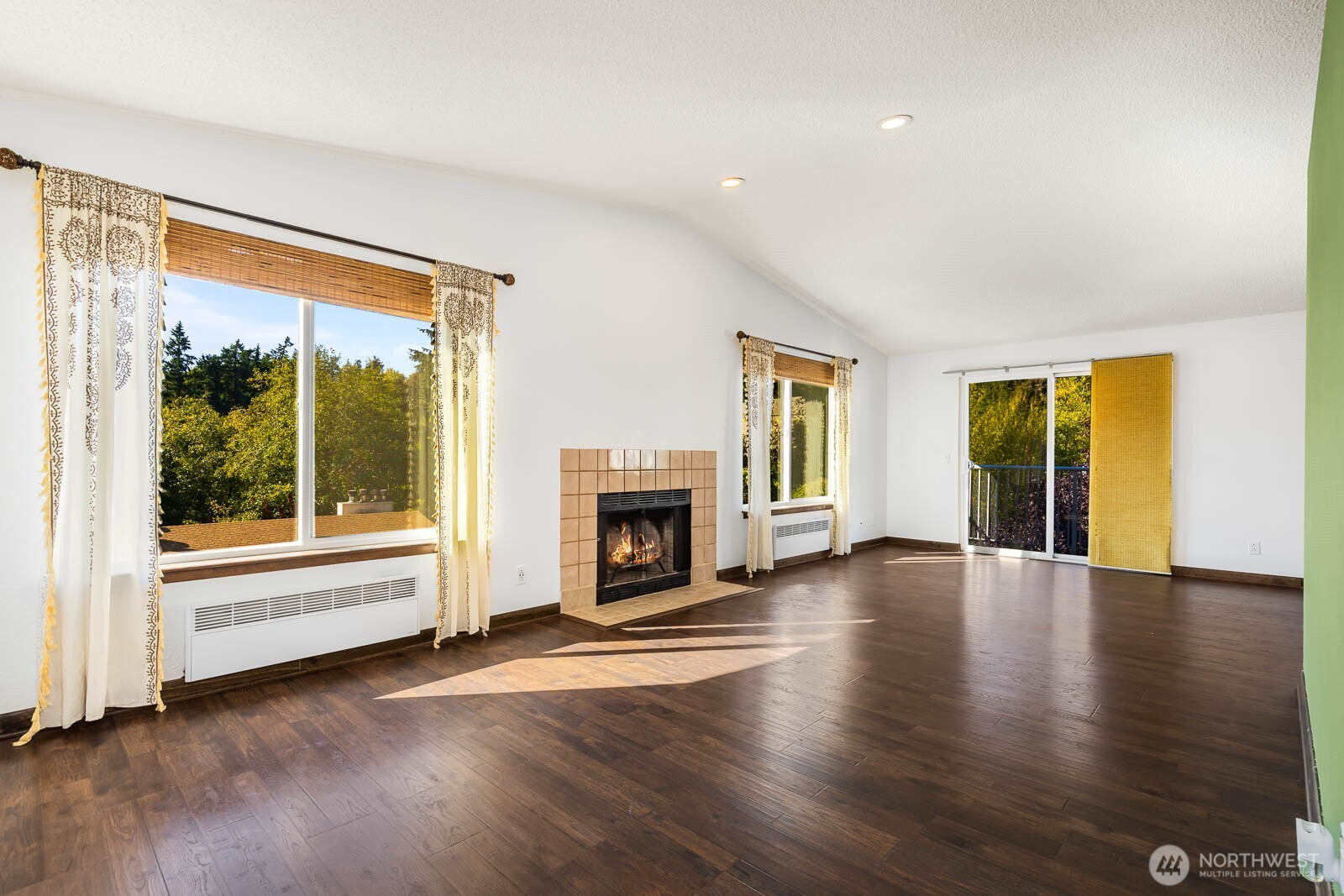 Beautiful top-floor end unit gem with treetop and peekaboo Puget Sound views! Light-filled and move-in ready, this unit boasts vaulted ceilings and plenty of charm. The fully upgraded kitchen with stylish green cabinets and high-end finishes opens to a roomy dining area perfect for hosting. The primary bedroom includes an ensuite bath. The second bedroom and full bath serves guests or a home office perfectly. Relax on the private balcony in the spring & summer, or cozy up by the fireplace in the fall & winter, this home is spectacular year round. Enjoy the conveniences of in-unit laundry, two reserved parking spots, and a large private storage space located in the basement. The Sound Vista community offers an outdoor pool, hot tub, sauna, and clubhouse amenities. Seahurst Park and its beachside trails are a short, peaceful walk away on a private trail through the complex down to the beach. Minutes away from Downtown Burien restaurants & shops. This is Condo living at it's best! No rental cap. Pet friendly.