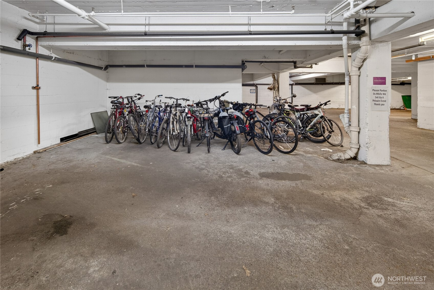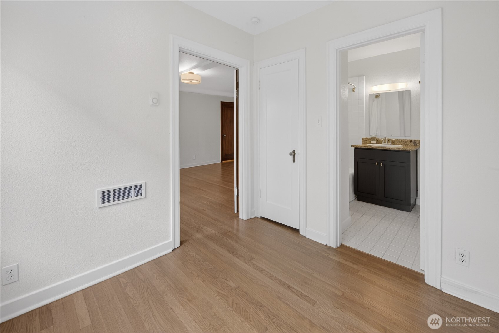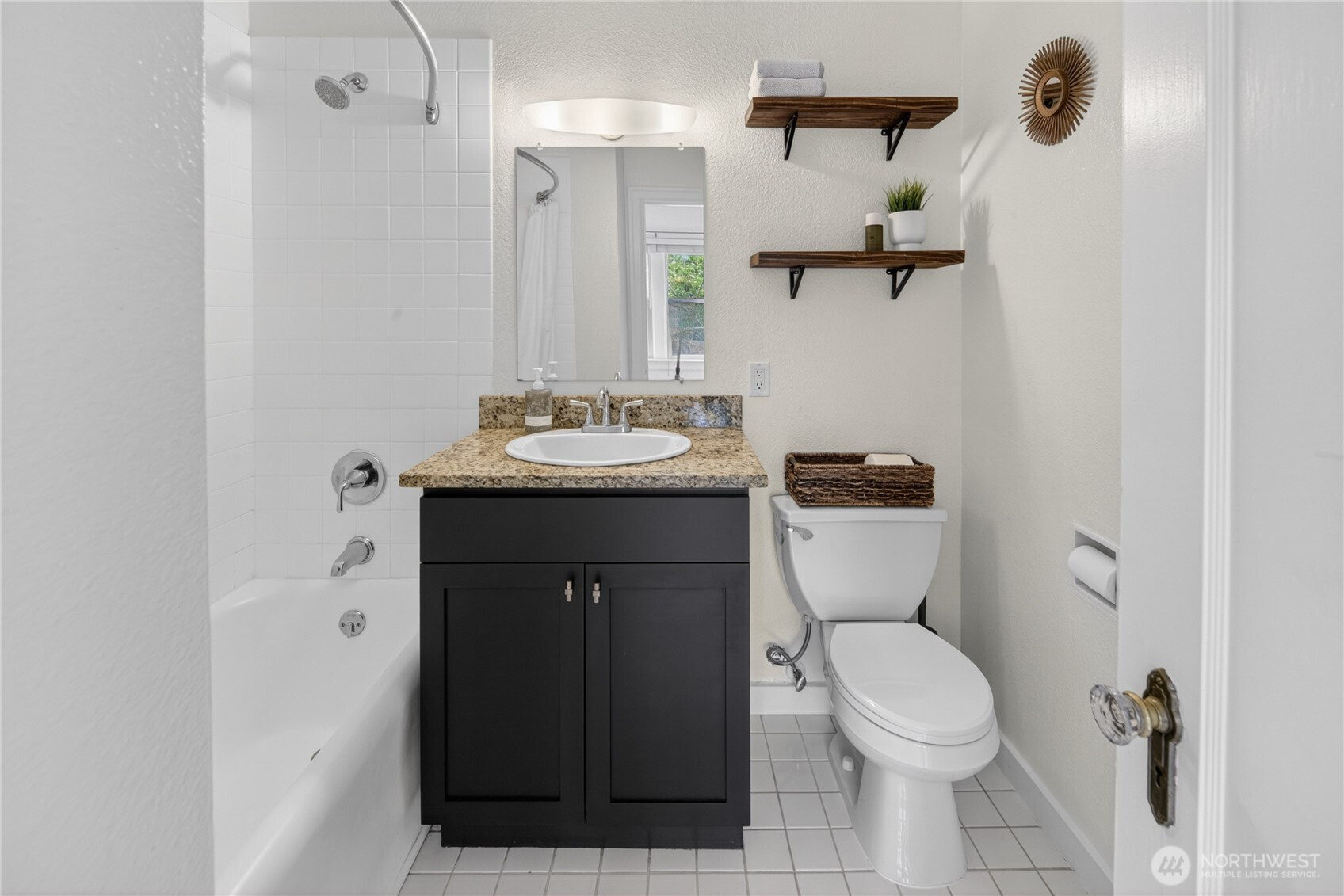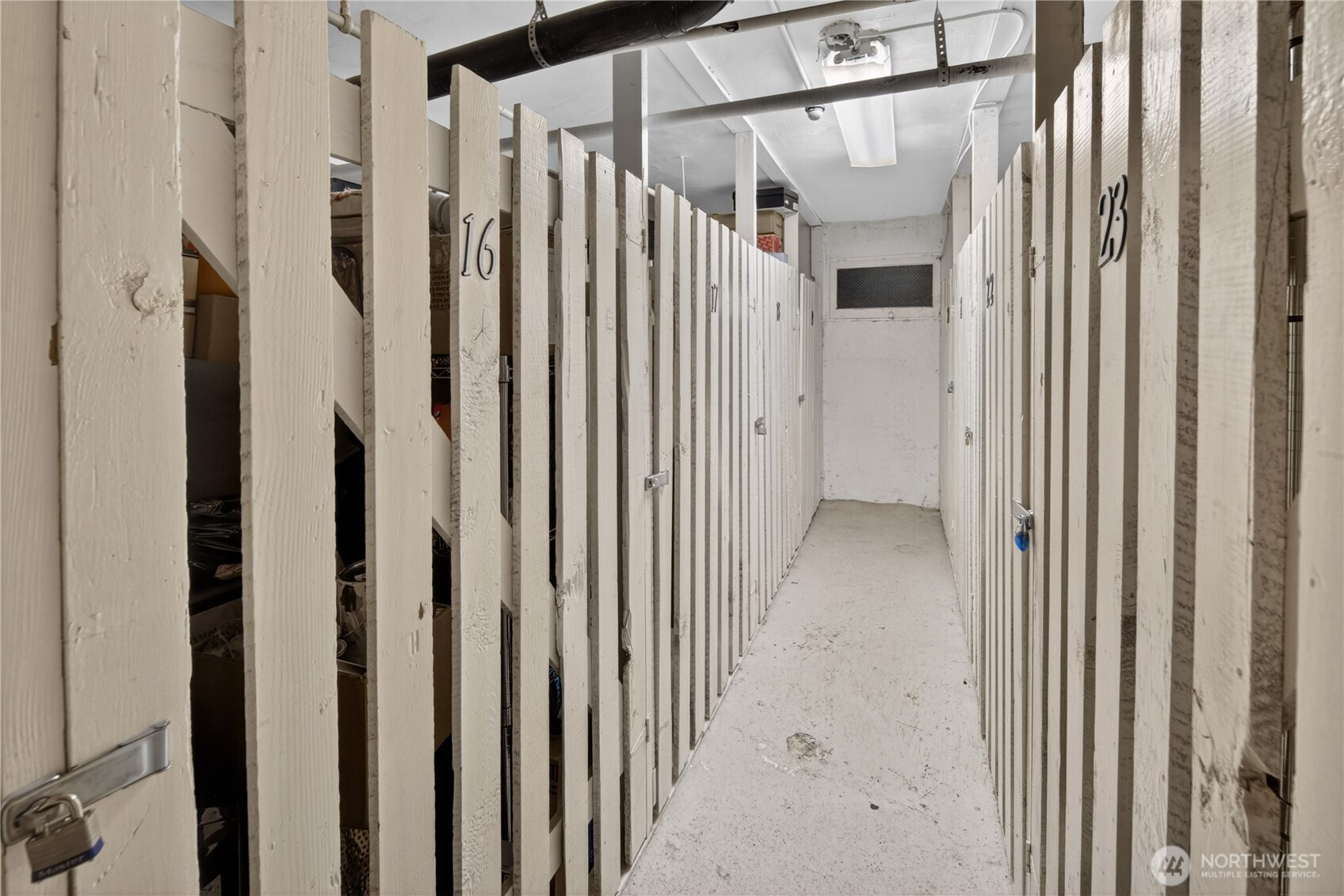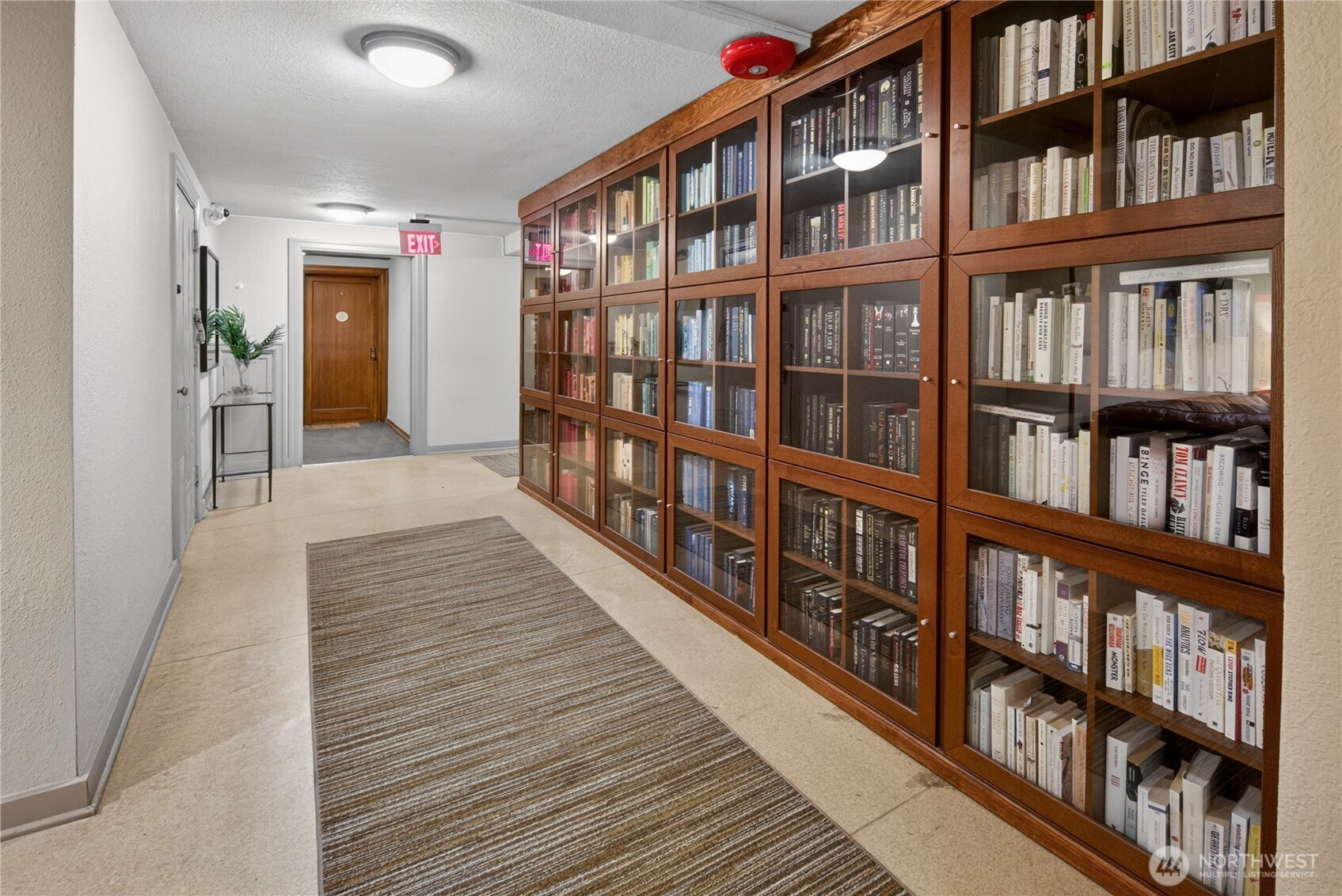 Queen's Court has been one of Lower Queen Anne's most recognized addresses since 1930, and Unit 208 shows you why. Original oak hardwoods, arched doorways, and the building's signature antique glass doorknobs are all intact. This corner unit looks out to a community-maintained green space, trees visible through east-facing windows. The living room opens up immediately, hardwoods underfoot and arched doorways framing the space. The kitchen features shaker cabinetry, granite counters, and stainless appliances, with a nook for morning coffee. The bedroom is quiet and covered with natural light, windows looking out to the trees. The bathroom carries the character through: white tile, wood vanity with granite counter, and that antique glass doorknob on the door. Outside the unit, the community garden and building library quietly shape how you live. Grow something on a weekend morning. Swap books without leaving the building. A dedicated storage unit on property gives bikes, seasonal gear, and the rest of daily life a real home outside the unit. A block from Seattle Center and minutes from Elliott Bay, this is Lower Queen Anne at its most alive. Step outside and you are choosing between a concert at Climate Pledge Arena, dinner at Toulouse Petit, or a morning at Myrtle Edwards Park watching ferries and ships cross the harbor. Groceries, cafes, and green space all within reach. In a building with nearly a century of character behind it. Come experience it.
