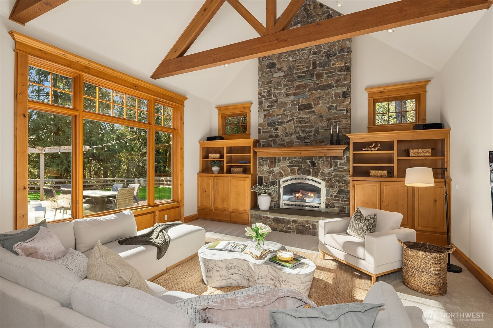 Private estate in The Hedges, one of Woodinville’s most sought-after communities with access to scenic walking and equestrian trails. Sited on a premier corner lot with mature landscaping and level lawn, this home offers a serene and refined setting. A gently winding paver driveway creates a memorable arrival with generous guest parking. Interior features include rich millwork, crown molding, updated lighting, leaded glass, rustic alder and wrought iron accents. Grand two-story foyer with sweeping staircase, formal living and dining rooms and dedicated office. Chef’s kitchen with slab granite, custom cabinetry, bayed nook, butler’s pantry with beverage refrigerator, and Sub-Zero, Viking and Bosch appliances. Vaulted great room with beamed ceiling and stone fireplace. Theater with Murphy bed. Luxurious primary suite with 5-piece marble spa bath. Bonus room, ensuite guest bedroom and additional bedrooms. Outdoor living with paver patio, stone pizza oven and generator.