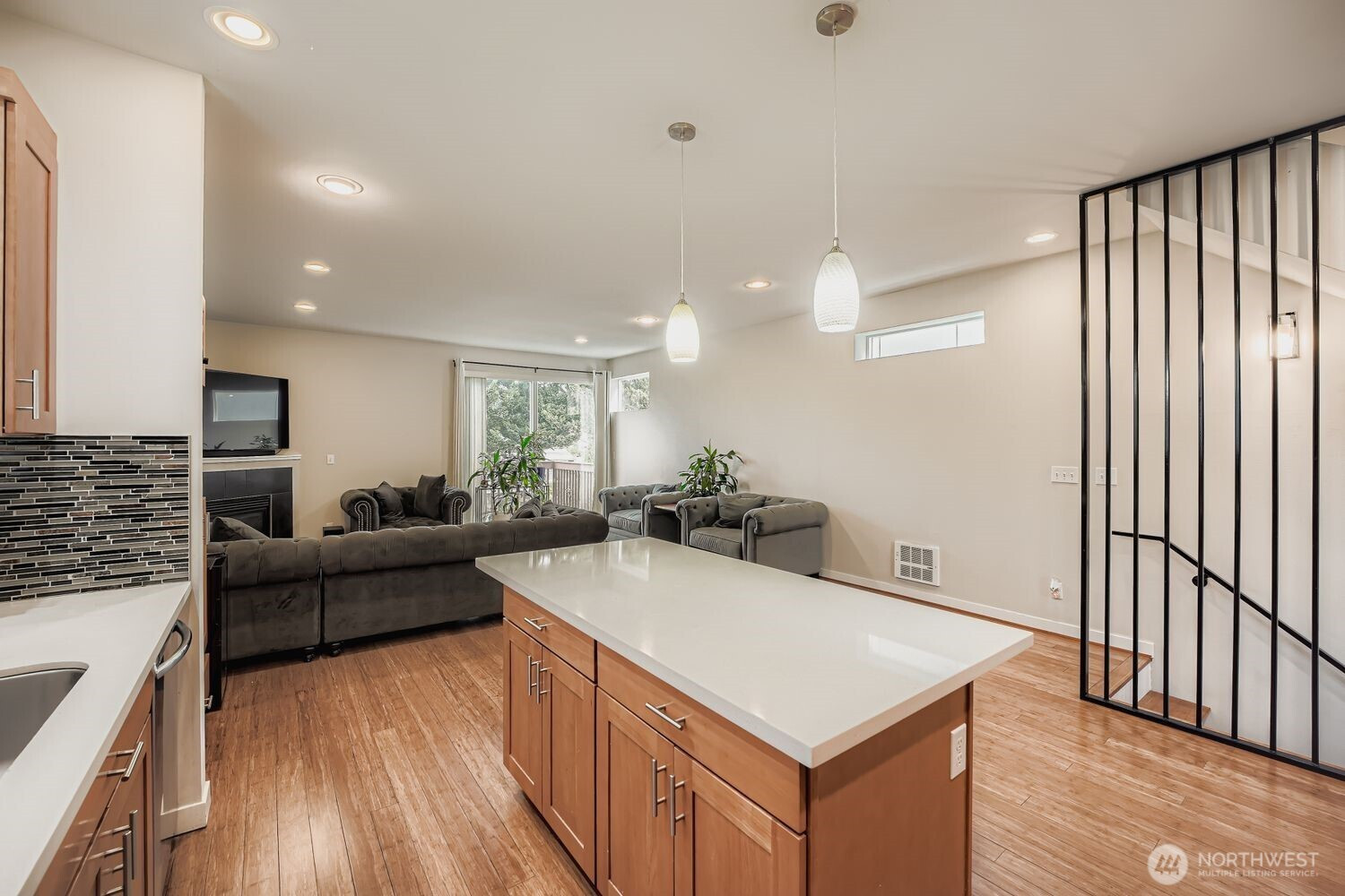 No HOA, no shared walls, no hassle! This spacious 4 bed, 3.25 bath stand-alone home offers a private downstairs suite and living area, open-concept kitchen and living area with gas fireplace, and beautiful hardwood floors. Enjoy outdoor living with a deck off the kitchen/living room and a balcony on the second floor. The spacious primary suite is your perfect retreat. Low-maintenance yard with shed and fruit trees, private garage, ample parking, and a new tankless water heater. Prime location with easy access to Downtown Seattle, SeaTac Airport, and public transit. This one has it all!