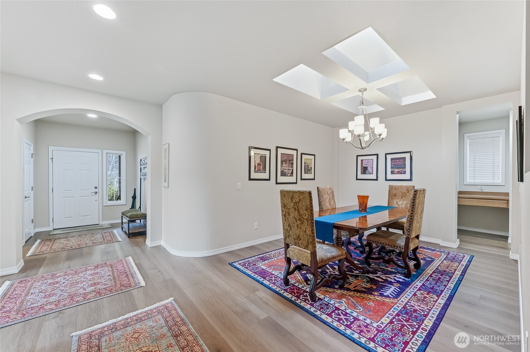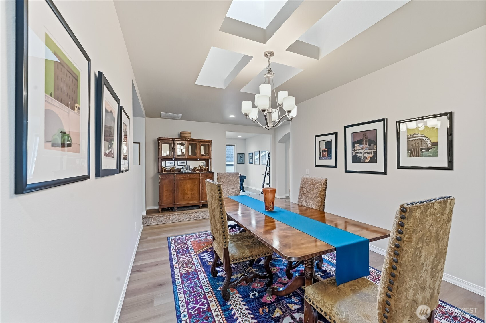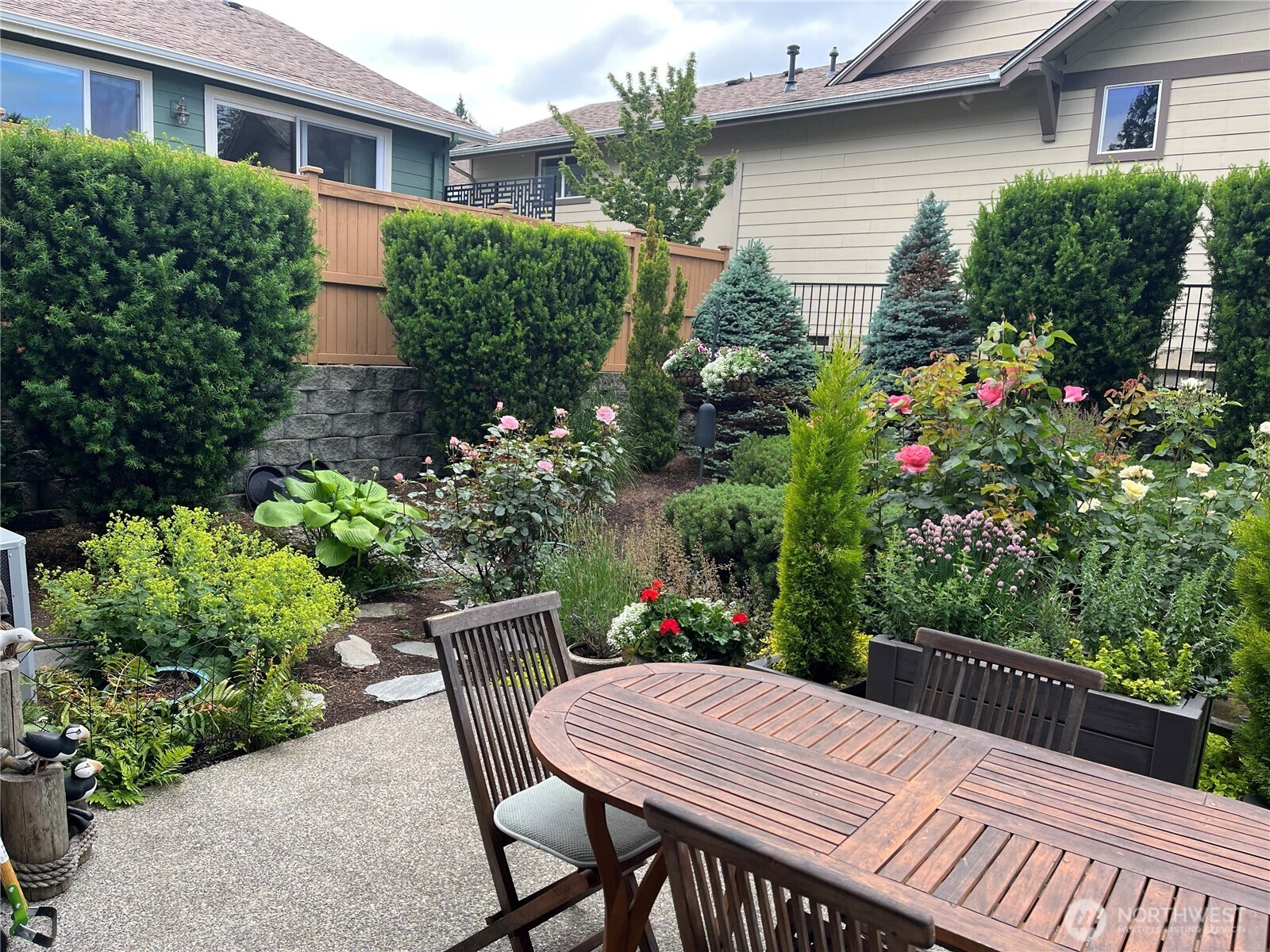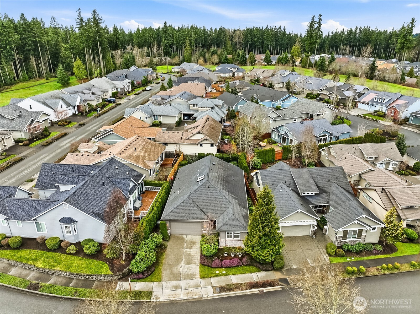 Sunset Magazine Perfect best describes this immaculate Bainbridge model home located in Division 12 the youngest neighborhood in Trilogy and its within easy walking distance of the Cascade Club. This flexible floor plan is an entertainer’s dream with its large, central great room plus formal dining room with an oversized skylight which lets in tons of natural light. New Luxury Vinyl Plank flooring flows throughout the main living areas and large picture windows frame the serene garden views. The updated island kitchen includes 42” upper cabinets and lower cabinets with convenient pull-outs all topped with slab counters. Newer Bosch fridge, DW, range & microwave. The kitchen dining nook includes a custom bump-out and overlooks the private backyard. The great room flows seamlessly out to the sunny, west facing patio surrounded by flowering garden beds, it’s the perfect space for relaxing on a summer day and it’s fully fenced for your furry friends. Spacious owner's suite with spa-like bath, the walk-in closet is finished with an ELFA organizing system. The guest bedroom has an adjacent full bath and is separated from the primary suite by the home office providing everyone with plenty of privacy. Top of the line LG washer and dryer on bottom drawer stands. The 2 Car garage includes the ELFA storage system and the extended driveway provides additional parking. This home has been freshly painted inside & out with designer colors and is move-in ready. Central AC. Pre-inspected. 55+