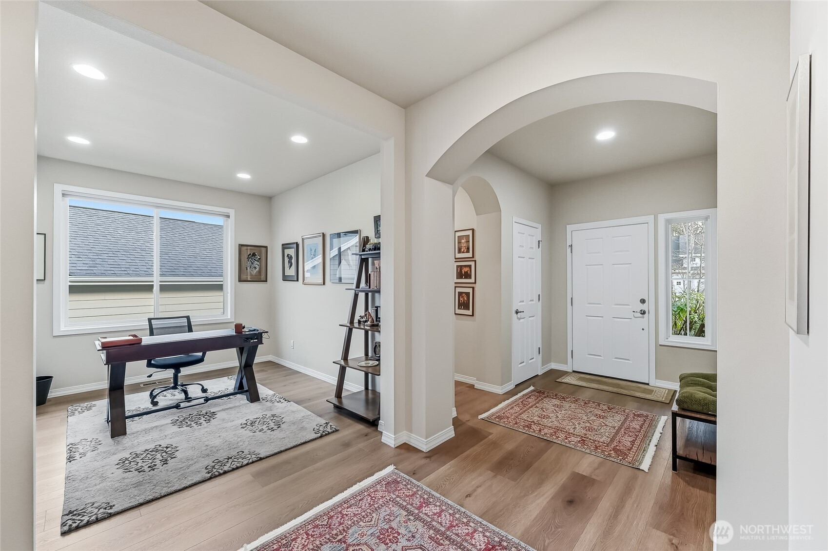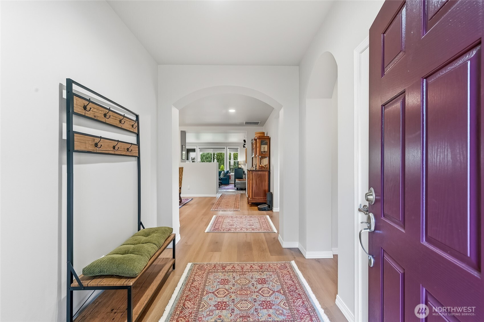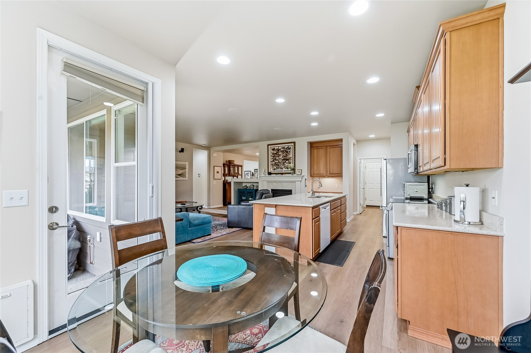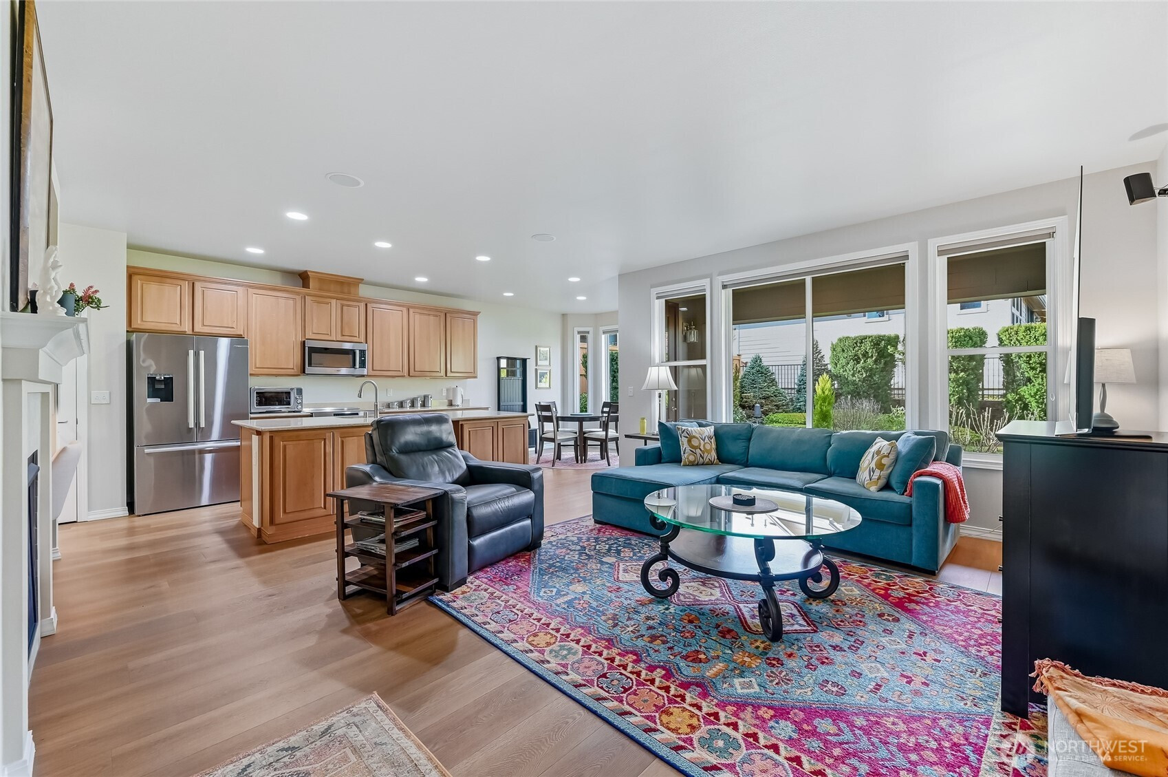 Sunset Magazine Perfect best describes this immaculate Bainbridge model home located in Division 12 the youngest neighborhood in Trilogy and its within easy walking distance of the Cascade Club. This flexible floor plan is an entertainer’s dream with its large, central great room plus formal dining room with an oversized skylight which lets in tons of natural light. New Luxury Vinyl Plank flooring flows throughout the main living areas and large picture windows frame the serene garden views. The updated island kitchen includes 42” upper cabinets and lower cabinets with convenient pull-outs all topped with slab counters. Newer Bosch fridge, DW, range & microwave. The kitchen dining nook includes a custom bump-out and overlooks the private backyard. The great room flows seamlessly out to the sunny, west facing patio surrounded by flowering garden beds, it’s the perfect space for relaxing on a summer day and it’s fully fenced for your furry friends. Spacious owner's suite with spa-like bath, the walk-in closet is finished with an ELFA organizing system. The guest bedroom has an adjacent full bath and is separated from the primary suite by the home office providing everyone with plenty of privacy. Top of the line LG washer and dryer on bottom drawer stands. The 2 Car garage includes the ELFA storage system and the extended driveway provides additional parking. This home has been freshly painted inside & out with designer colors and is move-in ready. Central AC. Pre-inspected. 55+