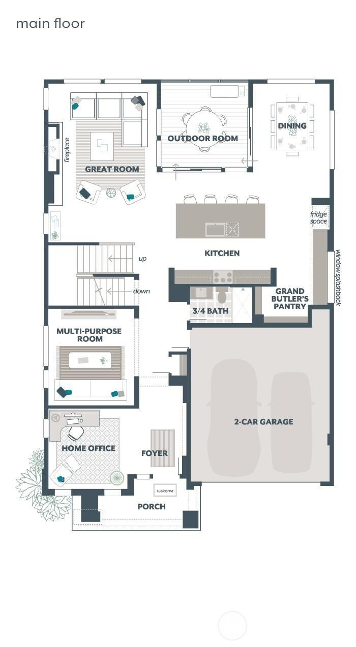The Azalea by MainVue Homes at Woodinville Crossing is a five bedroom basement home design that inspires innovation and style. At the Foyer you are greeted by the Home Office and Multi-Purpose Room, providing flexible work and entertainment spaces. The Gourmet Kitchen features 3cm Quartz counters, KitchenAid appliances and European Frameless Cabinets plus a Grand Butlers Pantry. The Signature Outdoor Room is accessed via three wall-height sliding glass doors from the Great Room, Dining and Kitchen. Downstairs, find a Guest Room, Full Bathroom, Recreation Room and Covered Patio. Upstairs, three secondary bedrooms await and the luxurious Grand Suite with a designer free-standing tub and frameless walk-in shower.