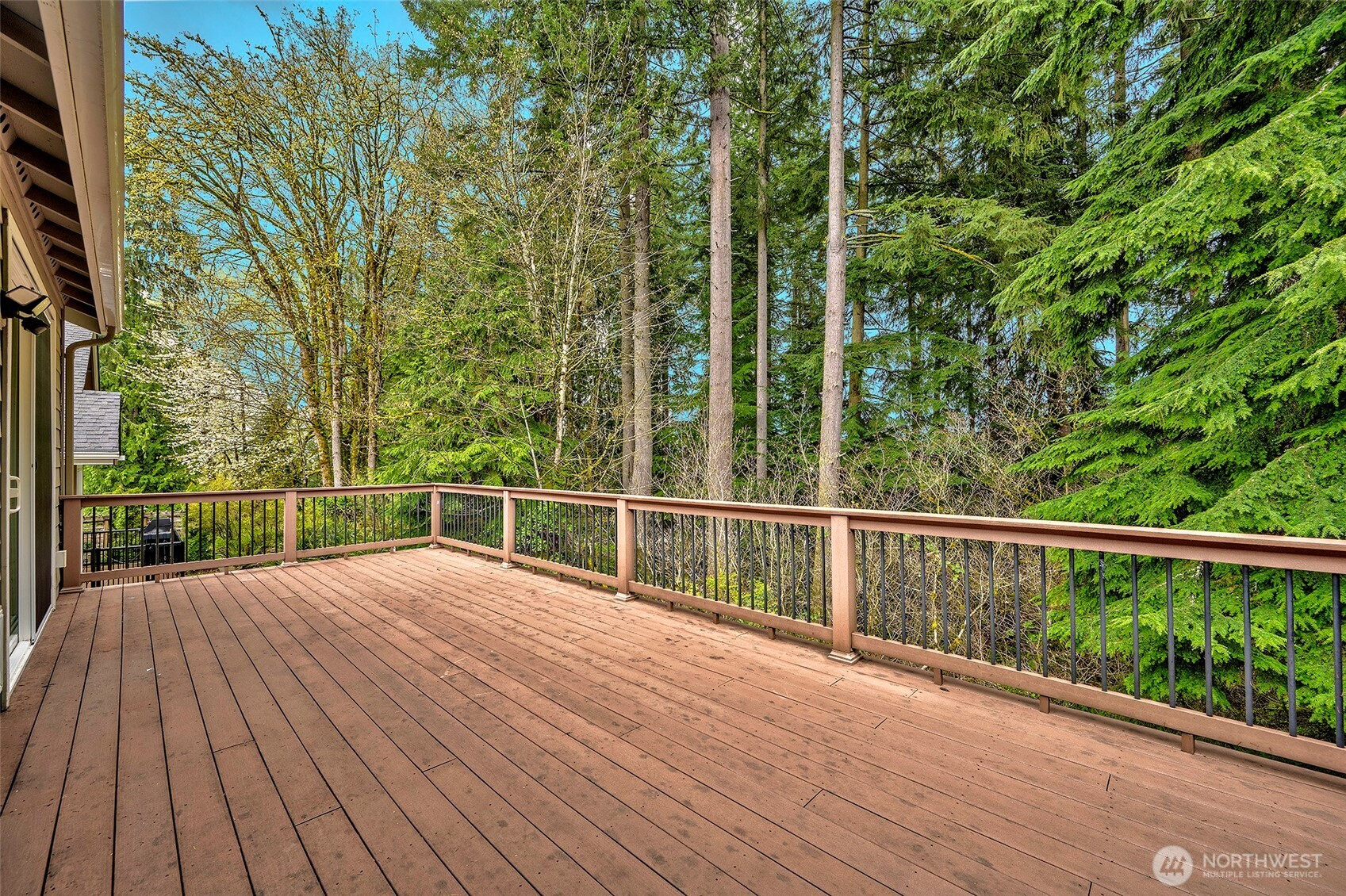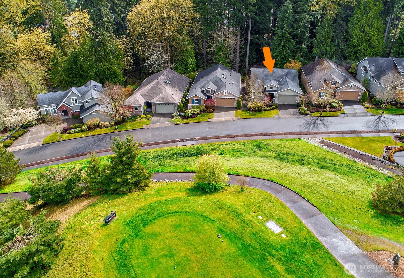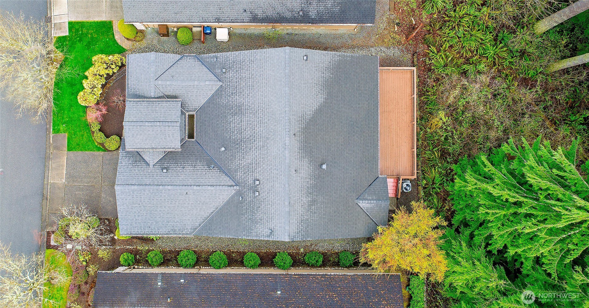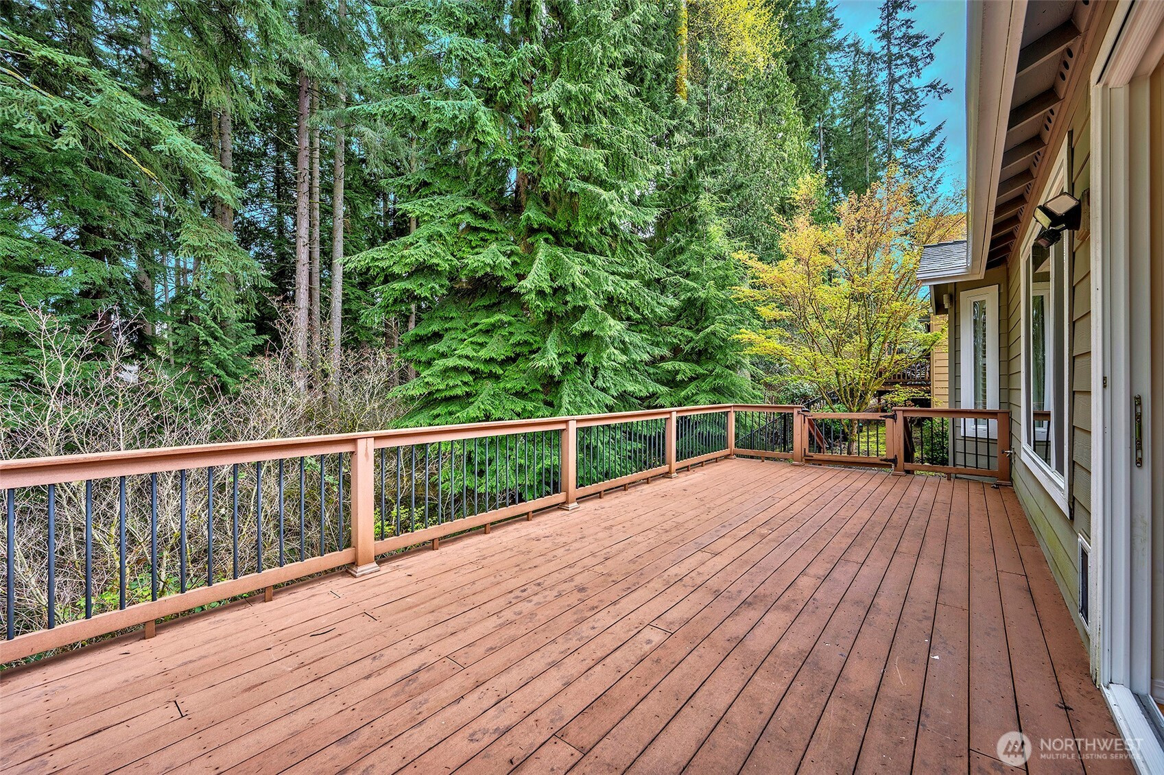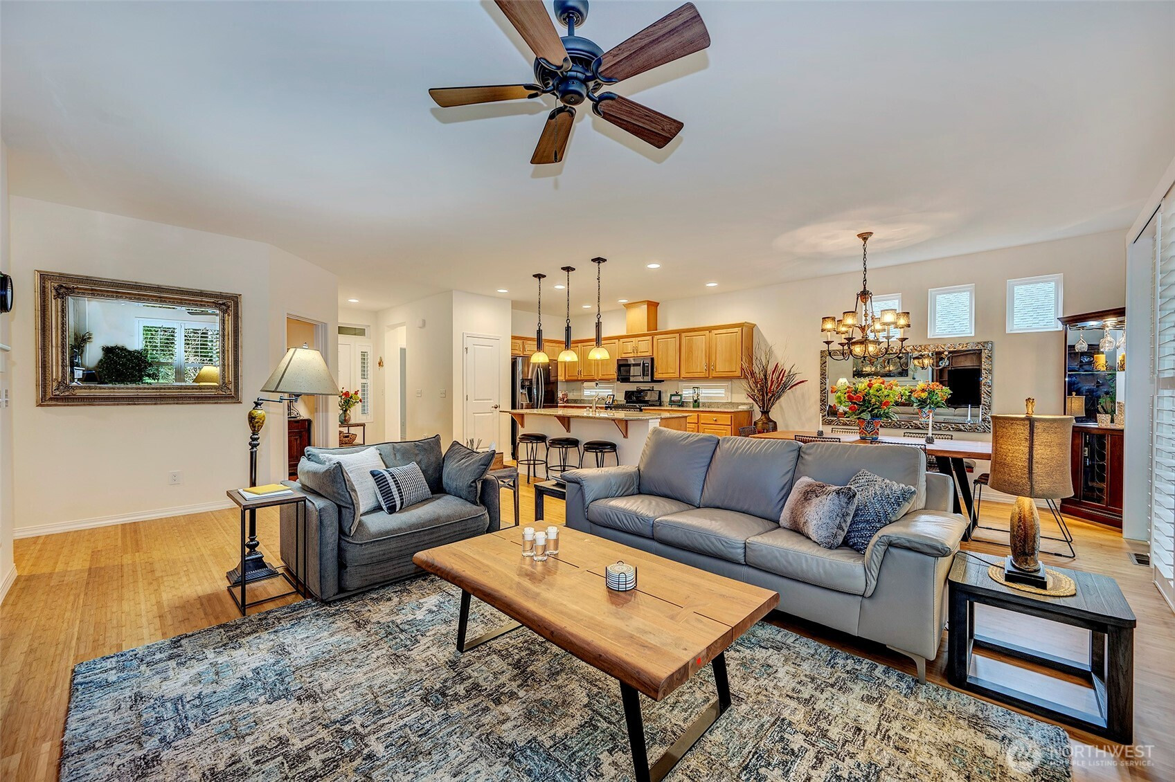 Experience resort-style living in the premier 55+ community of Trilogy at Redmond Ridge. Ideally located just blocks from the clubhouse and directly across from the 16th tee box, this meticulously maintained Vashon floor plan offers the perfect blend of casual elegance. Sited on a beautiful greenbelt lot, the home captures serene, nature-filled views from nearly every room. A covered entry welcomes guests into a warm, inviting interior featuring designer finishes and a sophisticated color palette throughout. Just off the entry, a private guest suite with an adjacent full bath provides ideal accommodation for visitors. Freshly refinished bamboo hardwood floors flow seamlessly through the open-concept great room, where expansive picture windows frame tranquil forest views. The island kitchen is well-appointed with maple cabinetry, granite countertops, breakfast bar, and ample workspace. The spacious primary suite with bay window includes an en-suite bath and walk-in closet, A private office provides the perfect work-from-home or hobby space. Step outside to the oversized, sun-filled deck, an ideal setting for relaxing or entertaining. Finished two-car garage features an easy-care epoxy floor and built-in storage cabinetry. Additional highlights include a new roof (2022), plantation shutters, and central A/C. Residents enjoy exceptional amenities, including a clubhouse, fitness center, pickleball and tennis courts, and more, all within a vibrant, active community.