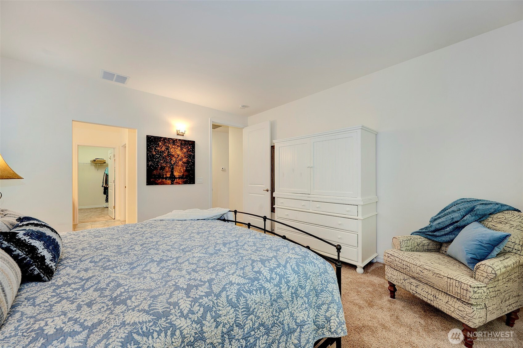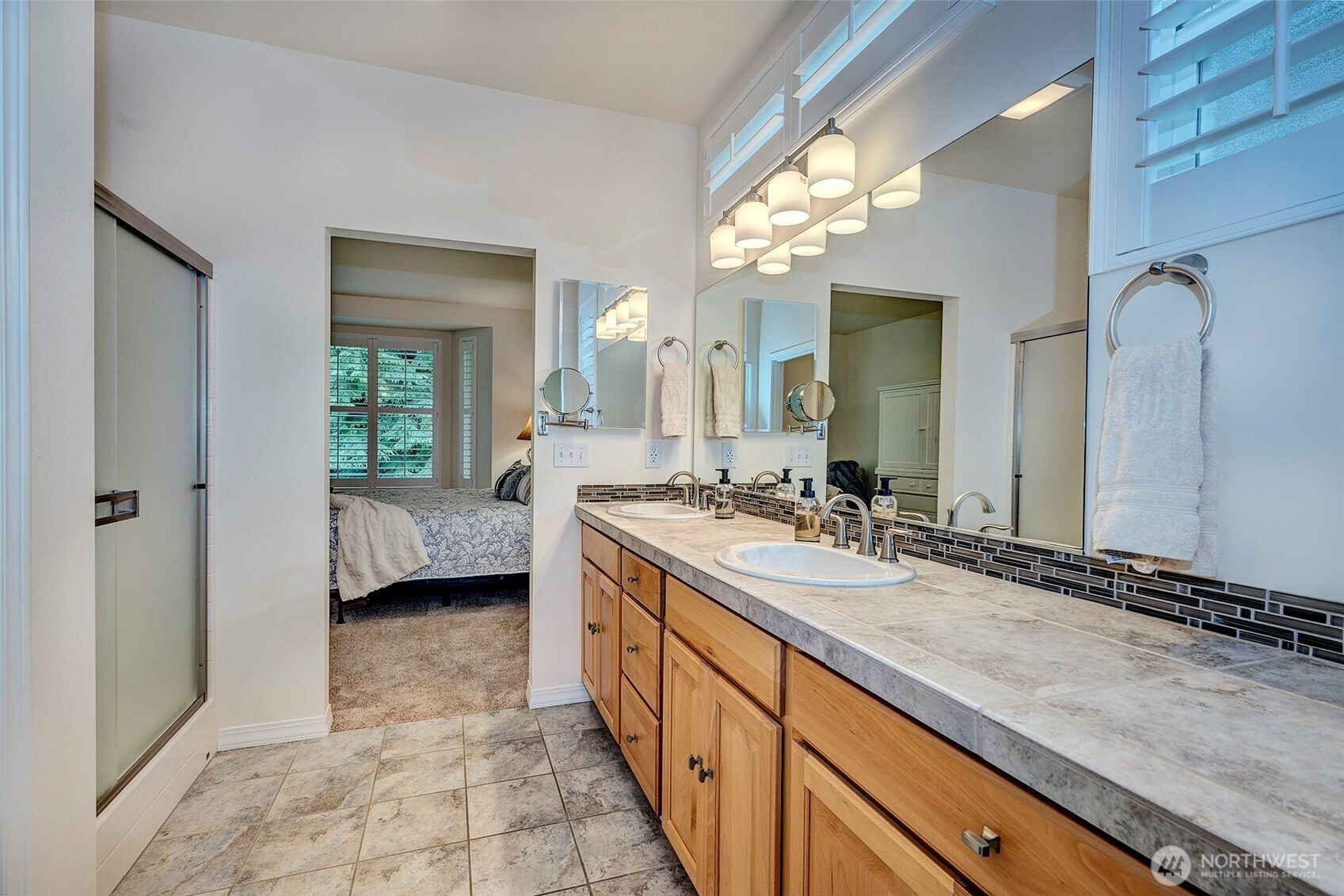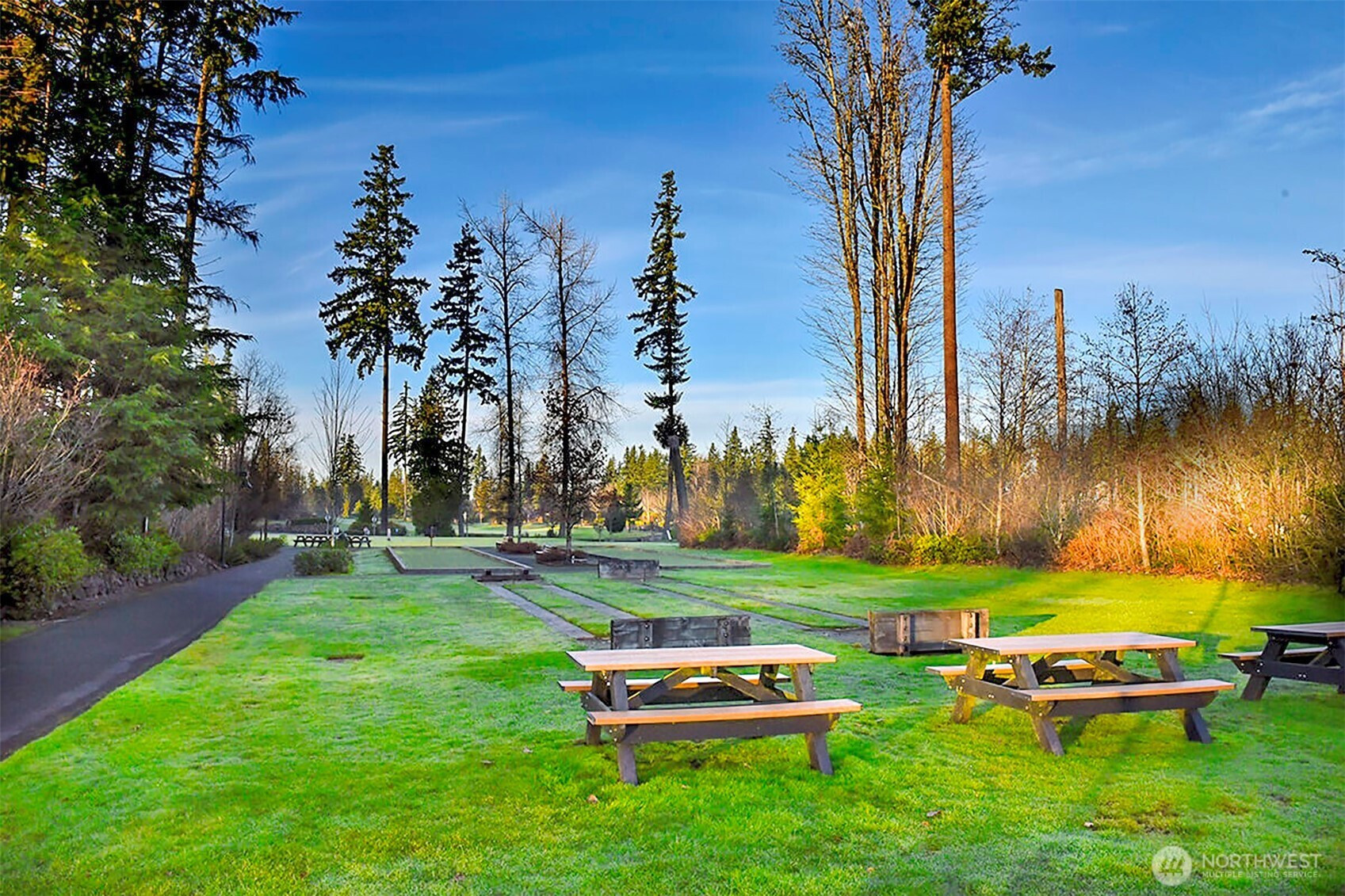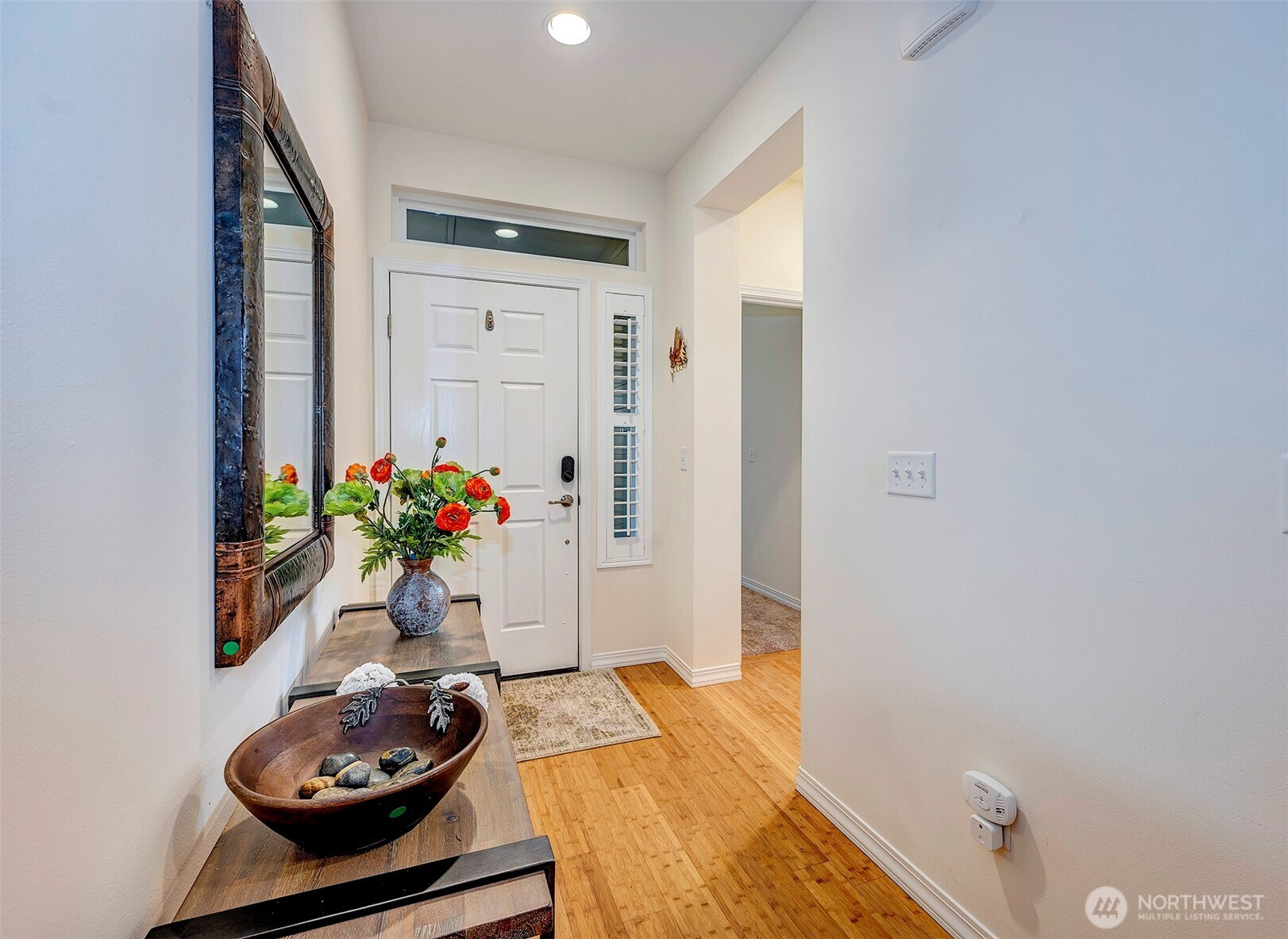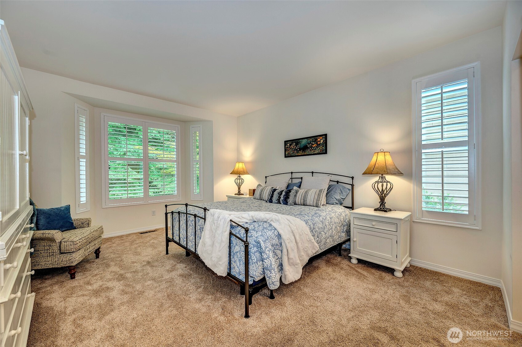 Experience resort-style living in the premier 55+ community of Trilogy at Redmond Ridge. Ideally located just blocks from the clubhouse and directly across from the 16th tee box, this meticulously maintained Vashon floor plan offers the perfect blend of casual elegance. Sited on a beautiful greenbelt lot, the home captures serene, nature-filled views from nearly every room. A covered entry welcomes guests into a warm, inviting interior featuring designer finishes and a sophisticated color palette throughout. Just off the entry, a private guest suite with an adjacent full bath provides ideal accommodation for visitors. Freshly refinished bamboo hardwood floors flow seamlessly through the open-concept great room, where expansive picture windows frame tranquil forest views. The island kitchen is well-appointed with maple cabinetry, granite countertops, breakfast bar, and ample workspace. The spacious primary suite with bay window includes an en-suite bath and walk-in closet, A private office provides the perfect work-from-home or hobby space. Step outside to the oversized, sun-filled deck, an ideal setting for relaxing or entertaining. Finished two-car garage features an easy-care epoxy floor and built-in storage cabinetry. Additional highlights include a new roof (2022), plantation shutters, and central A/C. Residents enjoy exceptional amenities, including a clubhouse, fitness center, pickleball and tennis courts, and more, all within a vibrant, active community.