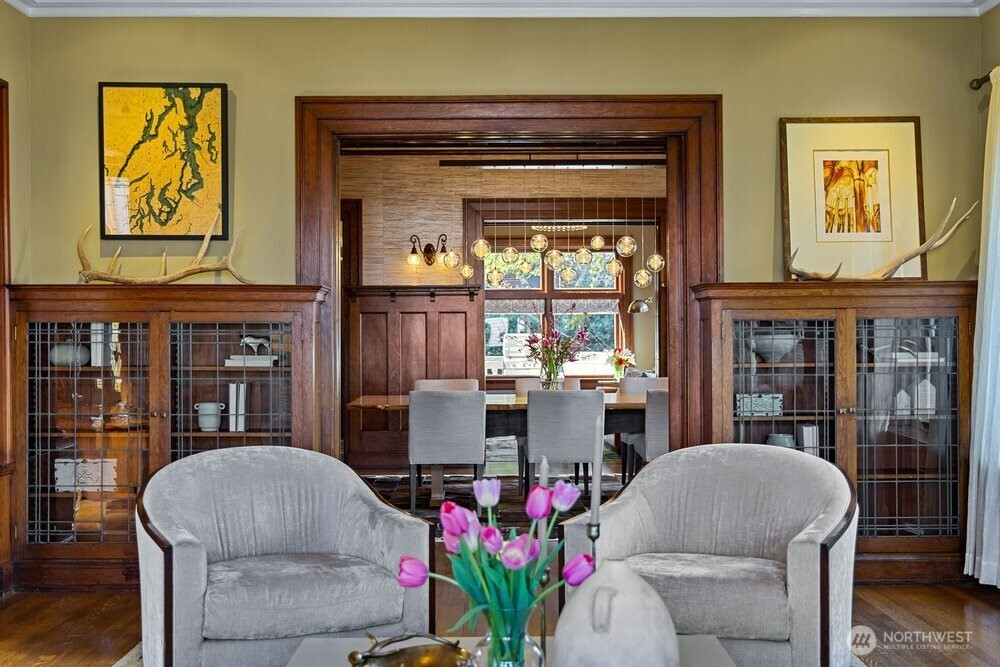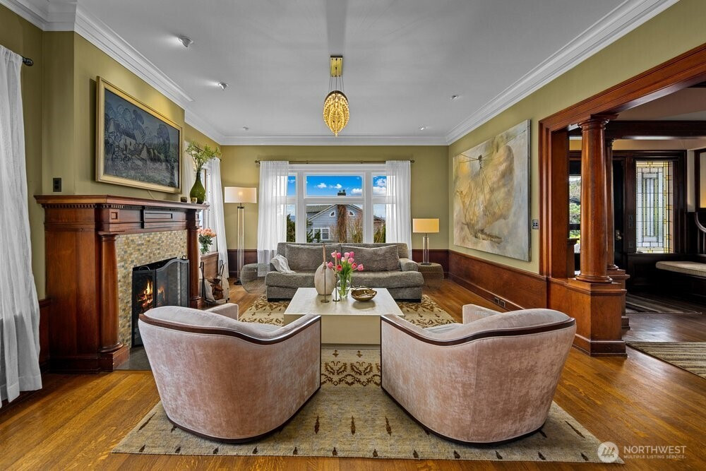 (503) 893-8874Wishing for a home of happiness, love and meticulous care, this stunning 1909 Bebb & Mendel residence prominently sited on a corner lot to capture Lake Washington and snowy Cascade Mountain views will entice. Rich in historic pedigree, timeless architecture and elegance, it is simultaneously updated for modern luxury. Garden-rich entrance features a structural water element, blooming daphne and the legendary Wishing Tree. Survey the engaging North Capitol Hill neighborhood from the welcoming front porch. Elegantly proportioned interiors are defined by high ceilings, an impressive entry with open stairwell, extraordinary original detailing and luminous stained-glass windows. The spectacular kitchen is anchored by a warm black walnut island, premium appliances, heated limestone floors, walk-in pantry, bar area and pet station. The primary suite offers a private sanctuary, with sparkling lake and mountain views, walls of custom closets, and a luxe bath with steam shower, soaking tub, heated floors, and adjoining sitting room with view balcony. All bedrooms are located on second and third floors. A wonderfully usable third-level ballroom includes a guest suite. Gracious outdoor living spaces feature a bluestone patio with firepit, hot tub, pizza oven, BBQ deck, and lush mature landscaping to create an exceptional setting for entertaining. The high-ceilinged lower level includes recreation space, gym and laundry. Two car detached garage complete this story of this remarkable home!