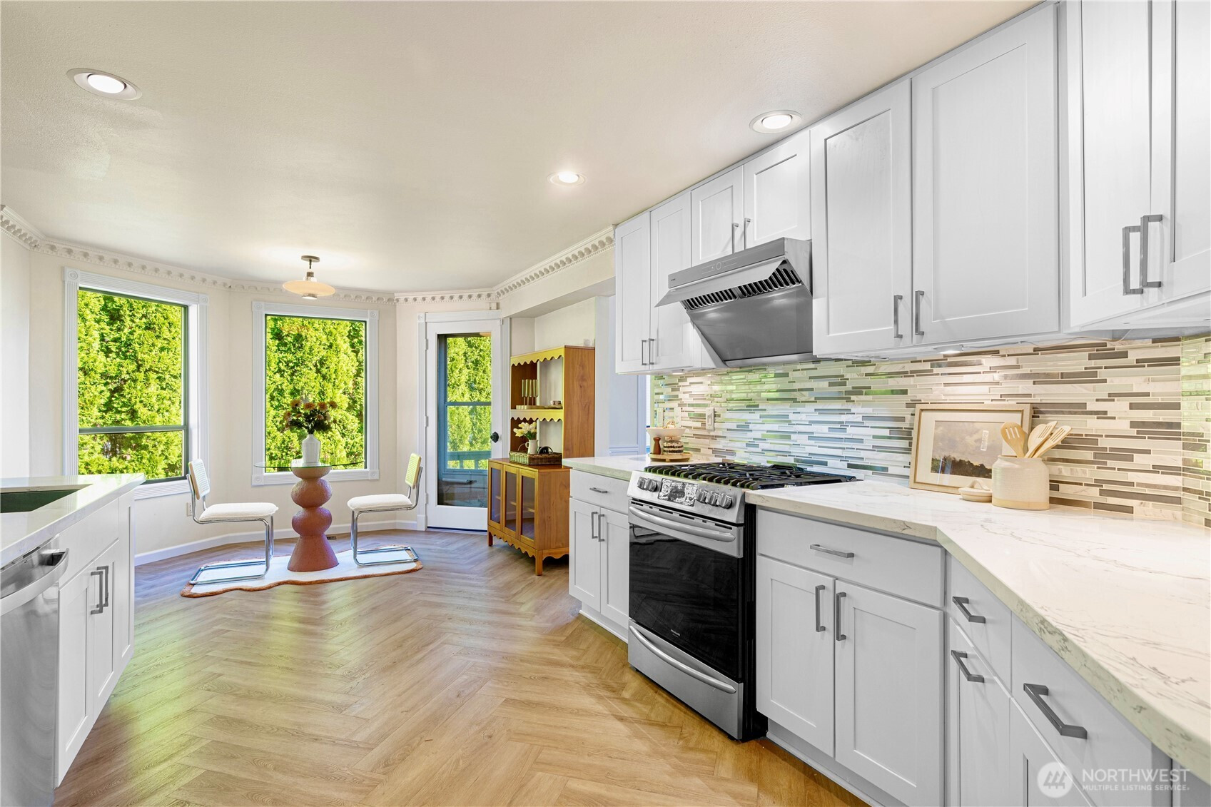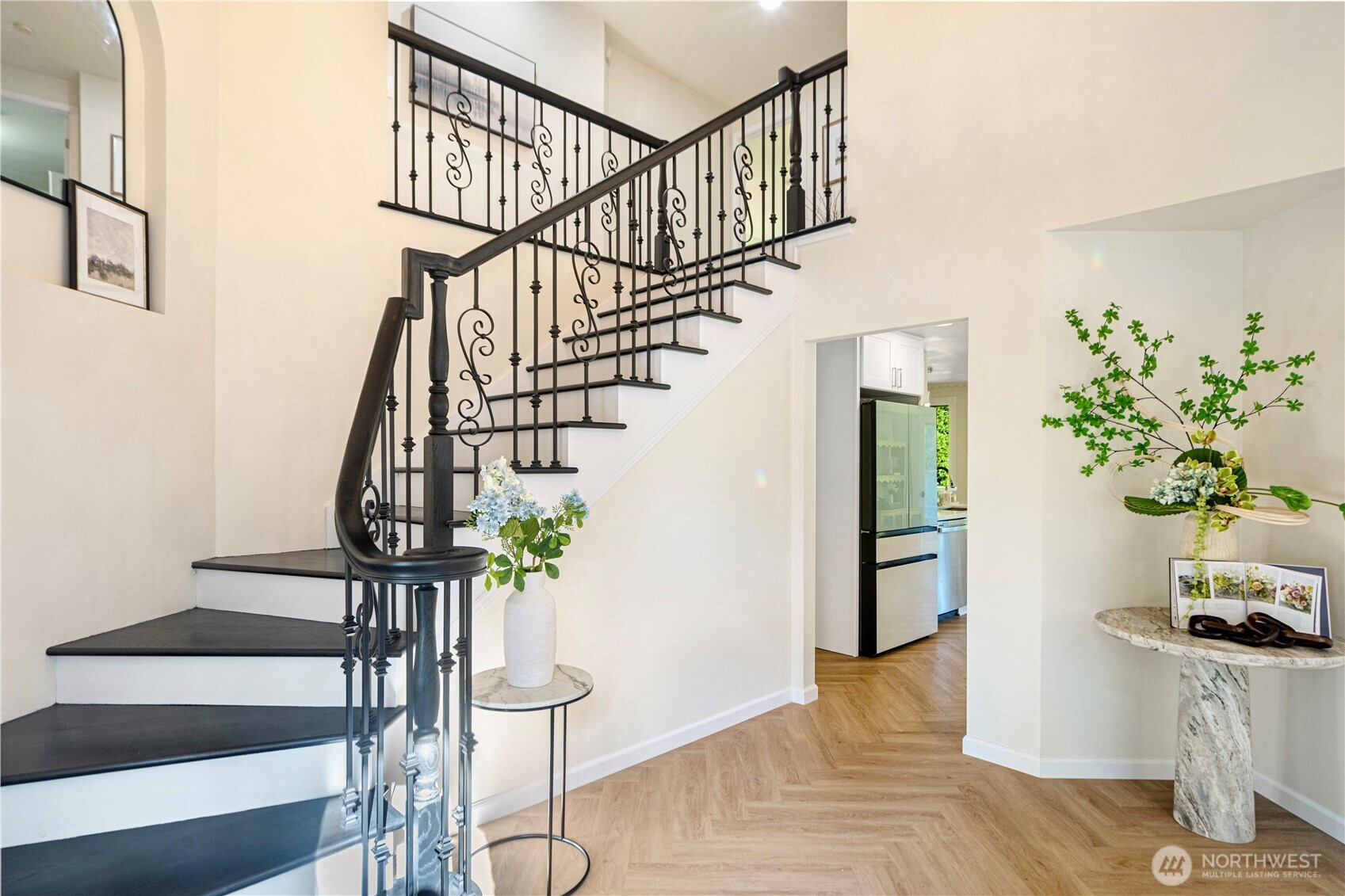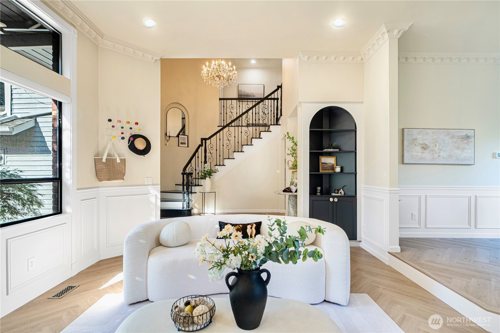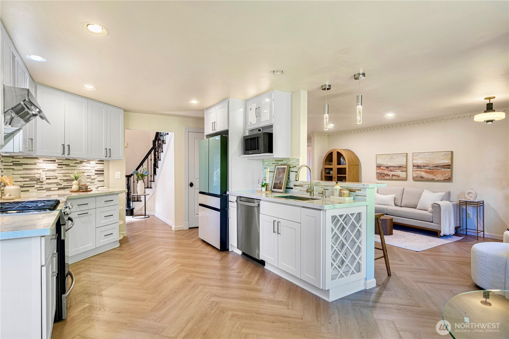 Nestled in the desirable Olympus neighborhood, this renovated home combines timeless curb appeal with luxury modern french style. Over $200K in upgrades showcase designer craftsmanship, including every bath, the gourmet kitchen, new flooring and statement lightings. The versatile layout offers open living & dining space with vaulted ceiling filled with natural light. Main-floor bedroom with nearby ¾ bath is great for guest/office. Upstairs features a primary suite, two additional bedrooms and a full bath. Entertain with ease on the upgraded deck and private level backyard with new fence. Central AC for year-round comfort. Conveniently located near parks, shops & dining; 15 min to Bellevue and 20 min to Seattle. A rare gem not to be missed!