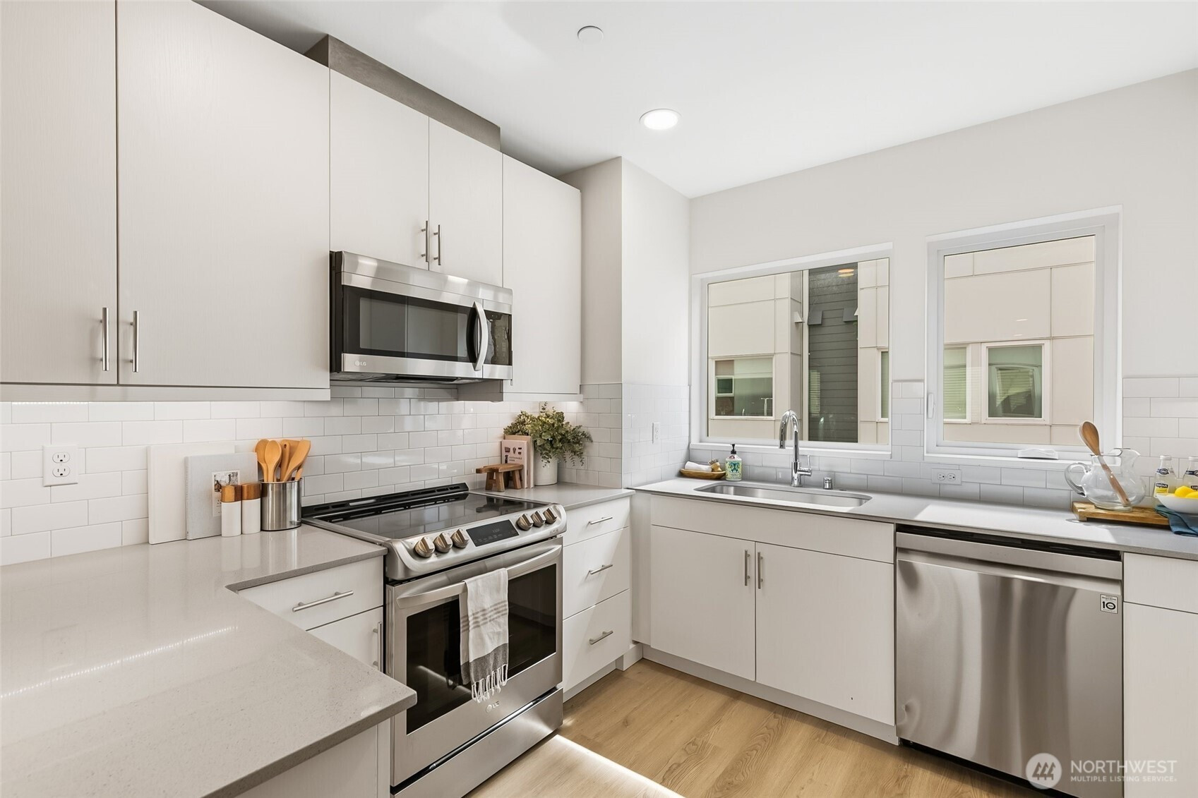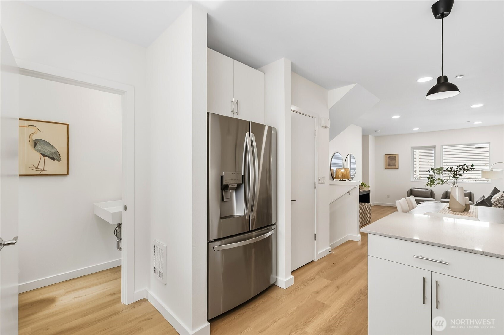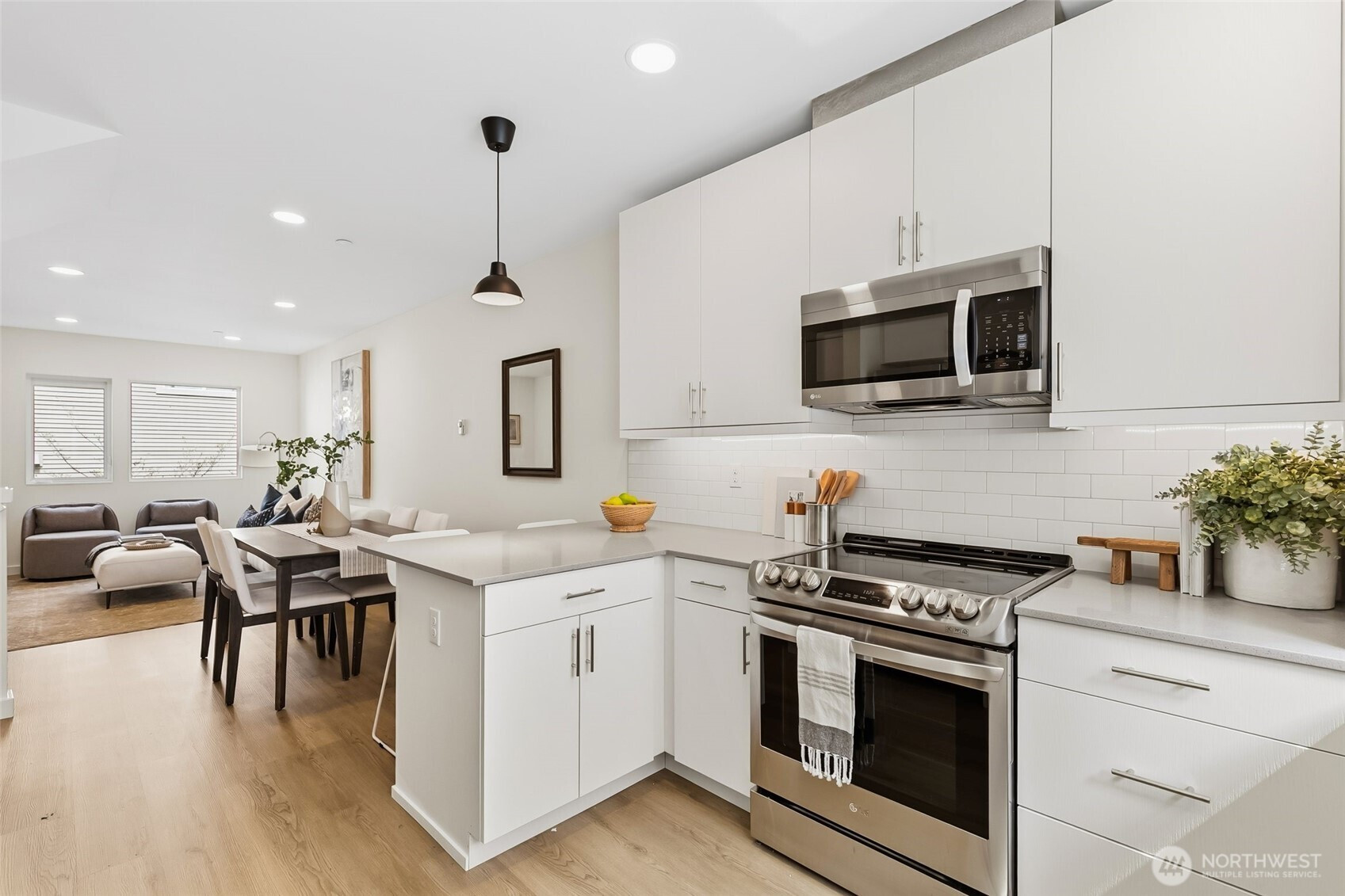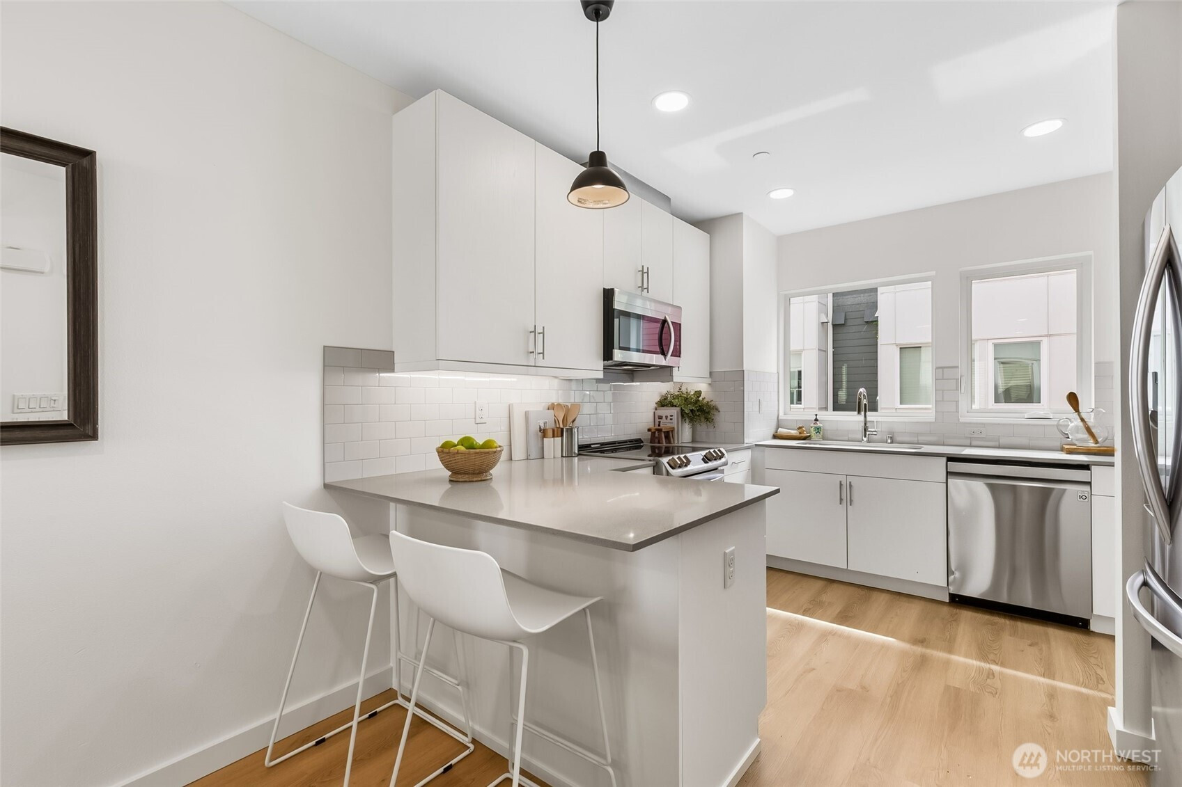 Best deal in the neighborhood! Modern 3-bedroom, 2.5-bath townhouse with an attached garage in Seattle's desirable Olympic Hills. Built in 2020 and freshly updated for new owners in 2026, this well-maintained 1,200 sq ft home offers a bright, open-concept layout with contemporary finishes, stainless steel appliances, and an in-unit washer and dryer for everyday convenience. The private backyard area is great for pets or gardening. The location is hard to beat, with a Safeway directly across the street, easy access to bus lines 75 and 348, and just minutes to I-5 and express lanes. You're only 12 minutes from Downtown Seattle and about 5 minutes from Northgate's shopping, dining, and Light Rail access, with Jackson Park Golf Course nearby, making this an ideal blend of comfort, accessibility, and lifestyle.