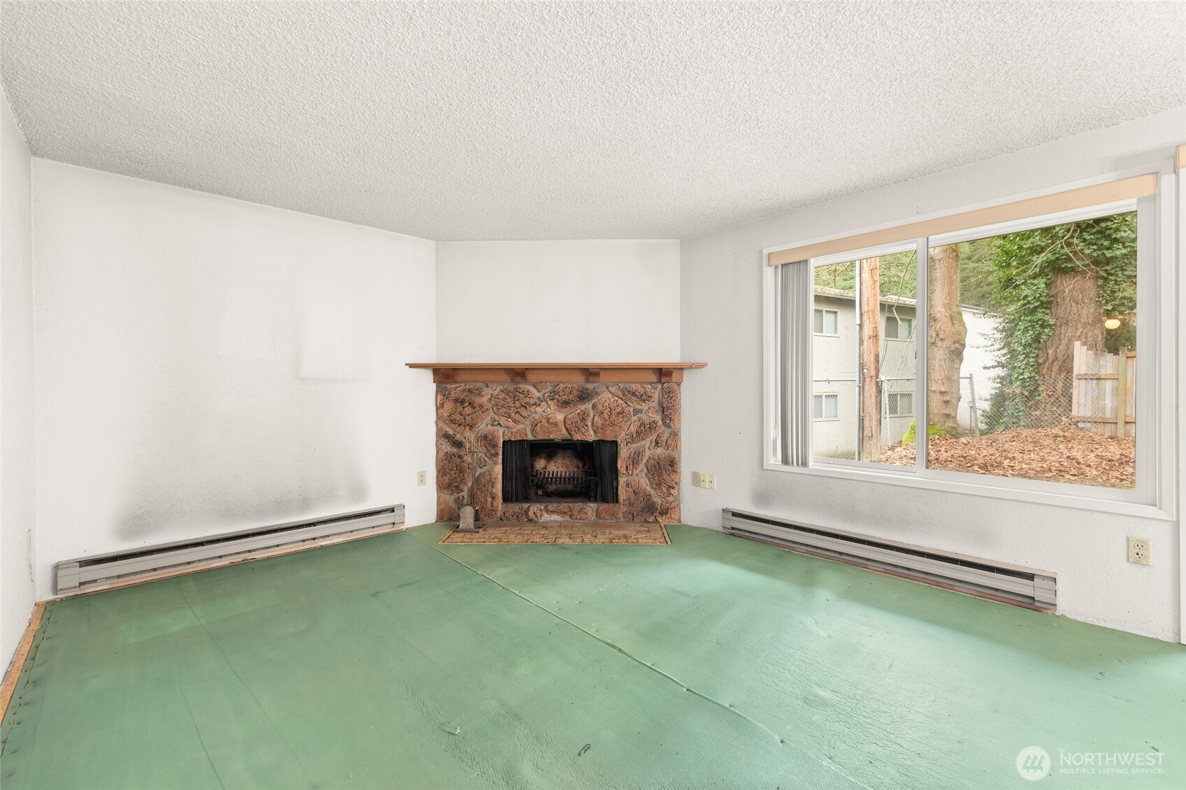 Affordable Kirkland starter or investment opportunity awaits your personal touches. Wonderful 2Br/1Ba ground floor, end unit in Ridgewood Village features level entry and easy accessibility from your assigned carport. Wood-burning fireplace adorns light & bright living room. Dining room slider opens to covered patio and grassy backyard. Efficient galley style kitchen. Spacious Bedrooms and Bath. Notable highlights include double-pane storm windows, in-unit washer and dryer, outdoor storage closet, one dedicated stall and abundance of visitors parking. Conveniently located near Totem Lake Shopping Center and minutes from freeway access. No rental cap. View it soon.