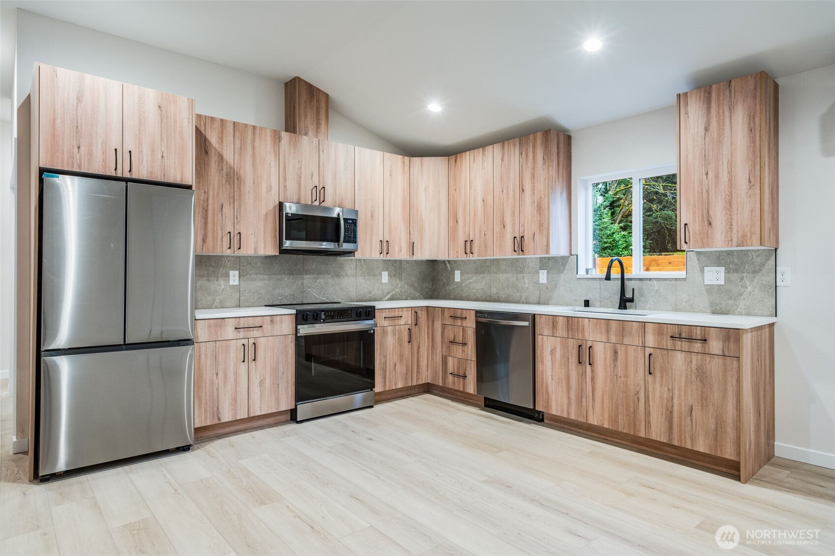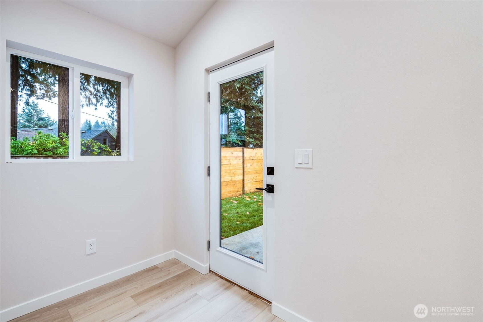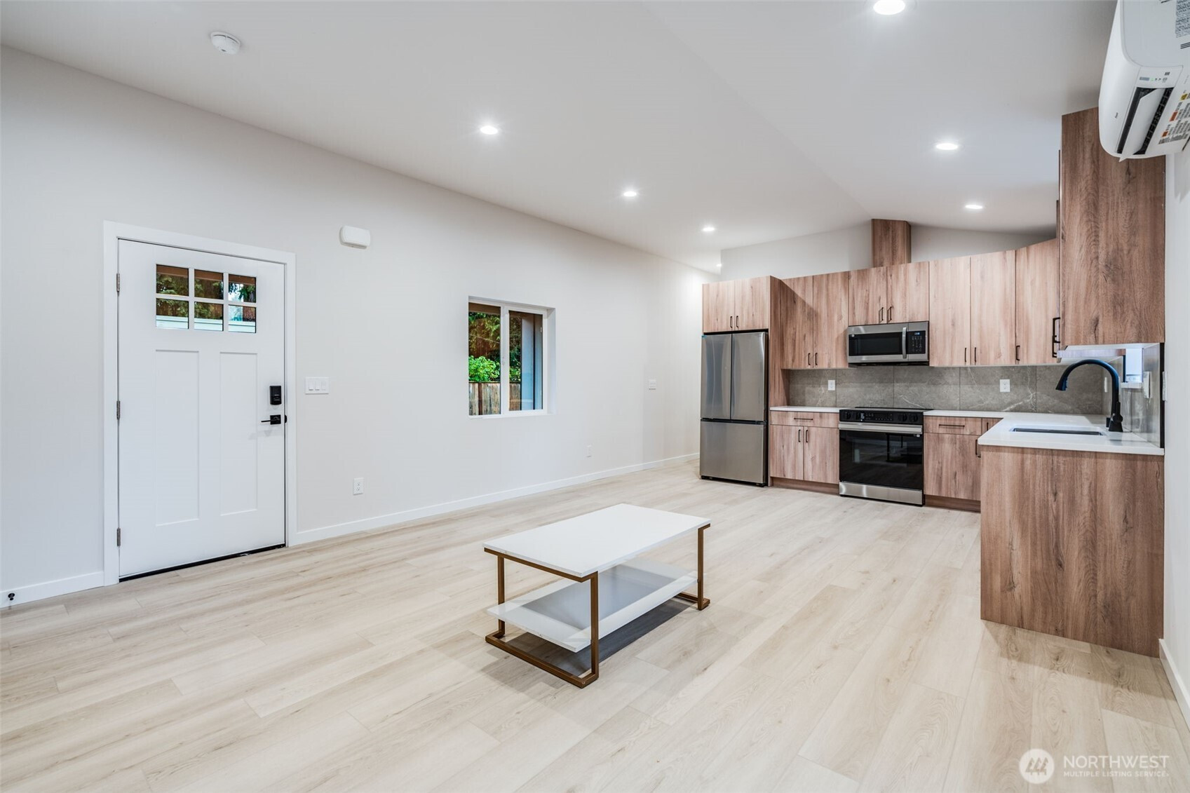 This perfect one-story home awaits you! This 2 bedroom, 1 bathroom home is located in the desirable neighborhood of Olympic Hills, on a dead end street. The bright, open living room and kitchen area feature updated, modern finishes and a great flow for entertaining. A mud room adds everyday practicality—perfect for rainy Seattle days, storage, or pets. Enjoy the privacy of your own dedicated 1-car garage with extra storage! Its unbeatable location places you minutes from the light rail, Northgate’s redevelopment, parks, and trails. A unique opportunity for turn-key living in a sought-after neighborhood.