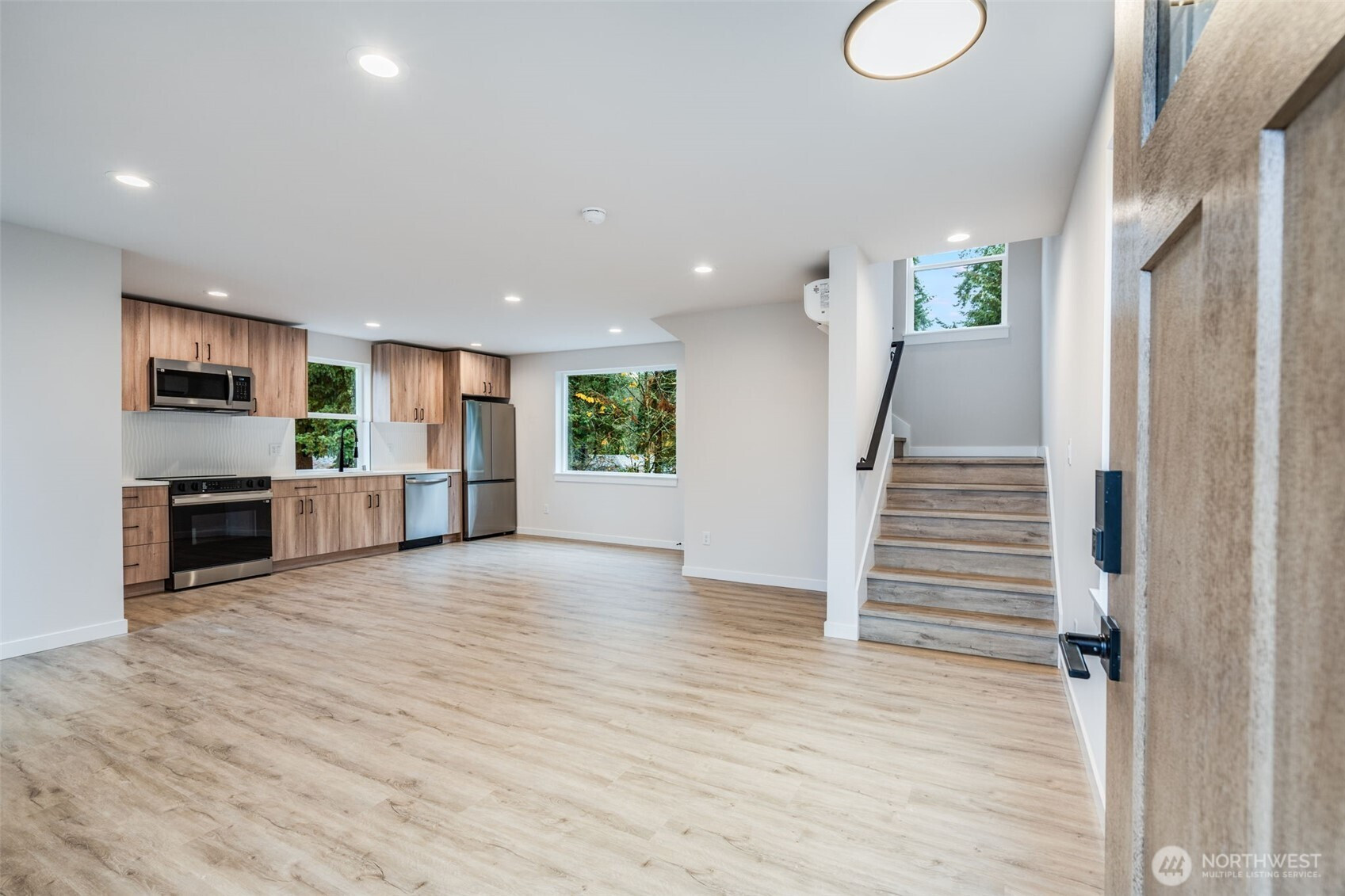 Brand-new construction in the heart of Olympic Hills! This 2-level accessory dwelling unit sits above its own dedicated garage—offering rare privacy, convenience, and elevated living. The main floor features a bright, open-concept layout with a stylish kitchen, comfortable living space, and contemporary finishes throughout. The upper level includes 3 bedrooms and a beautifully designed bathroom. Nestled on a quiet private road and minutes from the light rail, Northgate amenities, parks, and transit. A perfect opportunity for low-maintenance living, rental income, or a flexible guest space—all in a prime Seattle location.