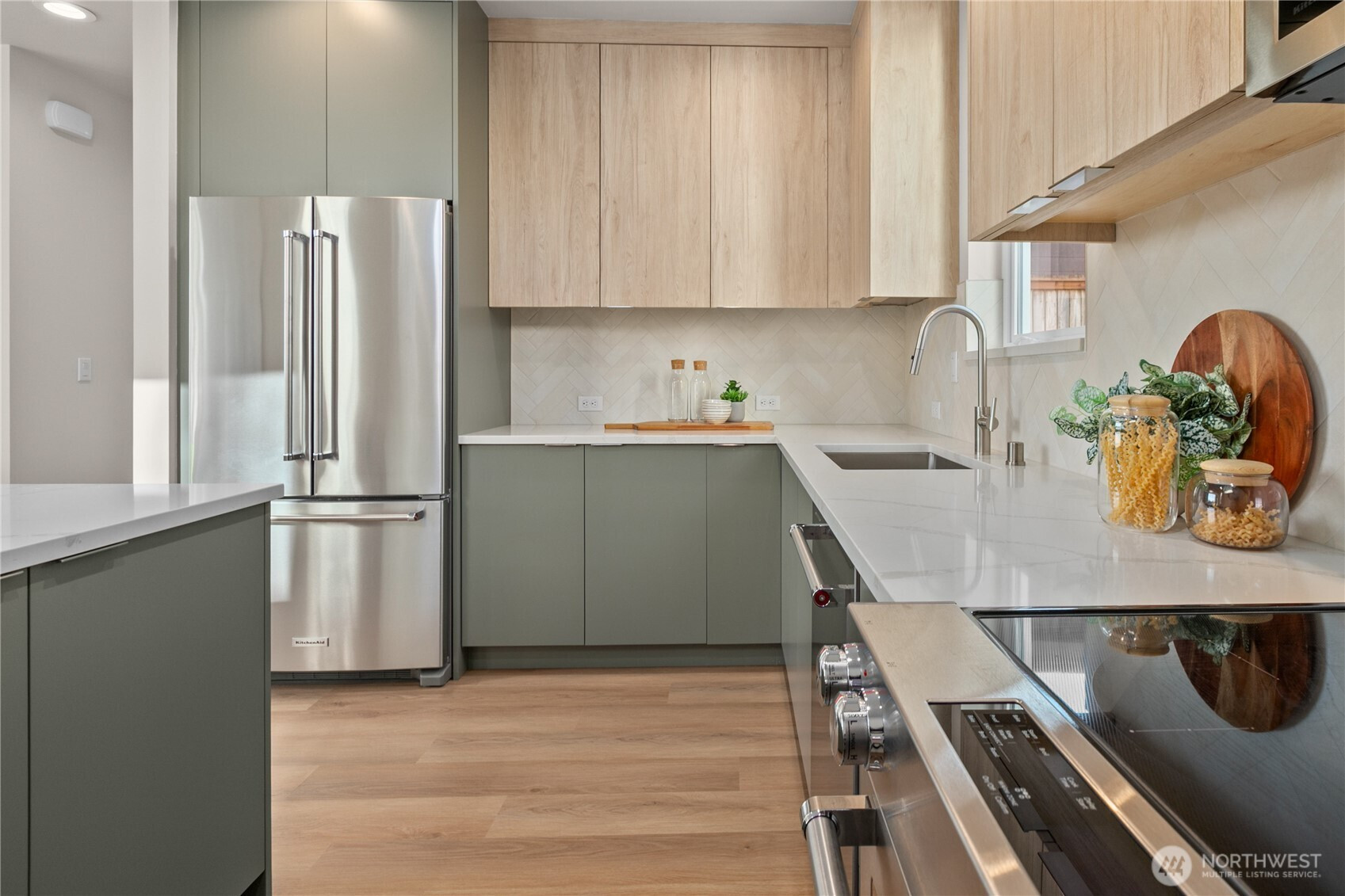 Thoughtfully designed new construction in Seattleās desirable Maple Leaf neighborhood. The entry opens to an inviting open floor plan and a spacious living room filled with natural light and framed by mountain views. The functional kitchen includes stainless steel appliances and plenty of room for cooking and entertaining, with a convenient half bath completing the main floor. Upstairs features two generous bedrooms, each with its own ensuite bath. An attached spacious garage and additional storage space, plus a private yard, provide comfort and everyday convenience.