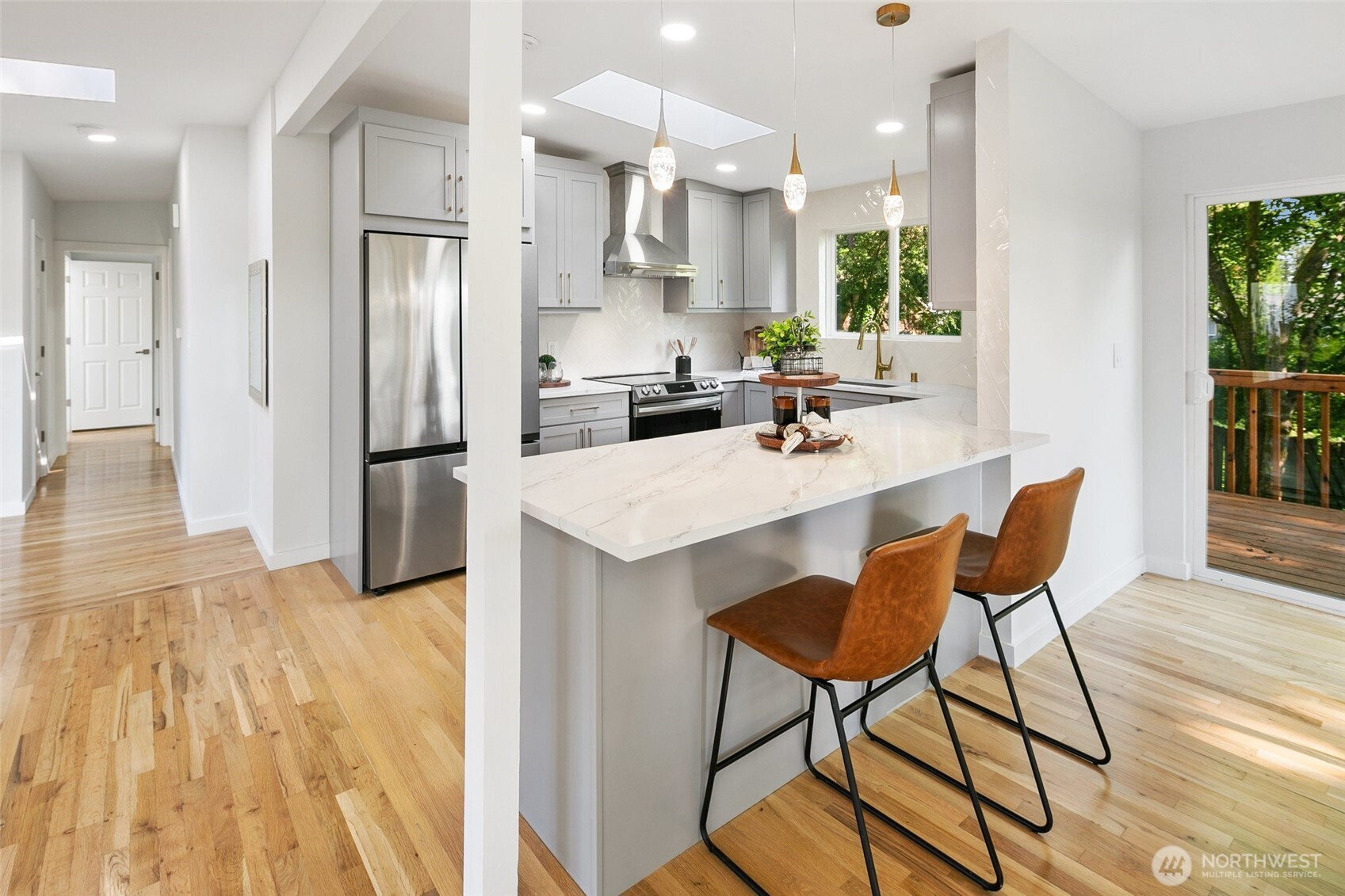 Turn-key, fully renovated Cedar Park home blending timeless craftsmanship with modern comfort! This spacious 4-bedroom, 3-bath offers 2,500 square feet of beautifully updated living space designed for today’s lifestyle. Every major system has been thoughtfully upgraded, including new electrical, plumbing, roof, and windows, providing peace of mind for years to come. Inside, warm oak hardwood floors and a dramatic cathedral ceiling fills the home with natural light and creates an open, airy feel. The flexible floor plan offers generous living and entertaining spaces, ideal for both everyday living and hosting. Well-appointed bedrooms and updated baths provide comfort and privacy, while quality finishes reflect the care taken in this comprehensive renovation. Step outside to enjoy a large backyard, perfect for entertaining, play, or future garden and outdoor living possibilities. Located on a quiet “healthy street” in the desirable Cedar Park neighborhood with easy access to parks, schools, shopping, and commuter routes. A rare opportunity to own a truly move-in-ready home with both style and substance in one of North Seattle’s most established neighborhoods.