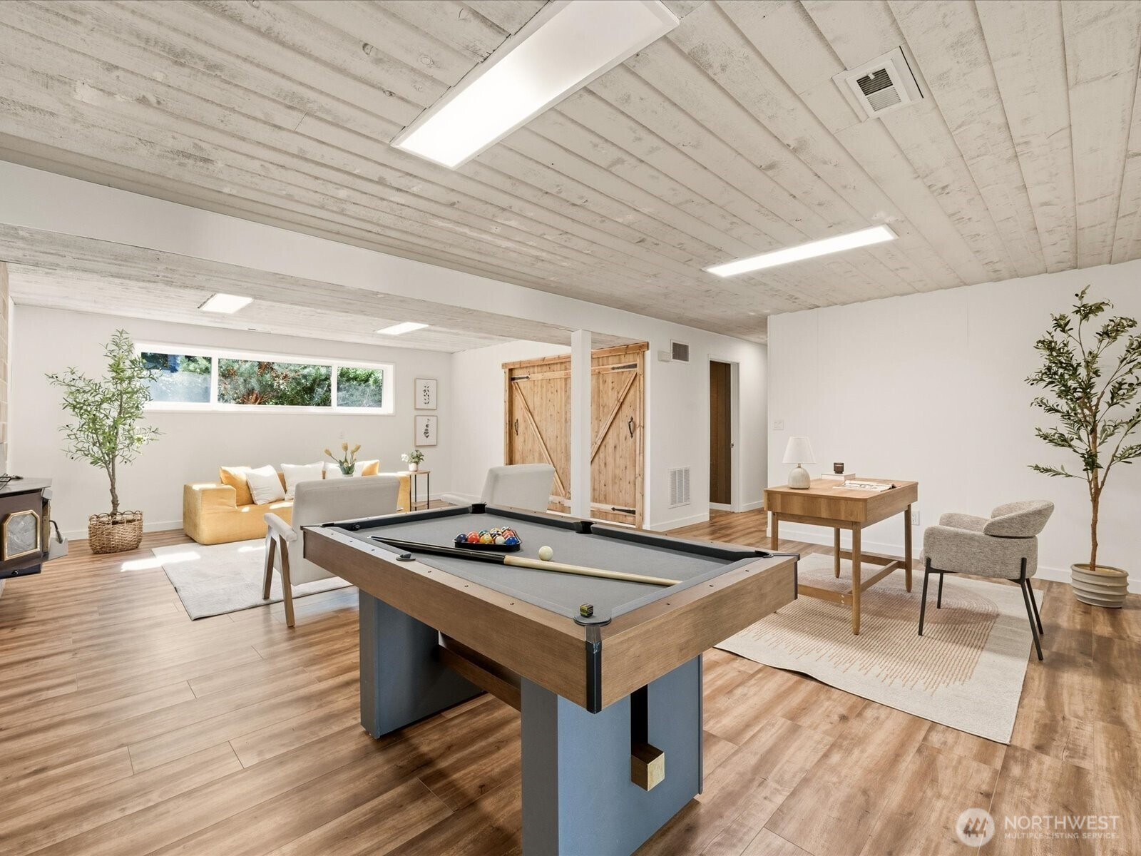 Welcome to Newport Woods in Newcastle build your own equity with this 5-bedroom, Office/den, 1 full bath, 2 three-quarter bath home offers comfort, space, and convenience on a private, over quarter-acre lot. Move in with updated interior features: fresh paint, updated trim and doors, double-pane Andersen windows, a new water heater, and an upgraded 200amp electrical panel with plenty of unused space. Enjoy a blend of luxury waterproof vinyl plank flooring and original oak hardwoods, along with granite countertops and white appliances. The upper level includes a spacious primary suite and two additional bedrooms, while the daylight lower level offers two bedrooms, a den, and ceilings over 8 feet high. Outdoor living shines with a Trex deck balcony, large storage shed, play structure, and partially fenced yard for added privacy. Additional highlights include wood-burning fireplaces, copper plumbing, a 2-car garage with updated openers and rear access, plus ample driveway and street parking. Southwest exposure brings in abundant natural light. Conveniently located with gated access to nearby shopping and town amenities, and served by Hazelwood Elementary, Risdon Middle, and Hazen High School. If you are looking for Bellevue schools, Open enrollment is a potential. Great price for the sqft and location.