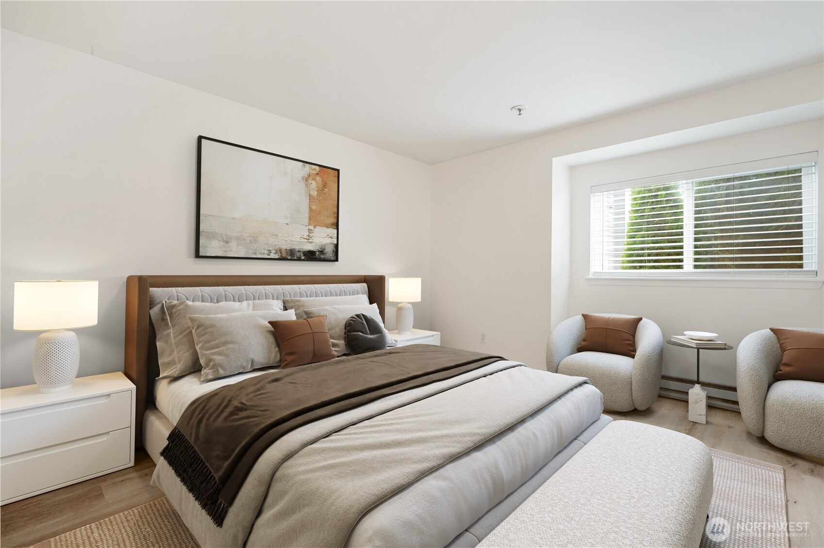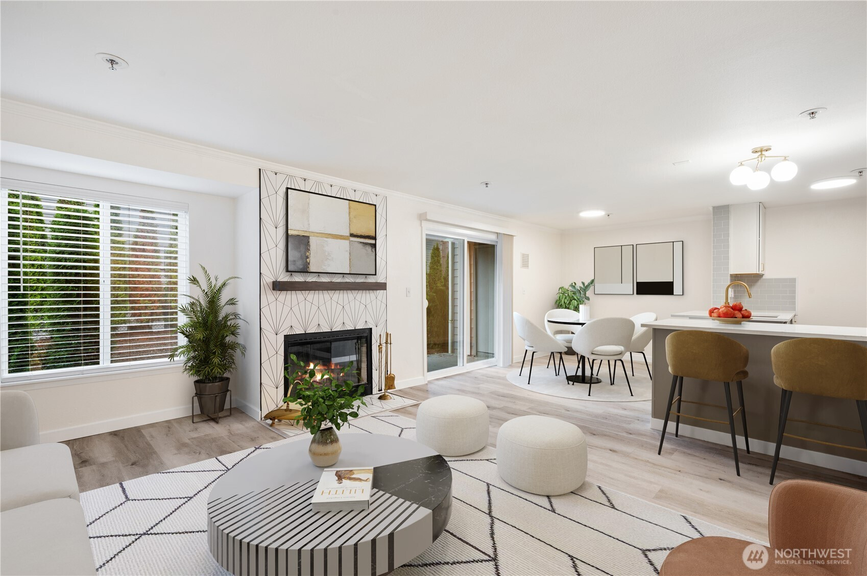 Welcome Home to this gorgeous turnkey beauty in popular Juanita Country Club. This private, main floor walk-out, end unit home has been freshly painted, and beautifully remodeled. Excellent location - 4 blocks to 405, grocery store, and close to all conveniences. Main floor features include a private entry and back patio with shrubbery. Two full bathrooms. Freshly painted and a new water heater. Do you have two cars? This home is the best value in Kirkland - Not only do you have an individual garage but you also have a coveted, dedicated parking spot and this community also has plenty of visitor parking. Great long-term investment - community well underneath a generous rental cap. Fantastic walkable location to the Village at Totem Lake, Whole Foods, Trader Joes, restaurants and more. Well-run HOA. Clubhouse with basketball/racquetball court, indoor jetted spa, outdoor pool, sauna and workout room. Look out at greenery - private shrubbery hedge in back. Don't miss this home.
