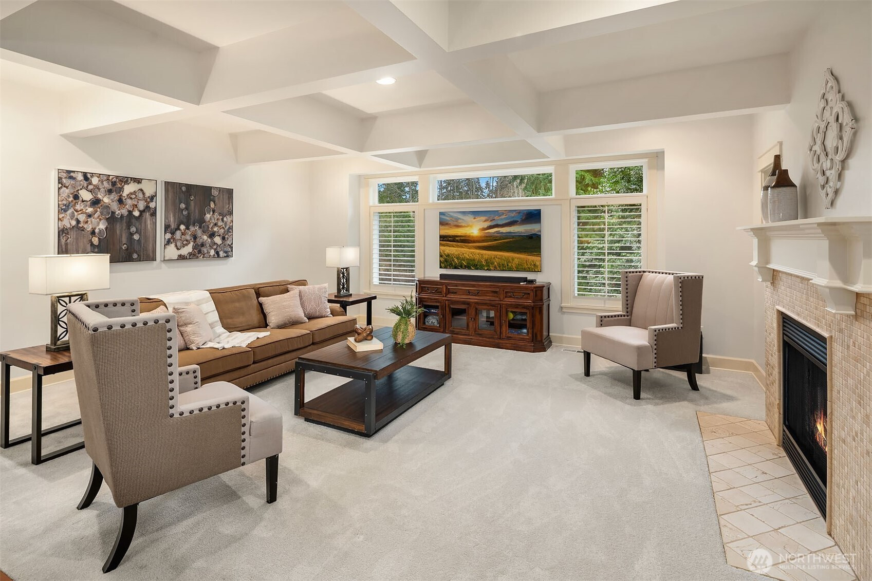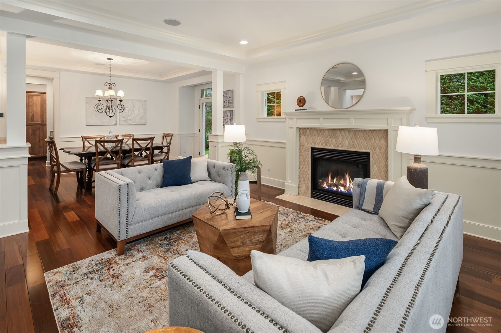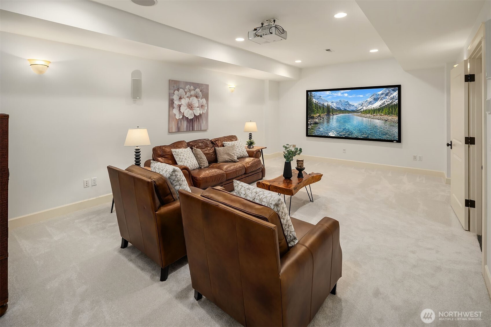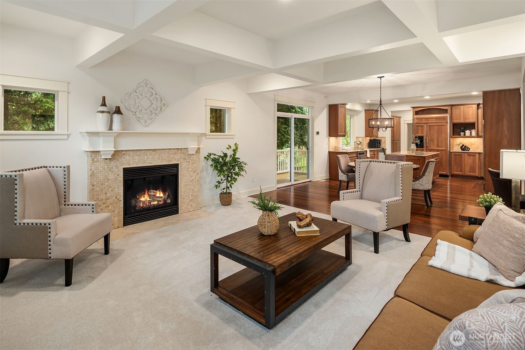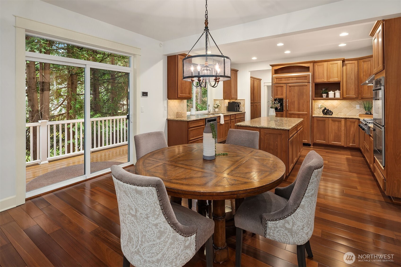 An appealing & functional floor plan designed to check every box. A dramatic 2-story entry welcomes you, where gorgeous hardwoods flow through the kitchen & formal living spaces, complemented by decorative tile, wood shutters & brilliant millwork. The spacious slab granite kitchen features high-end appliances, large island, abundant cabinetry, butler's pantry with wet bar & wine cooler, dining area & a slider to the deck. Warm & inviting, the family room opens to the kitchen & includes a gas fireplace & box-beam ceilings. The elegant living & dining rooms offer an ideal venue for entertaining with French doors opening to the yard. The romantic primary suite boasts a sitting area & luxurious bath with 2 vanities, tile shower, soaking tub & walk-in closet with a 2nd washer/dryer. 3 additional bedrooms & a vaulted bonus room are just down the hall. A main-floor den with closet & access to the front deck. Escape to the lower level with a media room featuring a screen & projector, exercise room, 5th BR & full bath, perfect for guests. Generous windows & skylights fill the home with natural light. Fresh interior paint & new carpet, built-in speakers, CAT5, AC, hot tub & Control4 smart home system. Oversized 3-car, side-load garage with storage room. Enjoy stunning sunrises from the covered wrap-around deck. Private setting with tree-lined yard & protected areas on 2 sides. Ideally located on a non-thru road close to Microsoft, Bellevue, Kirkland, Redmond, Issaquah & Lake Sammamish.