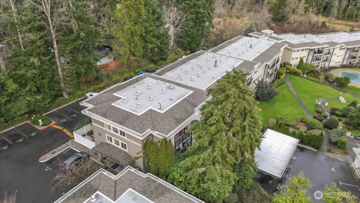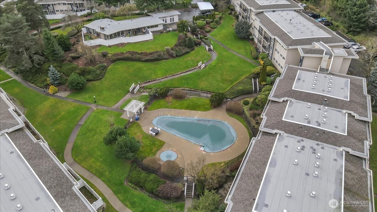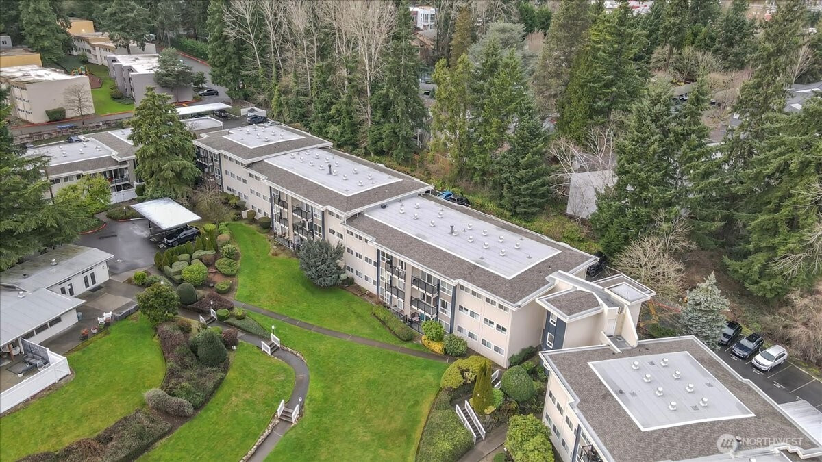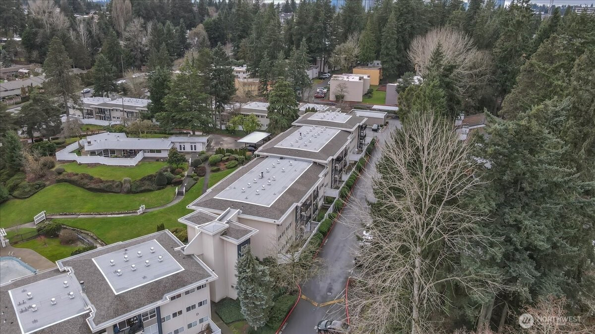 Enjoy the convenience of living in a complex that is conveniently located, surrounded by mature landscape in the heart of Bellevue!. Beautifully landscaped grounds complete with walkways, swimming pool and hot tub with plenty of lounging area, Cabana with exercise room, game room and kitchen as each building in the complex overlooks this tranquil centerpiece. Cozy Top floor one bedroom unit features a remodeled bathroom, newer appliances, new hot water tank, new washer & dryer. Secured Building. New textured ceiling throughout condo. Many updates include new roofs, balconies, elevators, exterior paint, carports, elevators and some plumbing. No special assessment. Well run condominium complex with high owner occupancy. Cats and dogs allowed with no restrictions. Deeded carport space included. EV charging station.