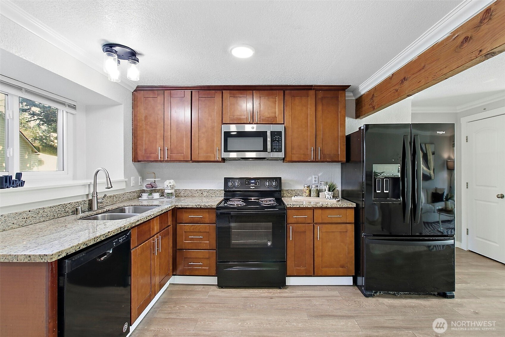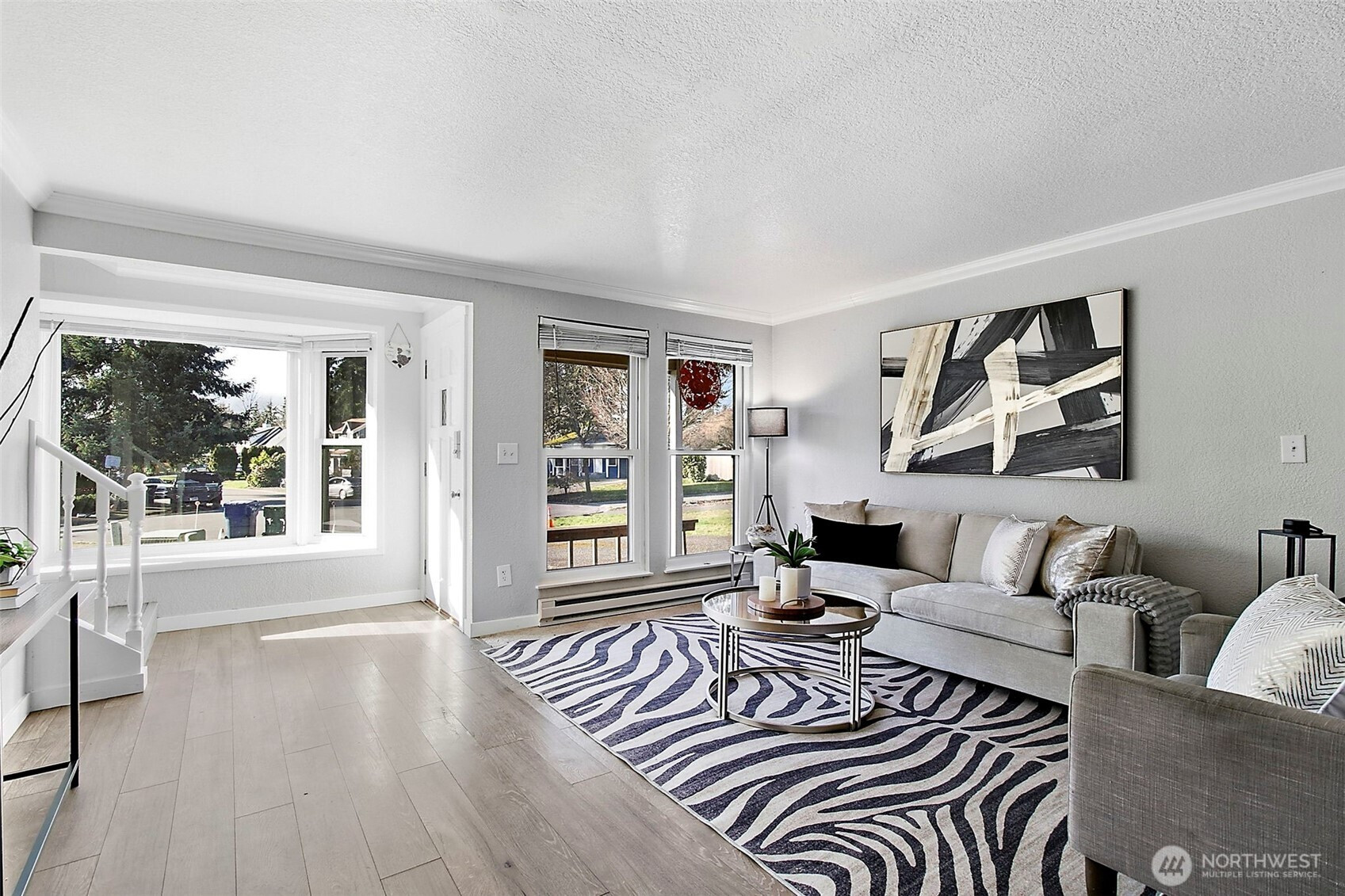 Welcome to your move in ready home in the beautiful Lea Hill neighborhood! Enter into the living room filled with natural light, two bedrooms downstairs with Master on Main. Three spacious bedrooms upstairs with full bathroom. Recently updated flooring and paint with beautiful crown molding. Two car full size garage. Fully fenced backyard. Conveniently located; walkable to Green River College and Lea Hill parks, minutes to schools, and easy access to Hwy 18. Come see this home today!