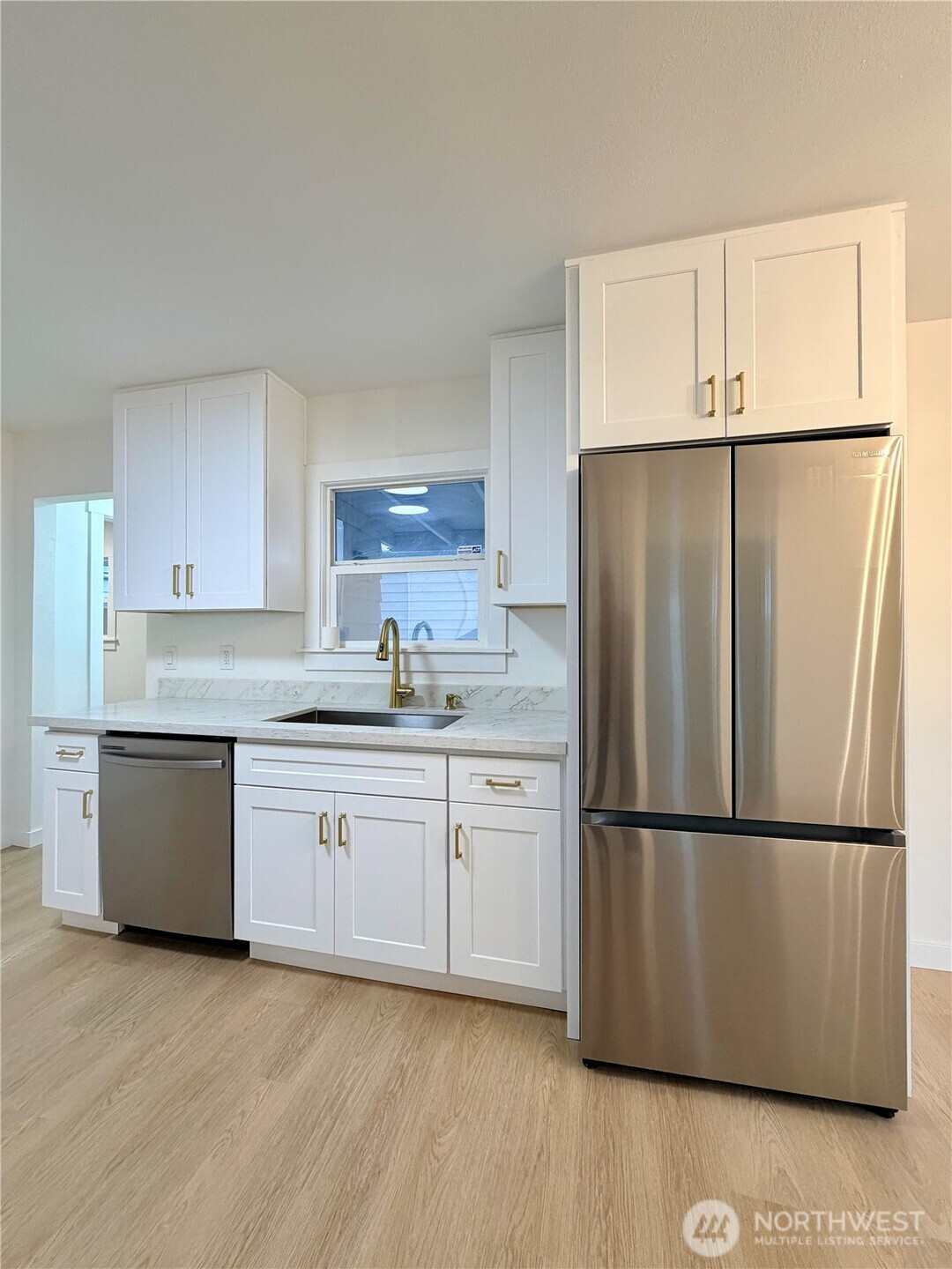 Step into comfort with this beautifully remodeled one-story rambler featuring 3 bedrooms and 2 bathrooms. Enjoy brand-new flooring, stylish new cabinets, and gleaming new kitchen appliances that elevate the heart of the home. The spacious layout offers effortless single-level living, while the oversized 2-car garage provides ample room for vehicles, storage, or projects. Fresh, updated, and move-in ready—this is the perfect place to call home!