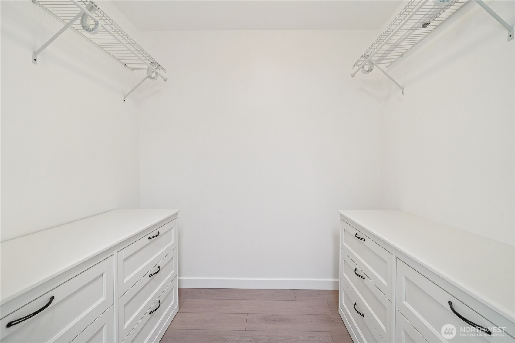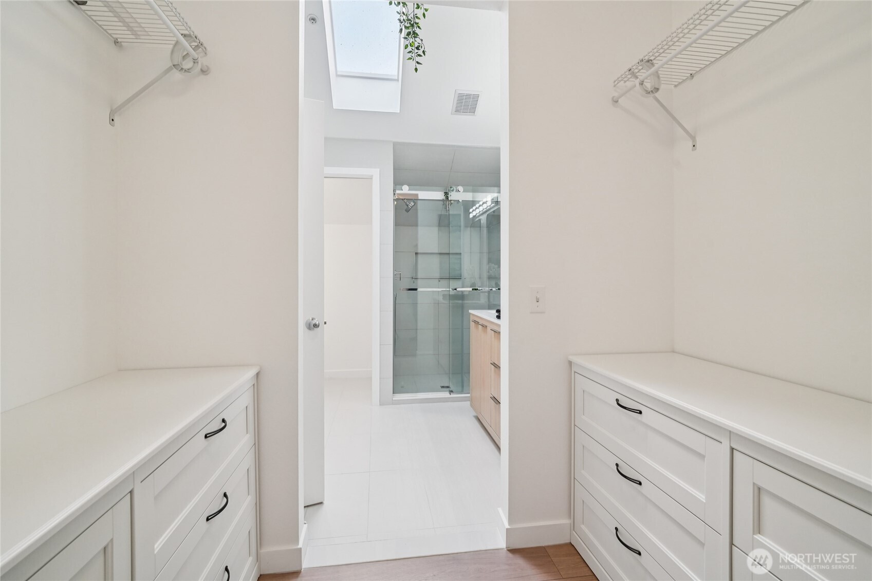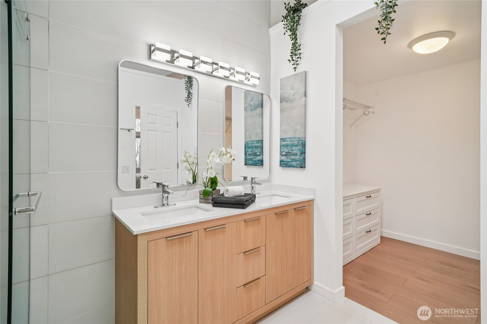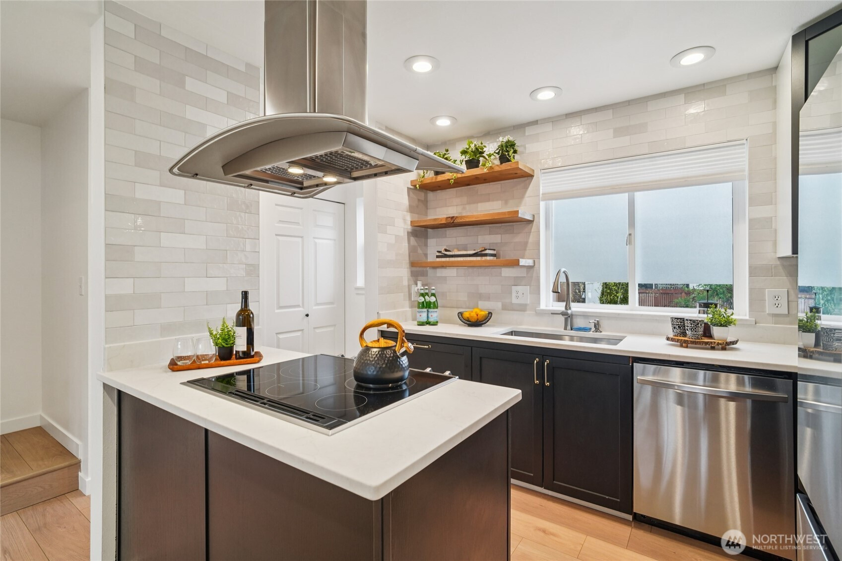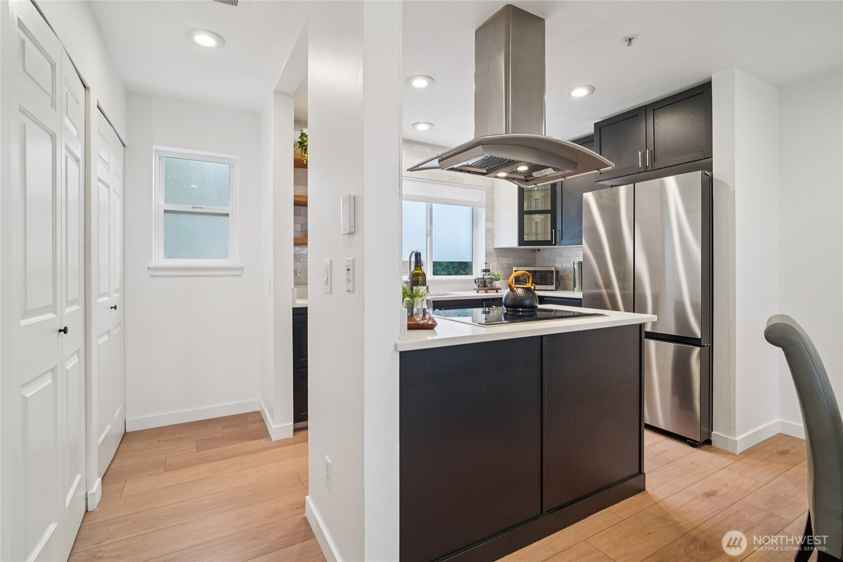 Extensively remodeled 2 Bed/ 2 Bath townhome tucked away in a boutique gated community centrally located in the desirable Madison Valley neighborhood. Entry leads to the first level, which has one bedroom (or home office) with French doors opening to the front patio as well as a full bath down the hall. Stairs lead up to the primary living space, which features a desirable open floor plan, soaring ceilings, and tons of natural light. Completely updated kitchen with modern finishes including quartz counters, sleek black cabinets, subway tile backsplash, floating shelves and new stainless steel appliances. A sizable pantry plus a laundry closet with a new washer & dryer flank the kitchen. Kitchen opens to the lofted dining area, which overlooks the spacious and bright living room. Entire top floor boasts a huge primary suite with vaulted ceilings, a large walk-in closet, and a completely remodeled en-suite bath. Wake up to the beautiful sunrise and easterly views of the Cascades, Mt. Rainier, and Lake WA. Additional updates include luxury vinyl flooring, fresh interior paint, new baseboard heaters plus smart thermostats throughout. Covered balcony off the living room is a great space for a BBQ or outdoor seating. A one car attached garage with EV charging provides secure parking and additional storage space. No HOA Dues or rental restrictions. Outstanding location with easy access to shops, restaurants, parks and freeways!