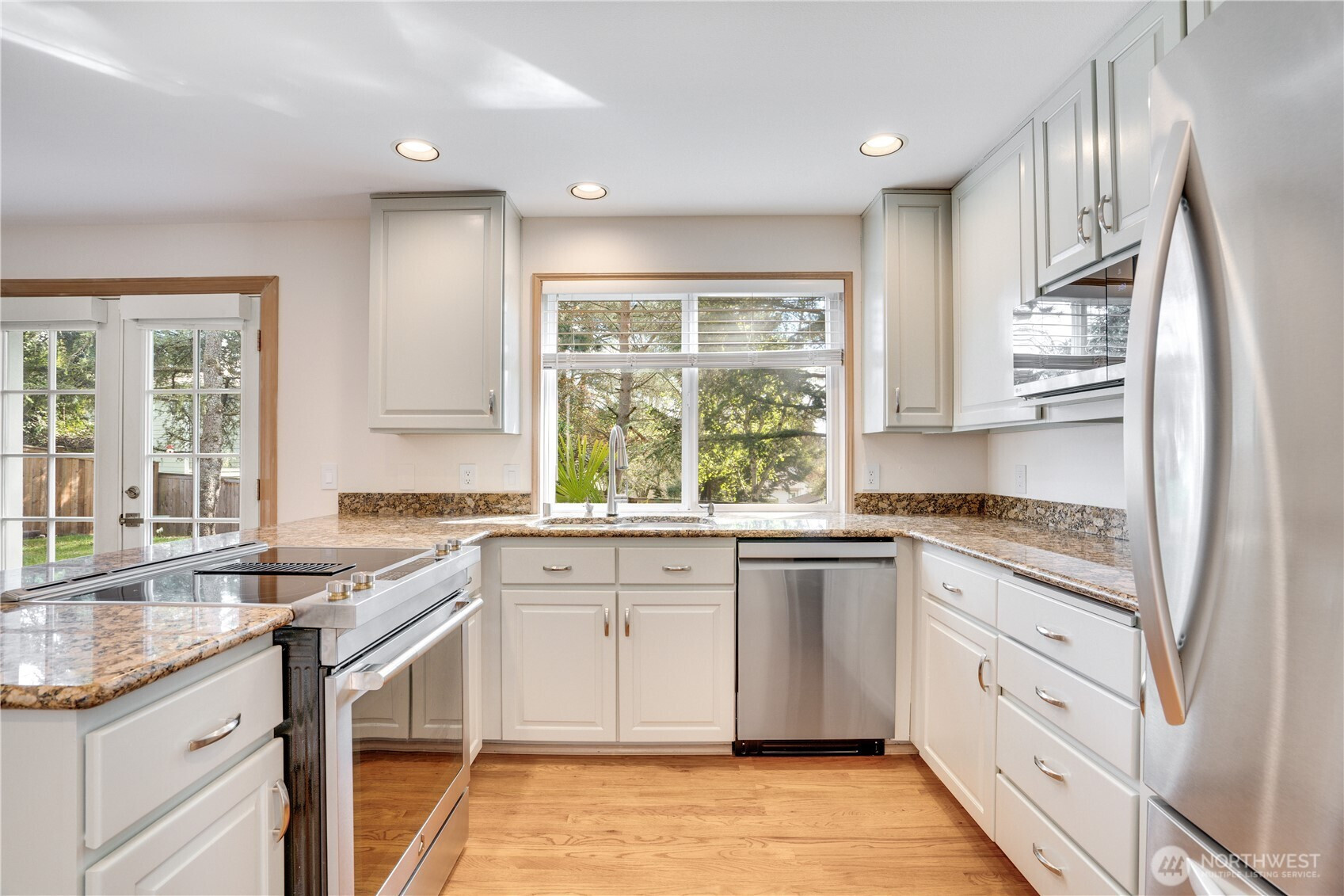 Beautifully maintained home in Willow Park. Light, bright and open. Hardwood entry. The living room features vaulted ceilings, skylights, large windows and new carpet. Great room layout. The kitchen is open to family room and nicely appointed, with hardwood floors, granite countertops, new stainless appliances and a generous pantry. The family room has a gas fireplace and French doors leading outside. Expansive primary suite with skylight, 5-piece private bath and two large walk-in closets. Air conditioning (A/C). New blinds throughout. You’ll love the outdoor space. The fully fenced backyard has a large stamped concrete patio for entertaining, mature landscaping and beautiful trees surrounding the property creating a sense of privacy. Three car attached garage, tandem on the left bay with a garage door at the rear for pulling through. This might be good for a boat or camper. Easy access to freeway for commuters. Convenient to schools and parks.