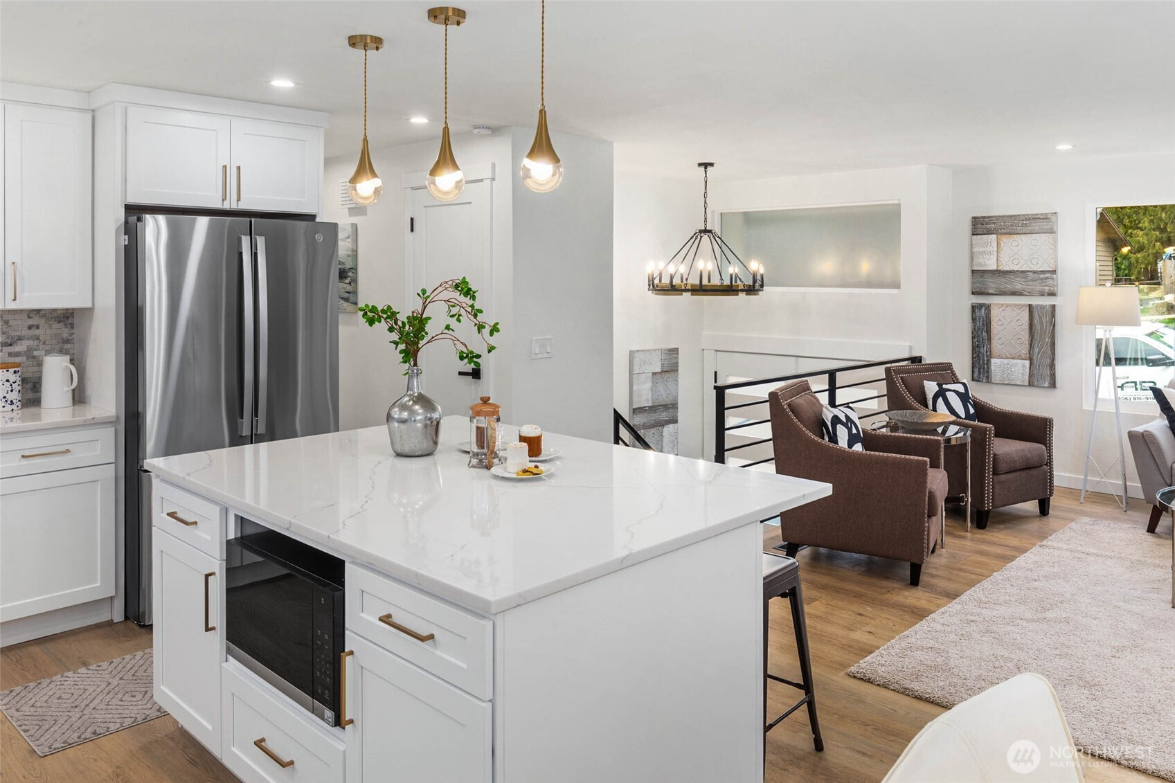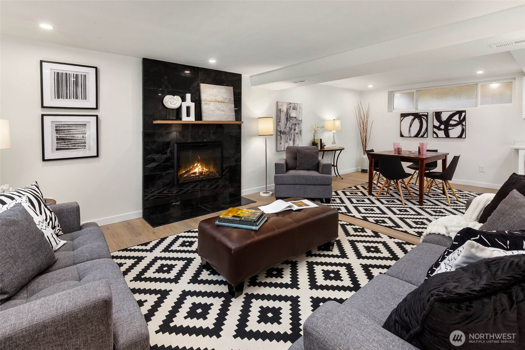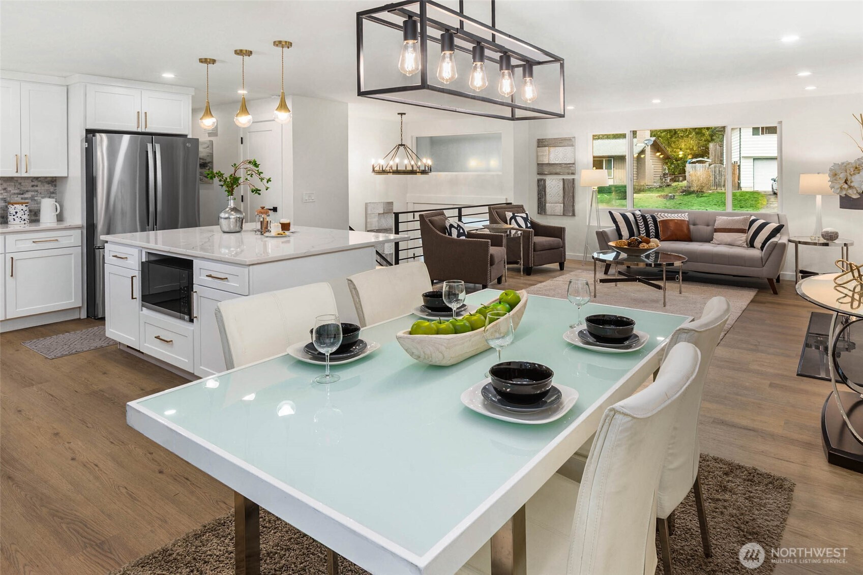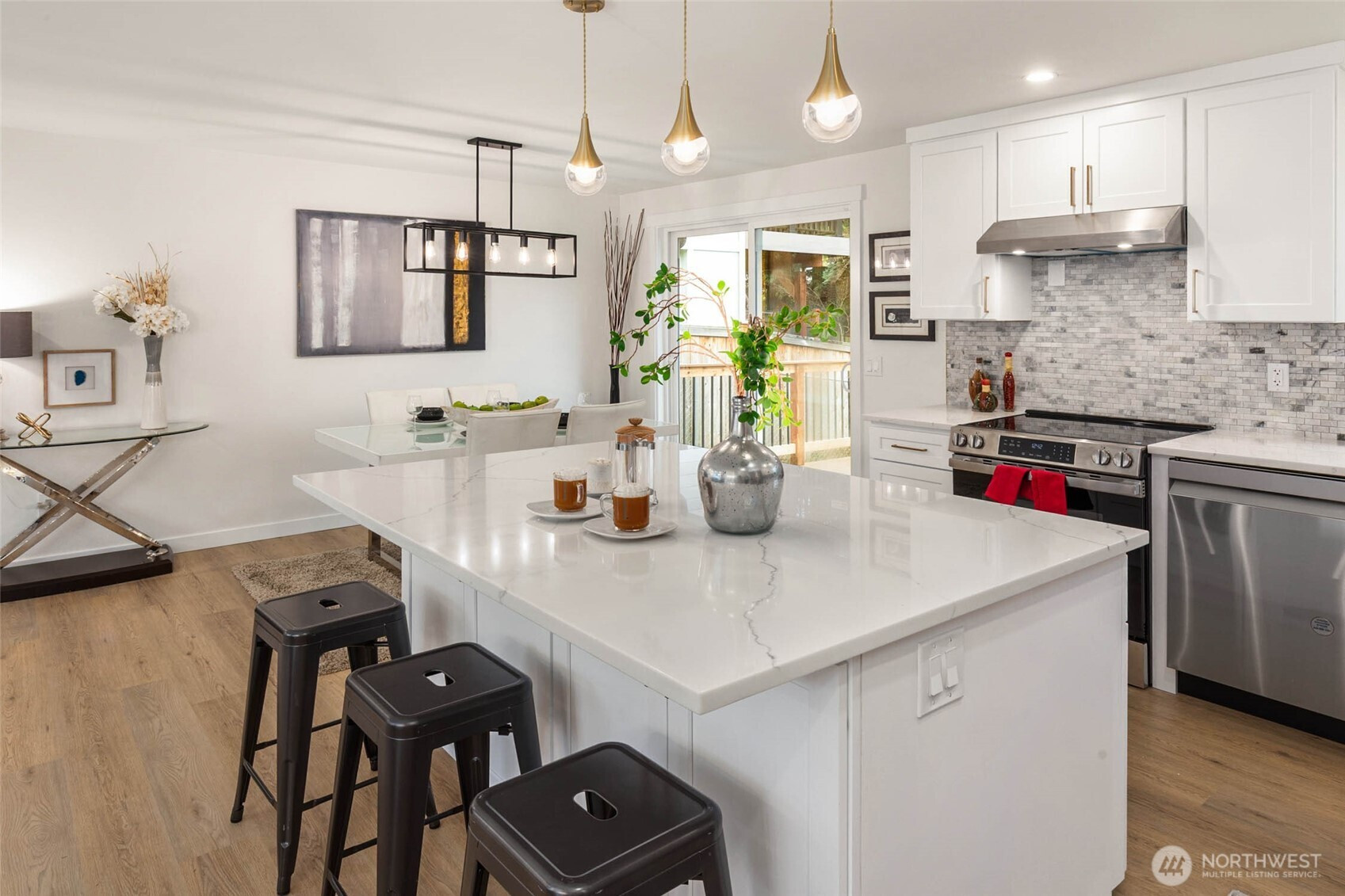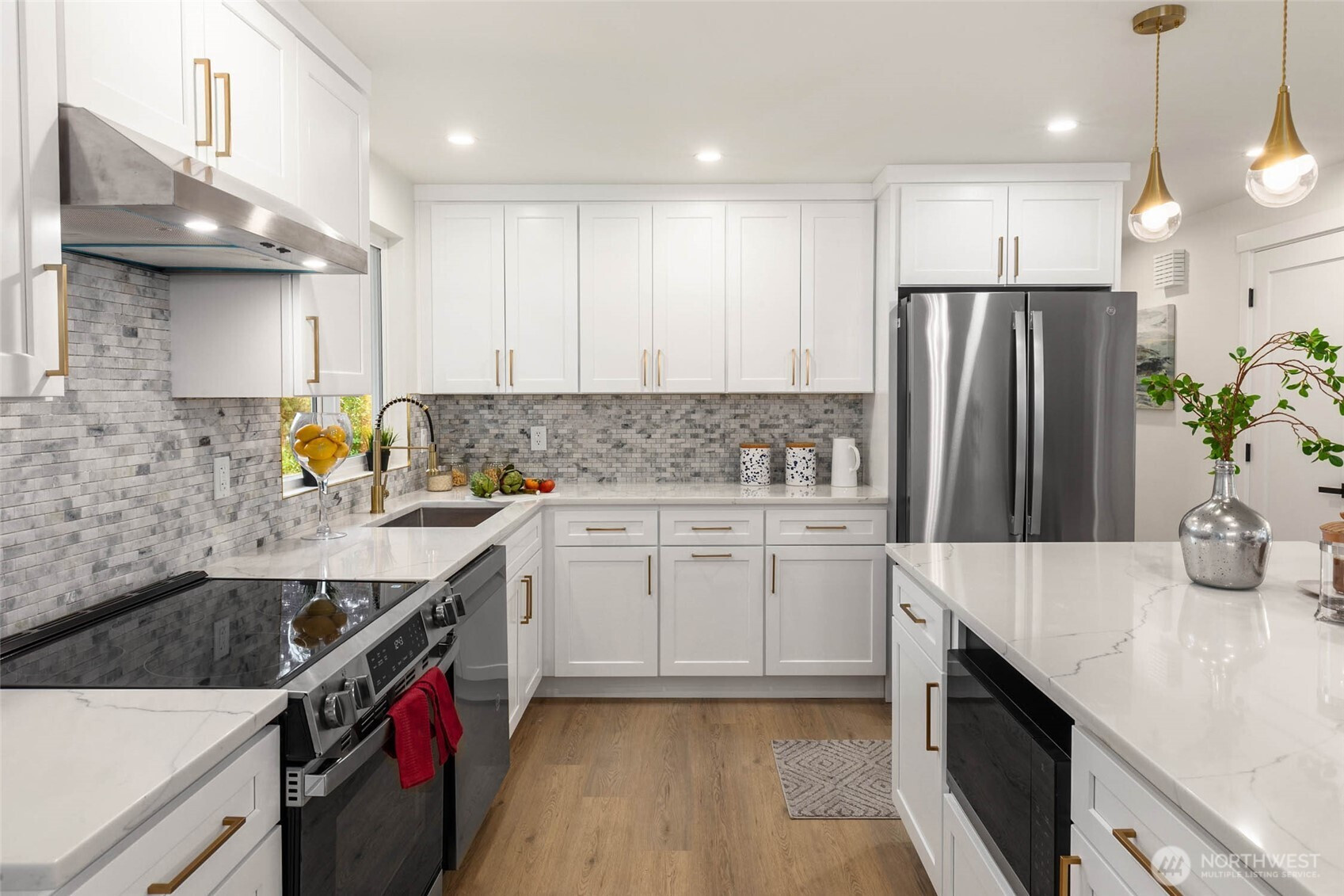 Stunning, fully remodeled 4-bedroom home on a generous 7,350 sq ft lot in one of the highly sought-after Fairwood neighborhoods! Nestled on a quiet cul-de-sac, this home combines modern style with everyday functionality, offering exceptional spaces for both living and entertaining. LVP flooring flows throughout, creating a clean, contemporary aesthetic designed for durability and lasting appeal. The light-filled main level features an inviting living area, a beautifully renovated kitchen, a gorgeous fireplace, and seamless flow ideal for gatherings or comfortable daily living. The expansive lower level offers a spacious second living area complete with a wet bar—perfect for entertaining, game nights, or multi-generational living. Enjoy peace of mind with a newer furnace. Step outside to a generously sized deck overlooking the large backyard—ideal for summer BBQs, relaxing evenings, and hosting guests. Everyday conveniences include a functional mudroom off the garage, extra storage, and a newly poured driveway. Ideally located near parks, golf, shopping, dining, and commuter routes, delivering the perfect blend of privacy, space, style, and prime location.