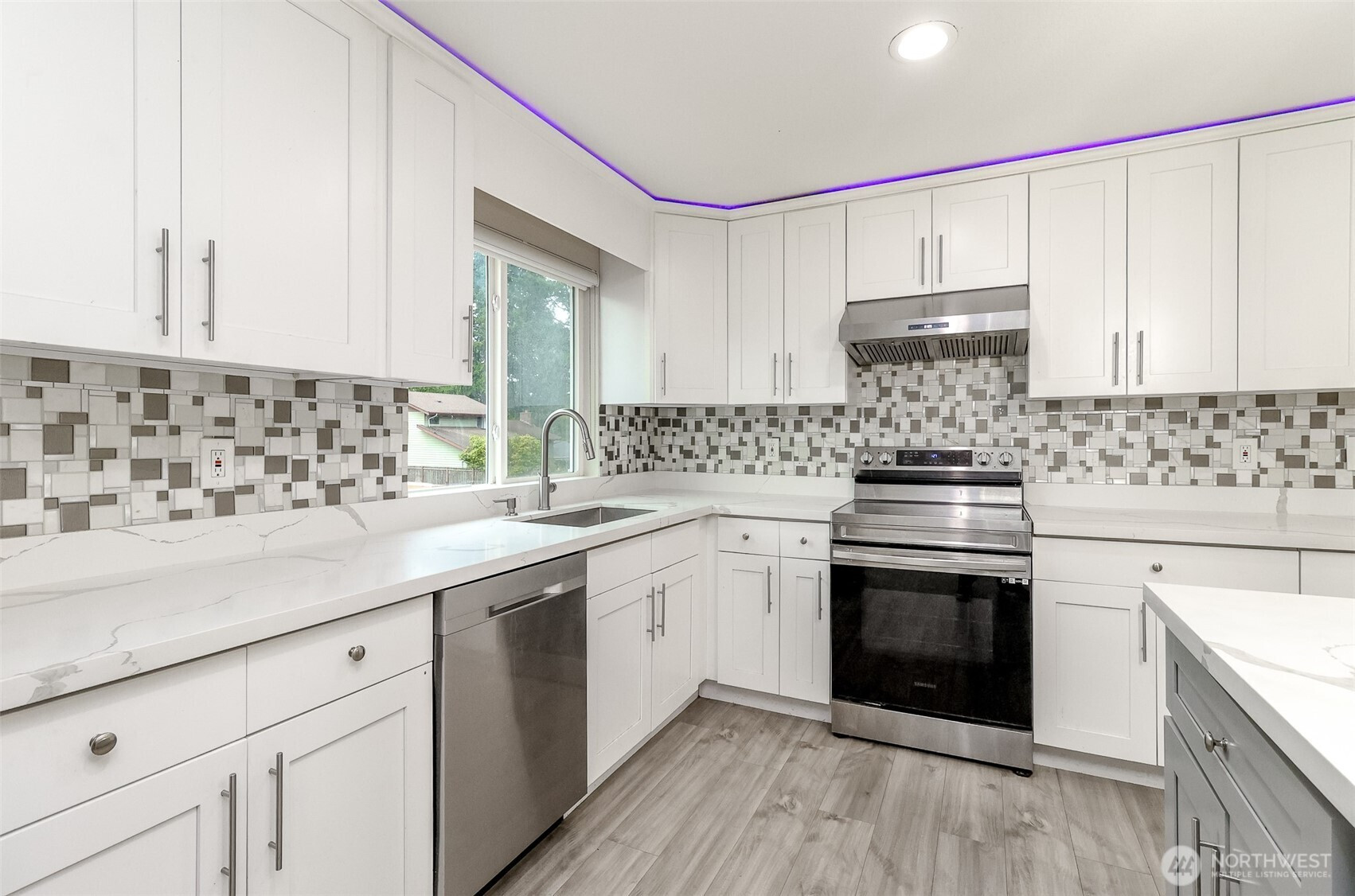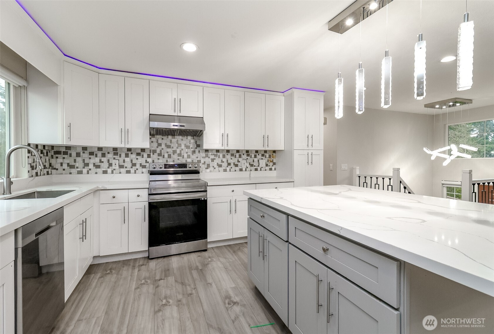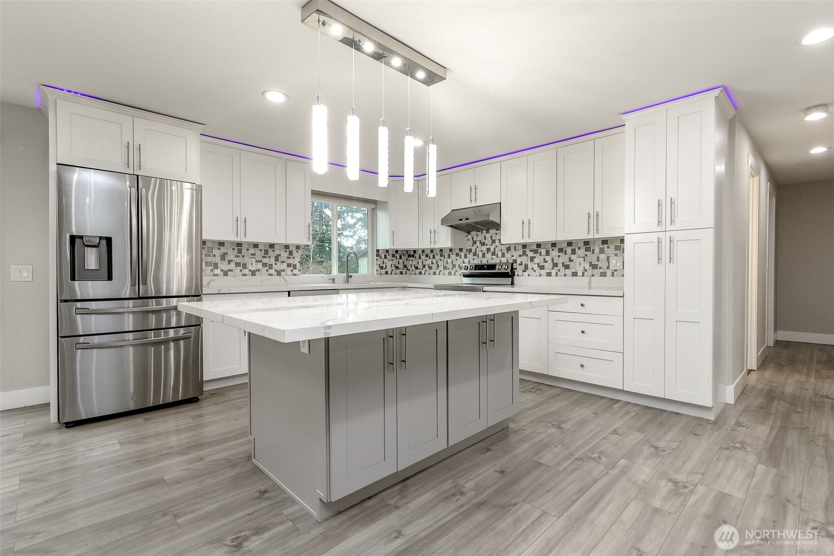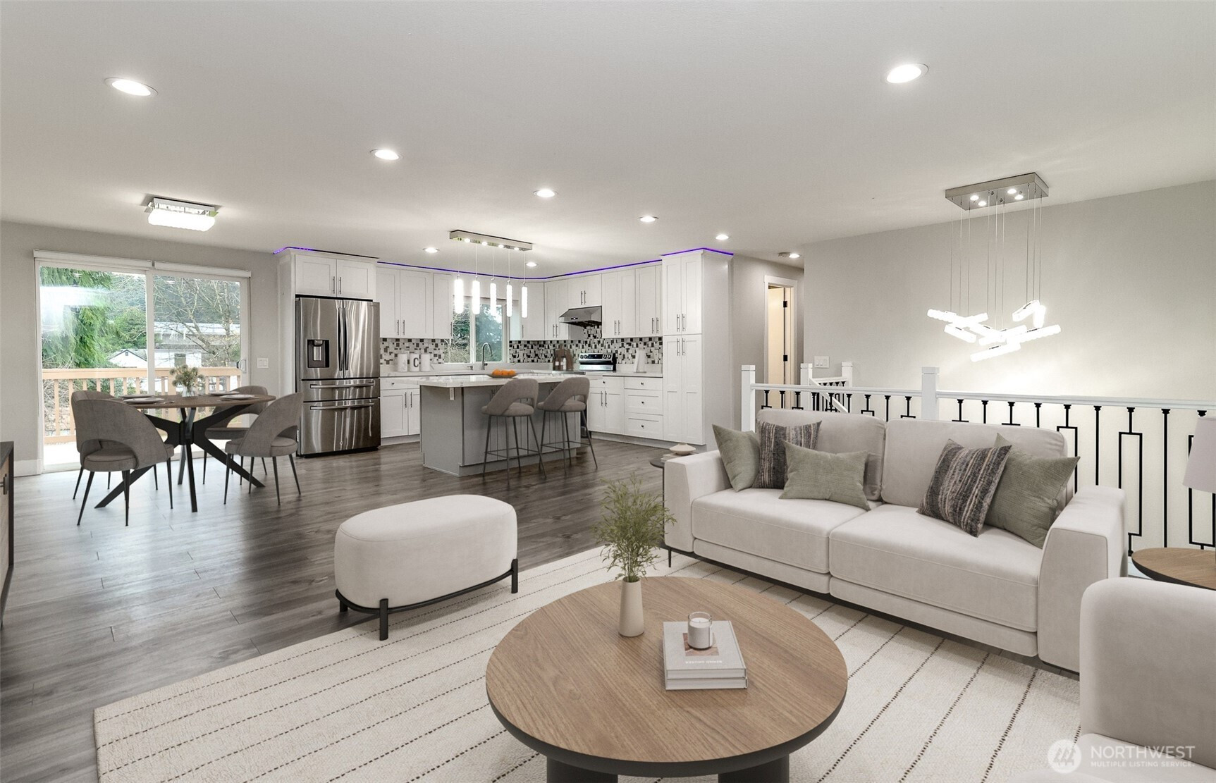 Newly remodeled about two years ago, this 5 bed + office w/ closet, 3 bath home encapsulates Prime Location. Inside, a spacious 2,280 sqft layout offers a spacious living and dining area and a gourmet kitchen. Contemporary flooring and updated fixtures make the home feel fresh, while the fenced backyard with outbuilding provides extra storage. The property includes a two-car garage and additional RV parking for convenience. It sits right off I-5 for easy regional access and is conveniently located near the NE 130th St/Pinehurst light-rail station. Move-in-ready and thoughtfully updated, this home blends contemporary comfort with quick access to transit, shopping, dining, Jackson Park golf course and the University of Washington.