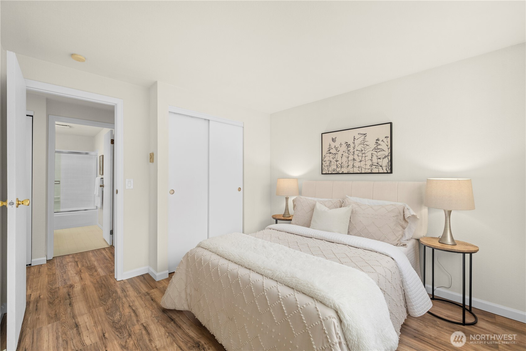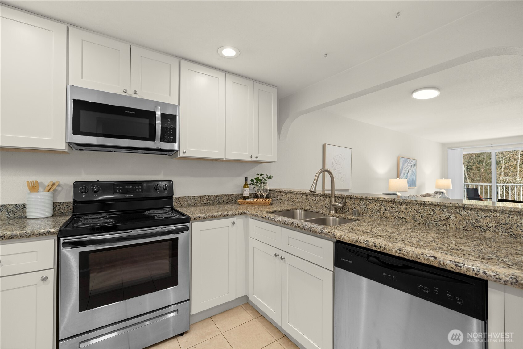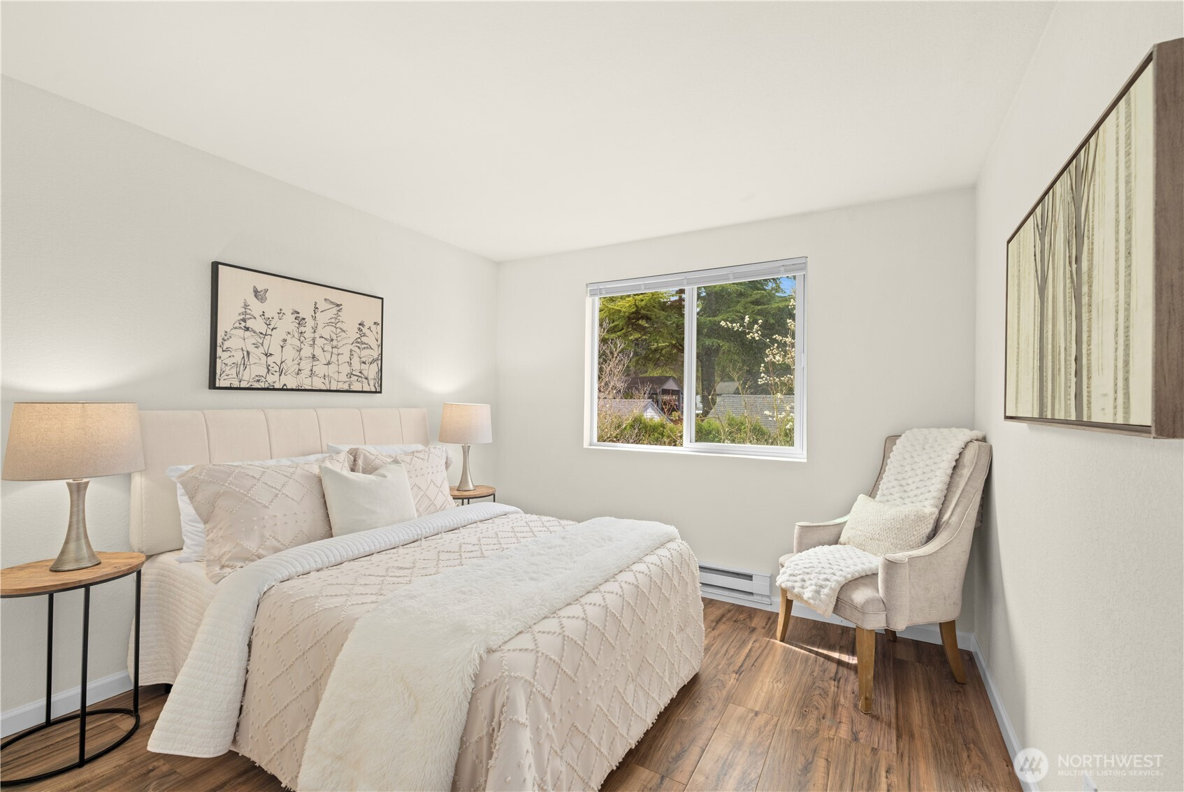 Top-floor two bedroom unit in the desirable Tenth Place condo complex. This central Bellevue location is right next to the bustling Spring District, thoughtfully updated with a clean, modern aesthetic and designed for easy, everyday living. Enjoy abundant amounts of natural light, durable LVP flooring, updated light fixtures, and a new water heater, making this home move-in ready. A spacious utility room with in-unit washer and dryer adds everyday convenience and extra storage. The private balcony overlooks a peaceful greenbelt, creating a quiet retreat in the middle of it all.With no rental cap, this property offers flexibility for both homeowners and investors. HOA dues include water, sewer, garbage, and community-only access to an outdoor swimming pool and sport court. Just minutes from downtown Bellevue, I-405 access, Overlake hospital, and major employers such as Meta within reach. With a range of dining, major shopping center, grocery options, and light rail access, this home offers exceptional convenience for commuters and those who value connectivity. Zoned for Bellevue Schools, this home combines location, lifestyle, and long-term value.