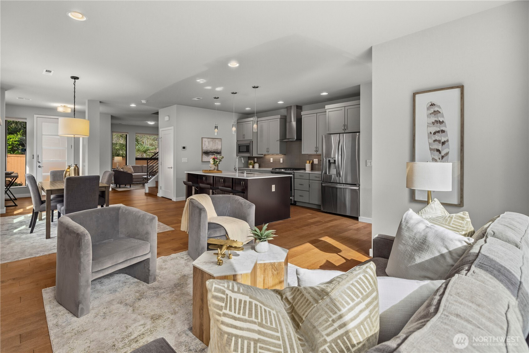 Fantastic townhome in the desirable Lakehouse community centrally located in the heart of Newcastle. Lives large like a single family home. Experience urban conveniences in a suburban area with this townhome that is steps away from the Newcastle Library, shops, grocery stores, restaurants, and scenic Lake Boren Park. Move in ready and offers the perfect blend of convenience and tranquility. Thoughtfully maintained featuring an open-concept floor plan with modern finishes, tall ceilings, engineered hardwood floors both upstairs and the main level, quartz countertops, stainless steel appliances, full-size side-by-side washer and dryer, plush carpeting, tankless water heater, and air conditioning for year-round comfort. Enjoy the privacy of a desirable end unit plus a spacious detached two-car garage separated by your own private backyard ideal for gardening and bbq'ing. Well-run HOA, and zoned to award winning Issaquah Schools. A rare resale opportunity to own a townhome in this community.