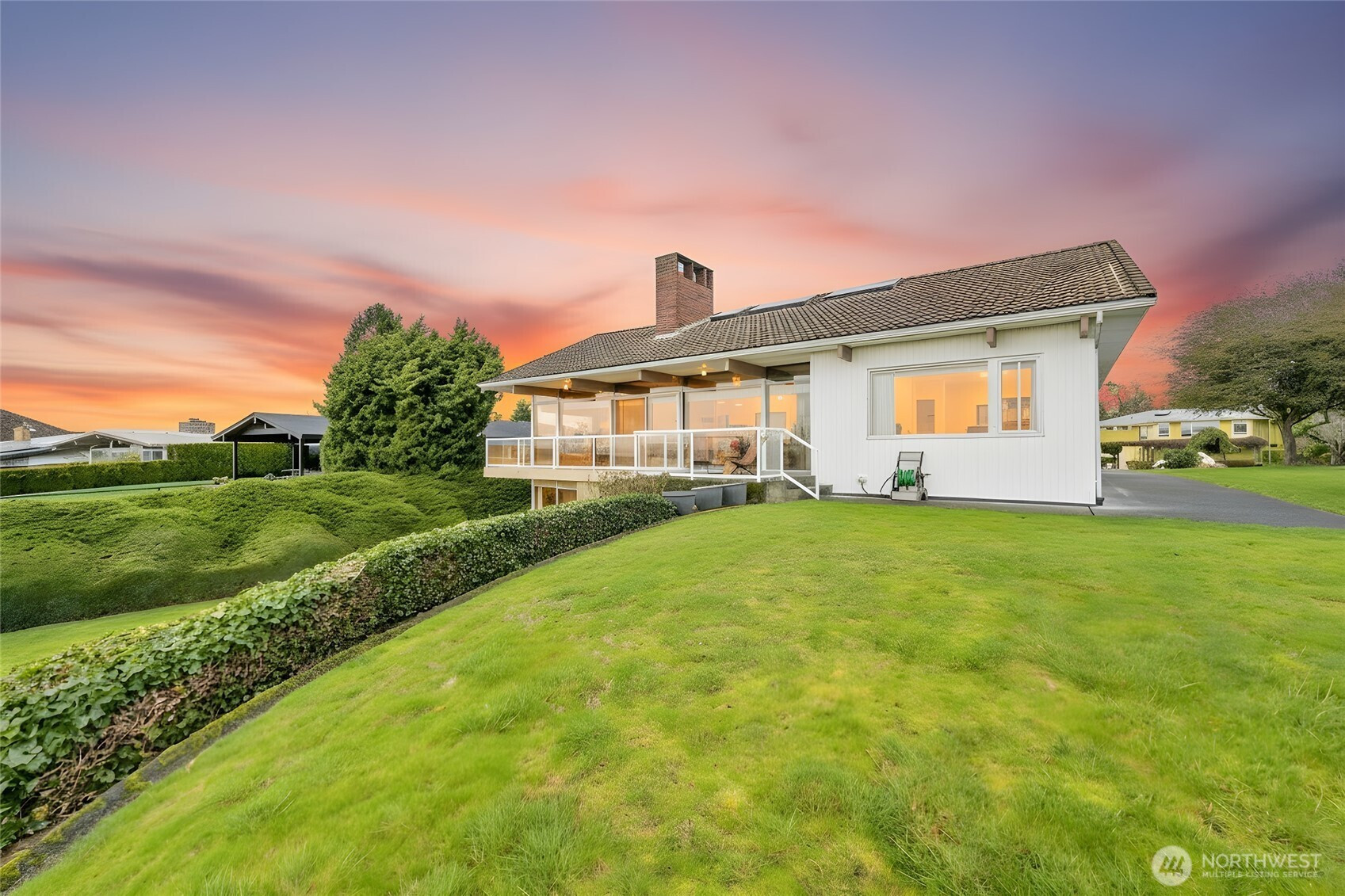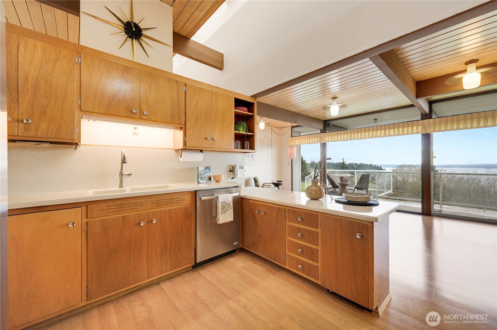 Set along coveted Shorecrest Drive overlooking Puget Sound, this iconic 1958 Pacific Northwest modern captures sweeping water & mountain vistas, including breathtaking sunsets. Thoughtfully preserved for nearly seven decades, the home maintains its original architectural integrity while radiating the timeless elegance & sophistication of Northwest design. Sits on expansive 17,000+ sq ft lot, the residence welcomes you through a dramatic entry into open, light-filled living spaces. The living & dining rooms feature a dual fireplace & expansive views, flowing seamlessly to a deck that stretches the full length of the home—perfect for entertaining or serene living. Skylights illuminate the bright, airy kitchen & adjoining utility room, while the primary suite provides a tranquil retreat, 3 additional bedrooms & a full bath complete the main level. The lower level offers exceptional versatility, with soaring ceilings, two expansive entertainment areas anchored by a fireplace, 700 sq ft of storage, a full bathroom, & direct access to the patio—ideal for indoor-outdoor living & gatherings. A spacious 2-car garage completes the property, while a voluntary community club with private neighborhood beach access enhances the lifestyle possibilities. Visit the Shorewood on the Sound Community Club website. This is a rare opportunity to own a piece of Pacific Northwest architectural heritage while creating your own legacy in one of the region’s most inspiring settings.