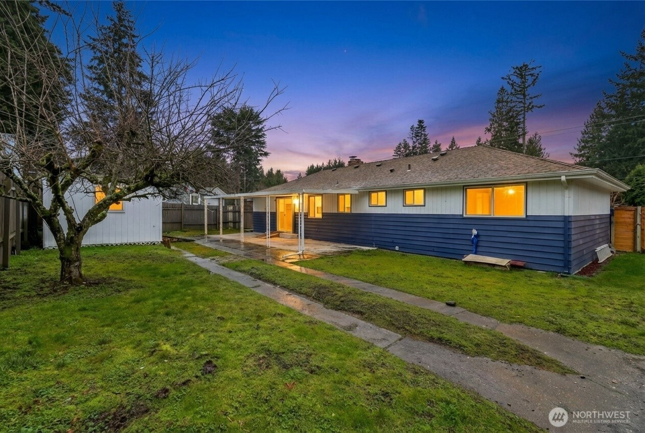 Welcome home to this 3-bedroom, 1.5-bath rambler situated on a spacious 7,500 sq ft corner lot. Enjoy a cozy living room featuring a wood-burning fireplace & hardwood floors, plus a separate family room that offers extra space to relax or entertain. The primary bedroom includes a private half bath. Step outside to a fully fenced backyard with a large covered patio, perfect for year-round gatherings. An outbuilding, gate access, and plenty of room for RV or boat parking add exceptional flexibility and storage options. Updates completed in 2017 include the roof, furnace, and water heater, plus newer garage door for peace of mind. This home is sewer connected. No HOA. Ideally located with close proximity to Hwy 509, parks, transit & amenities. Easy access to Downtown Seattle & Seatac Airport.