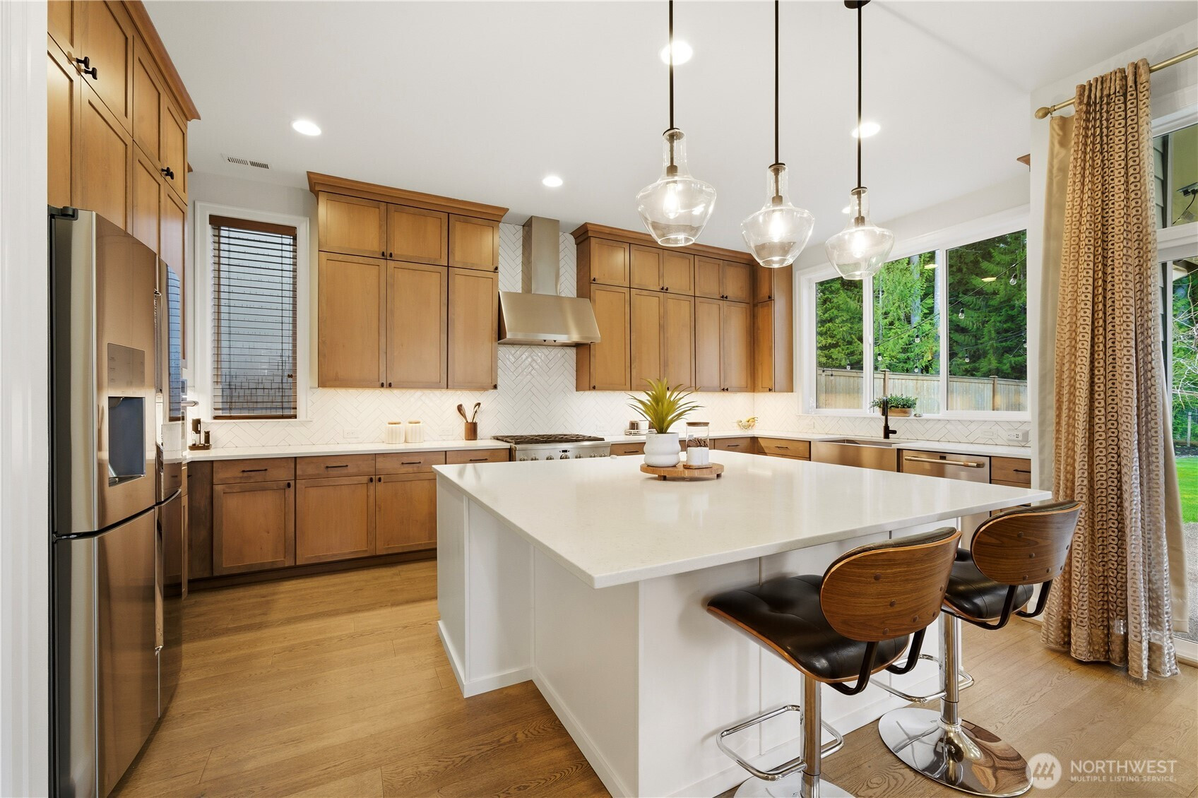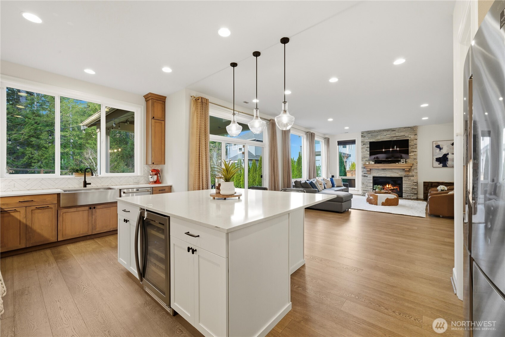 Welcome to this like-new Murray Franklyn craftsman home featuring many upgrades and ideally situated on a quiet cul-de-sac in the highly desirable Sammamish Plateau. The open-concept design showcases soaring ceilings and abundant natural light throughout. The gourmet chef’s kitchen features an oversized island, premium appliances, and custom finishes—perfect for both everyday living and entertaining. A main level Bedroom/office with ensuite three-quarter bathroom offers comfort and flexibility. The upper level expansive primary suite includes a spa-inspired five-piece bath including a freestanding soaking tub and dual custom walk-in closets. The upper level features three additional bedrooms, full bathroom, bonus room, and a spacious laundry room. Amazing garden retreat adjacent to a peaceful protected natural preserve with covered patio, fire pit, fully fenced yard, and professionally landscaped. Ideally located near top-rated Lake Washington School District schools, parks, and shopping.