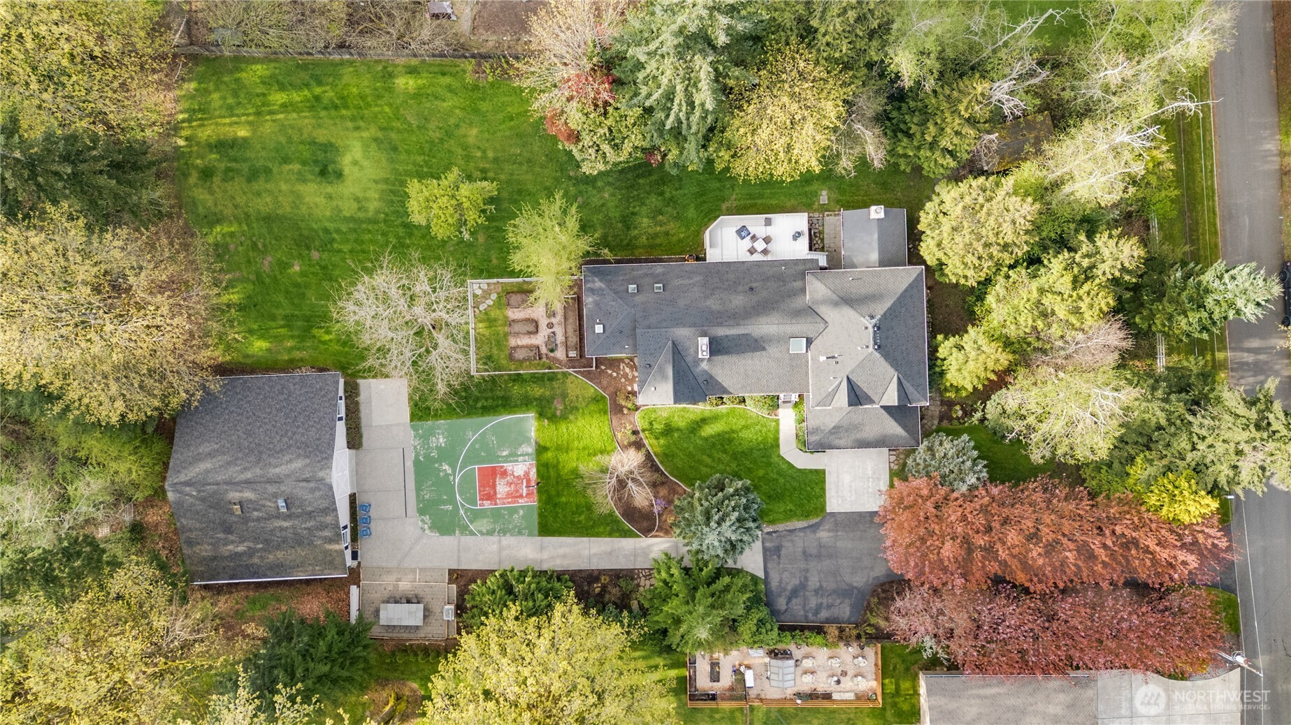 One-of-a-Kind Gated Estate with Dream Shop, Dual Primary Suites & Resort-Style Living on 1.22 Acres. Ideal for multi-generational living, car enthusiasts, and those seeking space both inside and out. Formal living and dining rooms complement a spacious family room. The chef’s kitchen is equipped with premium appliances including Wolf, Sub-Zero, and JennAir, paired with leathered granite surfaces and access to the expansive deck. A standout feature is the climate-controlled 1,400-bottle wine cellar with tasting area—an entertainer’s dream. The home offers two luxurious primary suites. The main suite features a gas fireplace, heated bathroom floors, triple shower system, lighted mirror, and a 20’ x 7’ walk-in closet with windows, skylight, custom built-ins, and a safe. The second primary suite includes a jetted tub, heated floors, and a generous walk-in closet. Outdoor amenities elevate this property to a true lifestyle estate. Enjoy year-round gatherings on the covered porch with ceiling heaters and a stone fireplace. While the fully fenced garden, half-court basketball court and 200 SF finished studio add versatility for recreation, work, or creative space. For auto, moto, or hobby enthusiasts, the ~2,000 SF heated and insulated shop/garage/office is a rare find—featuring metallic epoxy floors, 6-car capacity, optional 8,000 lb 4-post lift, custom bar with 3-tap beer system, extra-wide barn doors, a 200 SF office, full alarm and surveillance system, and a 550 SF home gym.