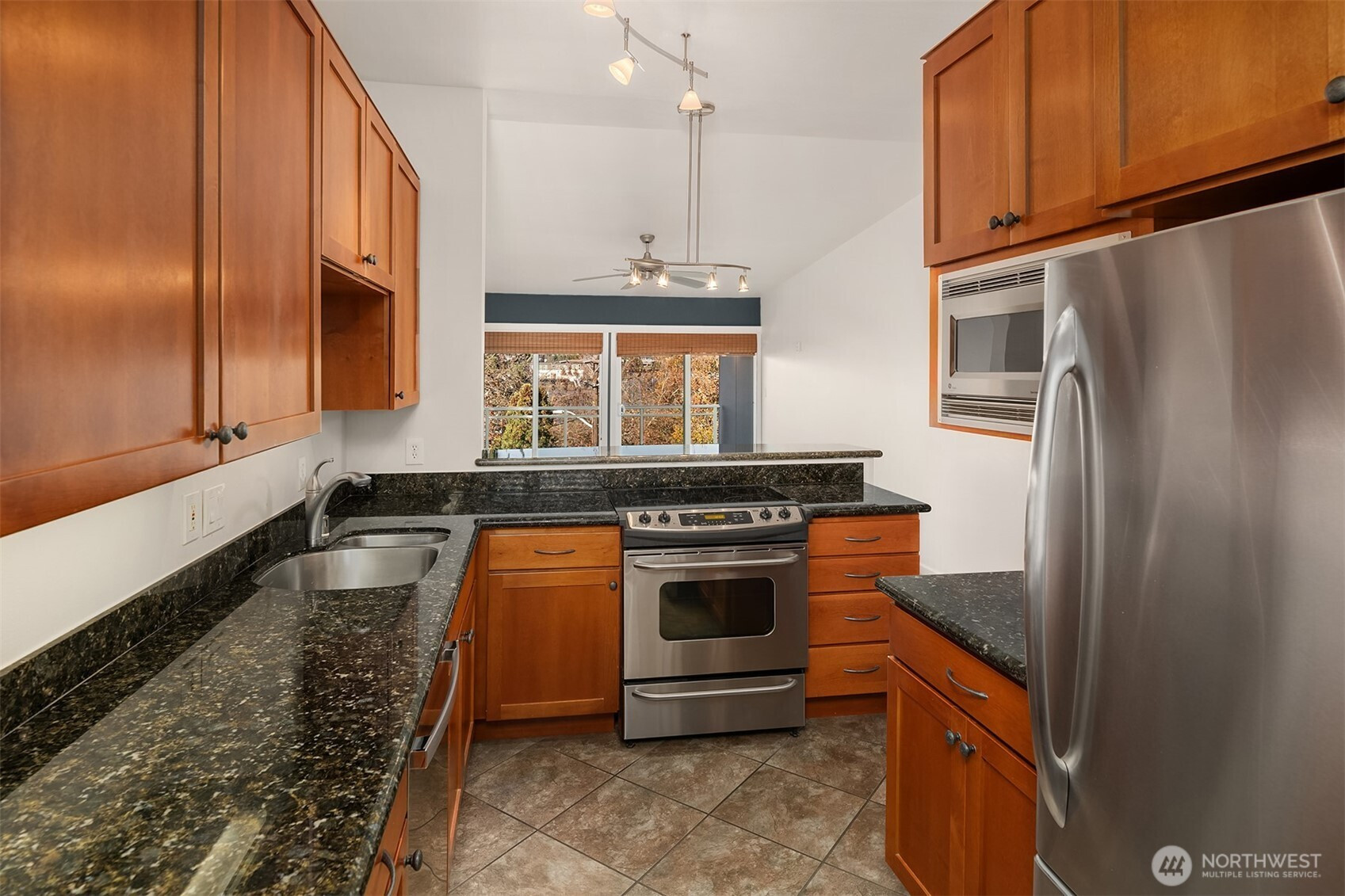 LOCATION, LOCATION on this "LIKE NEW" top floor home with vaulted ceilings, all new paint, carpets, windows, deck rails, plumbing and exterior. This home boasts 3 PARKING SPACES. 1 outdoor, 2 indoor secure garage spaces with room for bikes, scooter/MC plus an additional oversized storage unit approx 11'x9'. Ability to add EV station to exterior parking space with HOA approval. Walk to your favorite dining and shopping along Main St in Old Bellevue or stroll the city park or the Meydenbauer waterfront park just a couple blocks away. Feeling energized, Bellevue Mall and Lincoln Square are just a few more blocks along Bellevue Way. No rental cap after primary residence for 2 years. Special assessment paid by seller at closing.