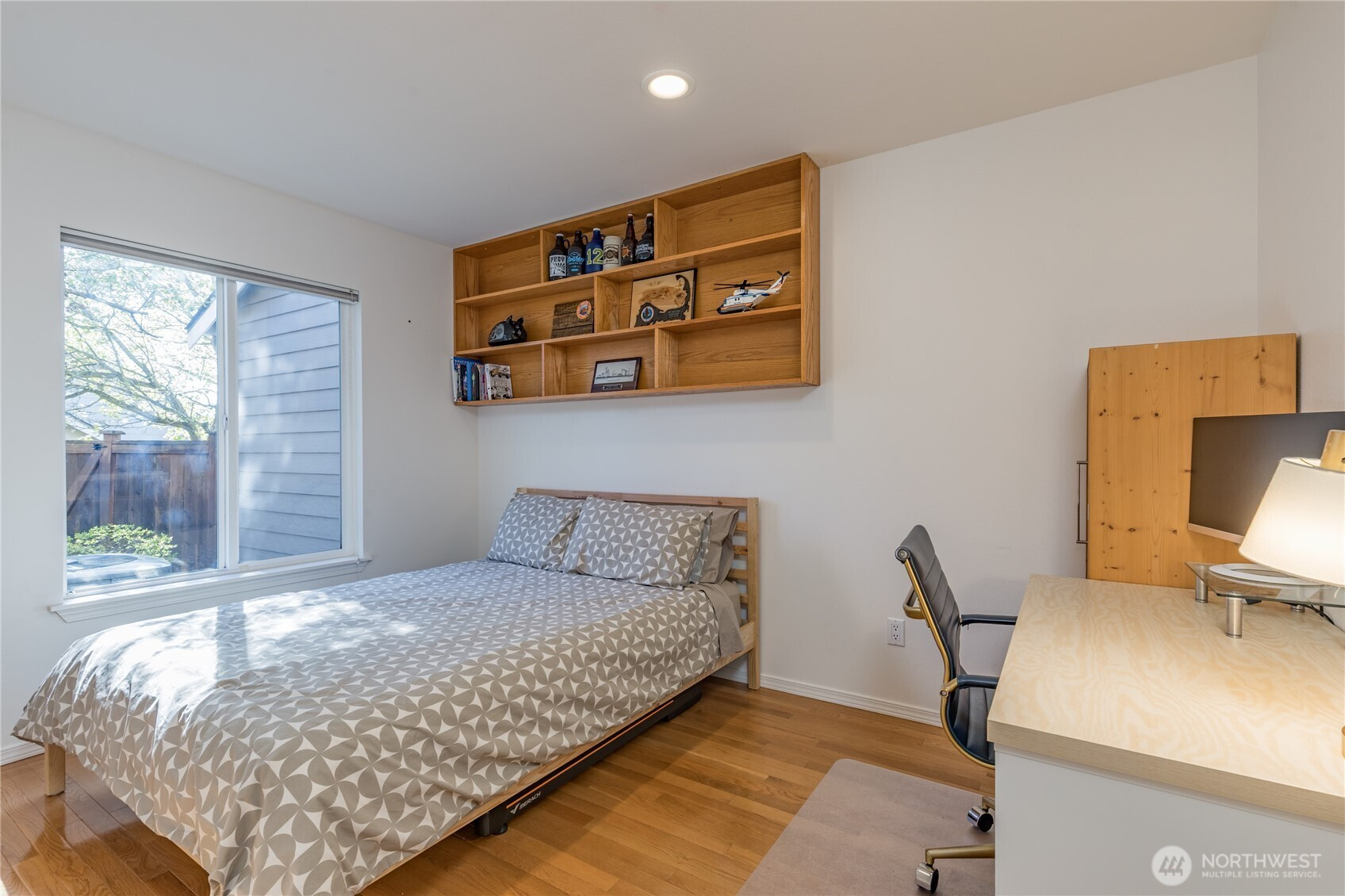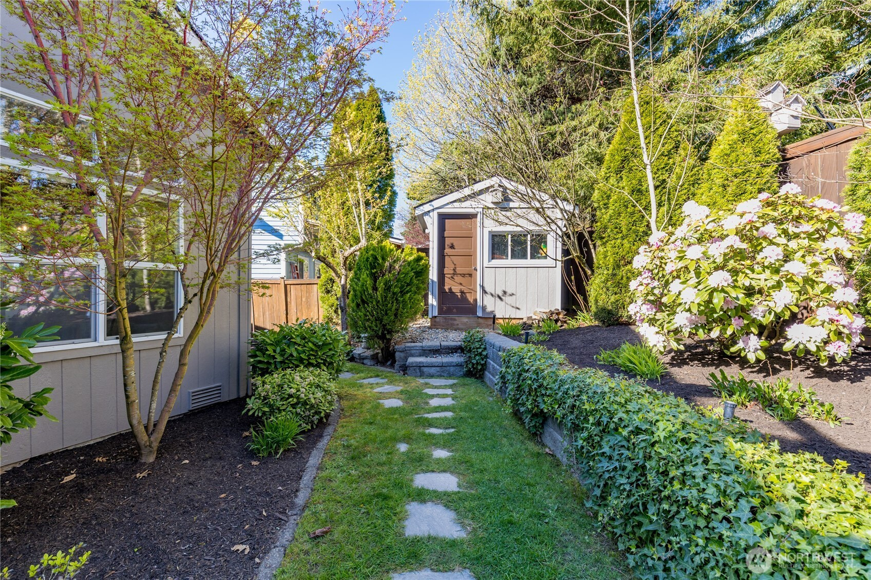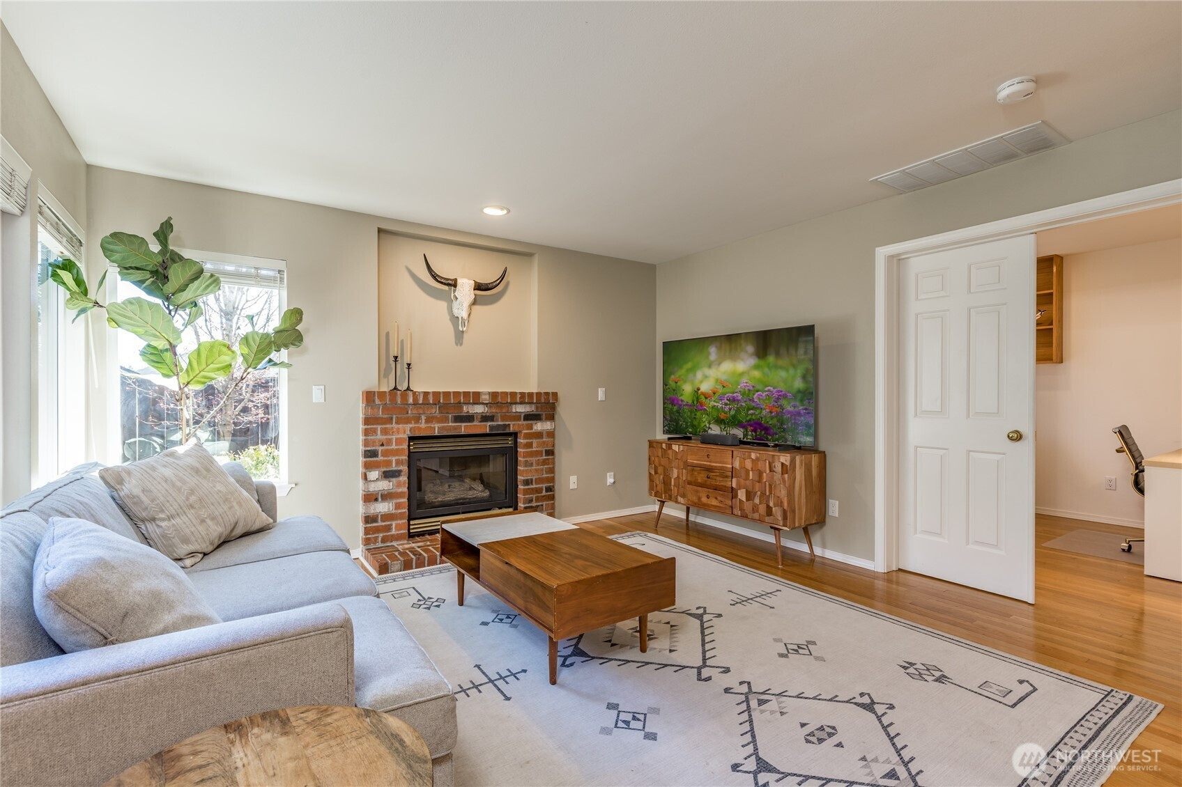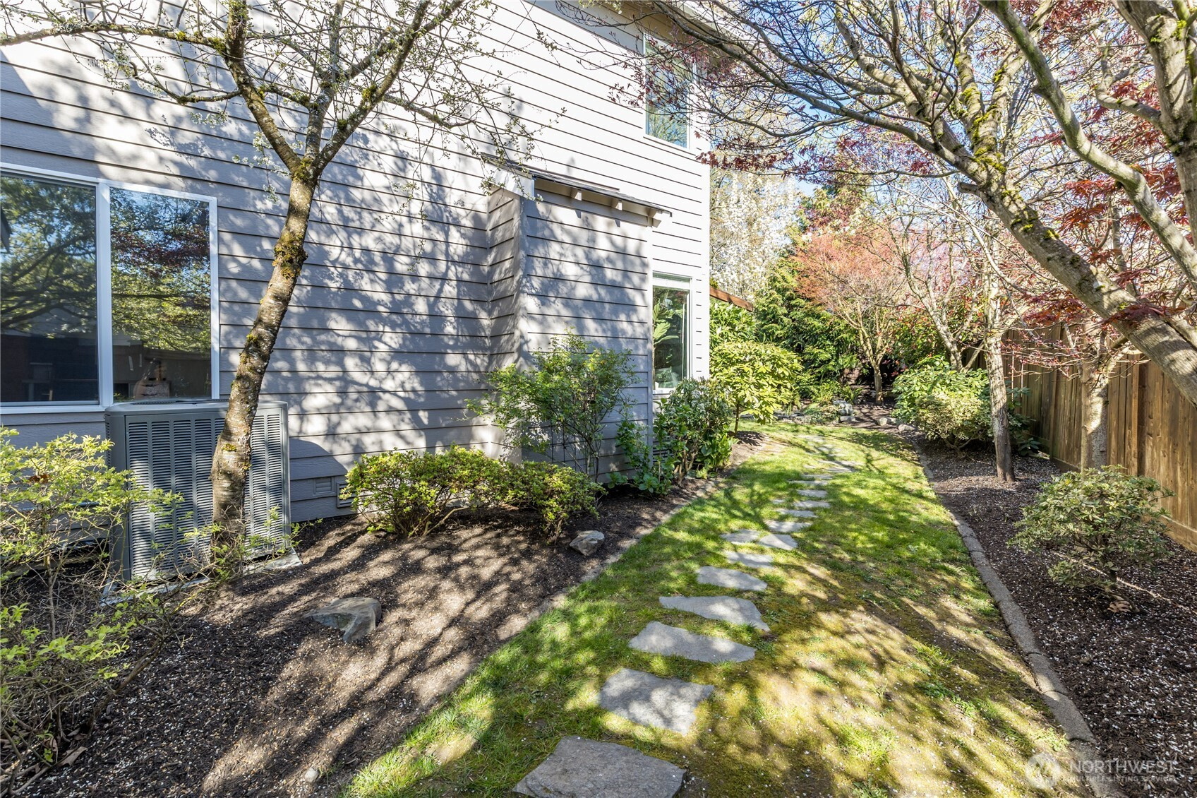 Experience the perfect blend of privacy and convenience in this meticulously maintained Willow Park retreat. Tucked away at the end of a quiet cul-de-sac with an expansive driveway for added seclusion, this home offers a rare sense of peace just minutes from major freeways, shopping, and top-rated schools. The grand entry makes a stunning first impression with soaring vaulted ceilings and an abundance of natural light. The main level features gleaming hardwoods and a highly functional layout, including a bright kitchen with a center island and pantry that flows into a cozy family room with a gas fireplace. A versatile main-floor den with double doors serves as an ideal home office or guest space. Upstairs, the spacious primary suite features a five-piece bath and walk-in closet, while additional bedrooms offer pleasant glimpses of the Olympic Mountains. For added convenience, the laundry room is also located on the upper level. Outdoor living is a highlight, featuring a large covered patio for year-round enjoyment, a serene garden pond, and raised beds in the sunny southwest corner. Significant "big-ticket" updates provide total peace of mind: New 50-year roof (2022), high-efficiency furnace (2022), new A/C (2023), and fresh exterior paint (2023). Located just a short stroll from community parks and Willow Crest Elementary, this home is truly move-in ready.