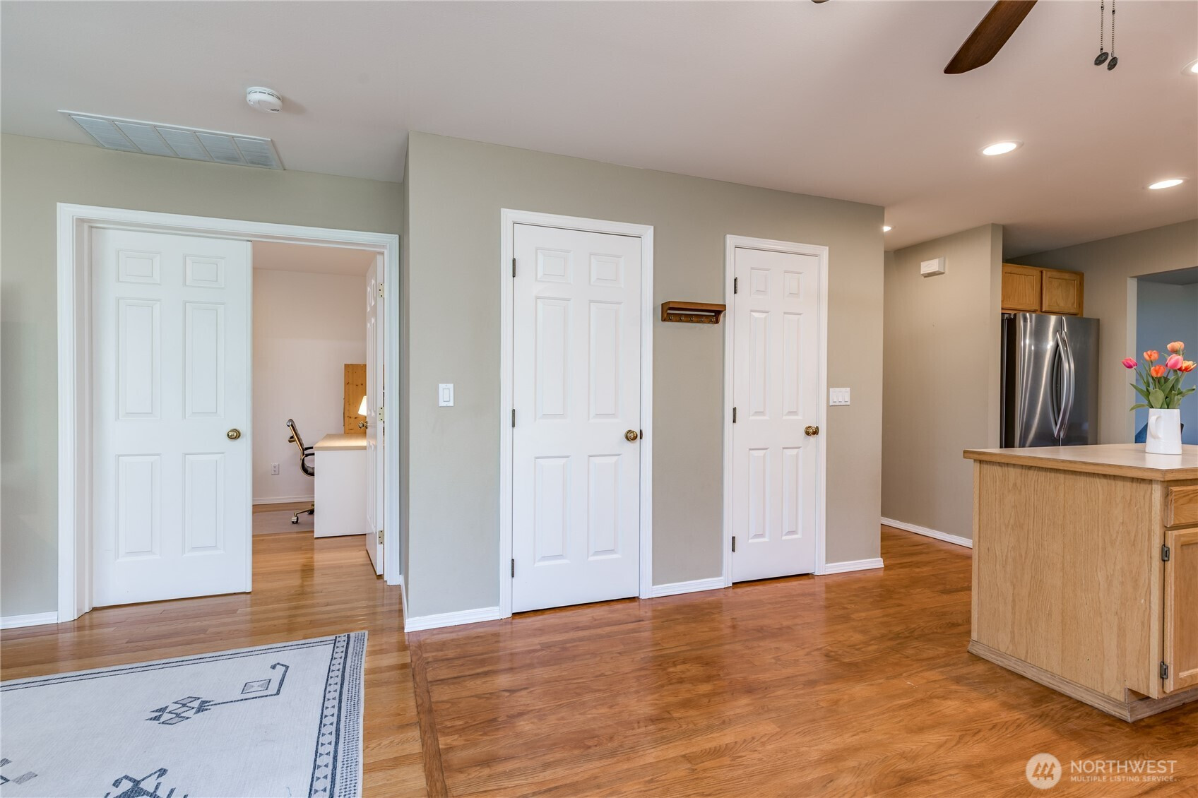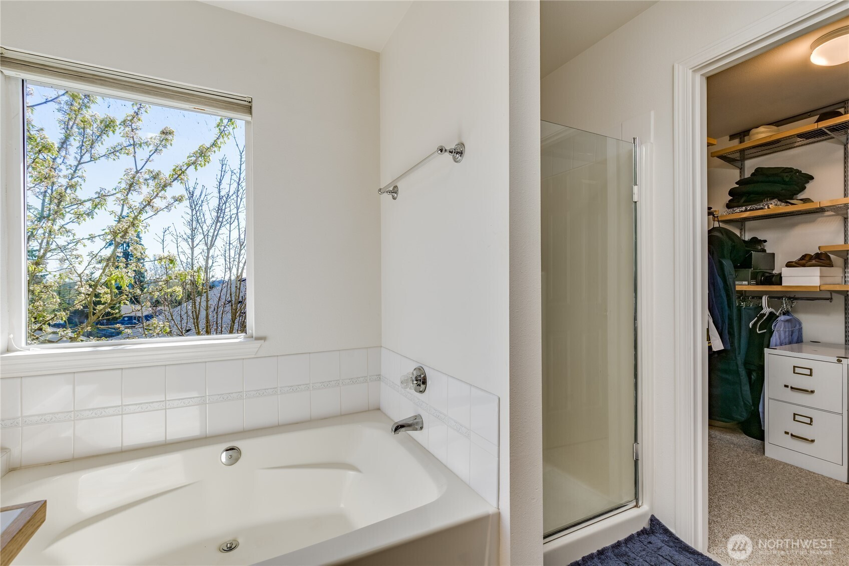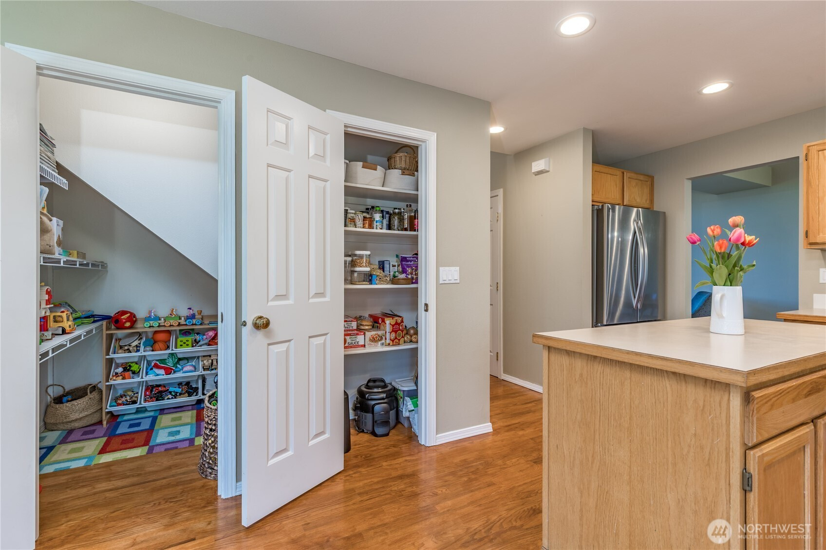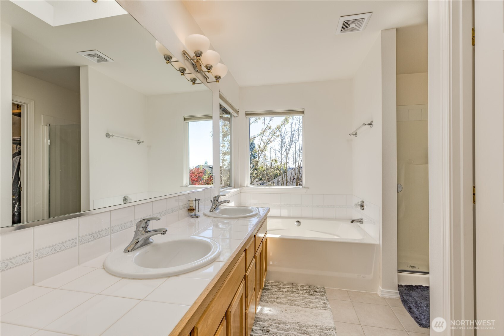 Experience the perfect blend of privacy and convenience in this meticulously maintained Willow Park retreat. Tucked away at the end of a quiet cul-de-sac with an expansive driveway for added seclusion, this home offers a rare sense of peace just minutes from major freeways, shopping, and top-rated schools. The grand entry makes a stunning first impression with soaring vaulted ceilings and an abundance of natural light. The main level features gleaming hardwoods and a highly functional layout, including a bright kitchen with a center island and pantry that flows into a cozy family room with a gas fireplace. A versatile main-floor den with double doors serves as an ideal home office or guest space. Upstairs, the spacious primary suite features a five-piece bath and walk-in closet, while additional bedrooms offer pleasant glimpses of the Olympic Mountains. For added convenience, the laundry room is also located on the upper level. Outdoor living is a highlight, featuring a large covered patio for year-round enjoyment, a serene garden pond, and raised beds in the sunny southwest corner. Significant "big-ticket" updates provide total peace of mind: New 50-year roof (2022), high-efficiency furnace (2022), new A/C (2023), and fresh exterior paint (2023). Located just a short stroll from community parks and Willow Crest Elementary, this home is truly move-in ready.