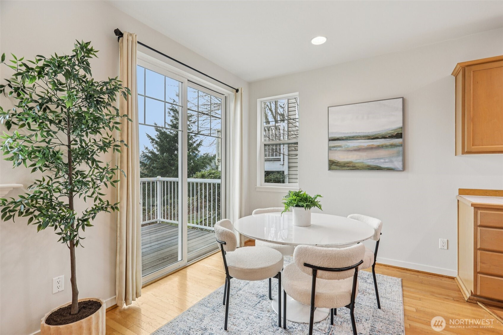 Wonderful corner unit with Mt. Rainier views occupies the central location in boutique 24-unit complex. This light-filled home lives like a single family and has been updated with fresh paint and carpet upstairs. The main floor is open concept with hardwoods throughout, a powder room, gas fireplace, high ceiling, and a private deck. Upstairs, the vaulted primary suite offers Mt. Rainier views, a walk-in closet, en-suite spa bathroom, and a bonus office/sitting area. Two more bedrooms, bathroom and a full-size laundry complete the upper floor. Attached 2-car garage complete the package. Minutes from downtown, wine country, and commuter routes. Low HOA dues, strong financials, no rental cap, and small pet-friendly—don’t miss it!