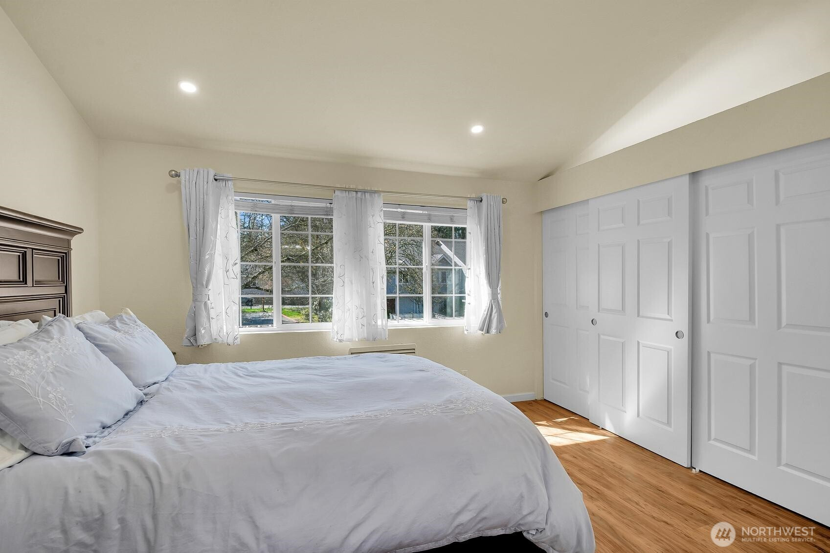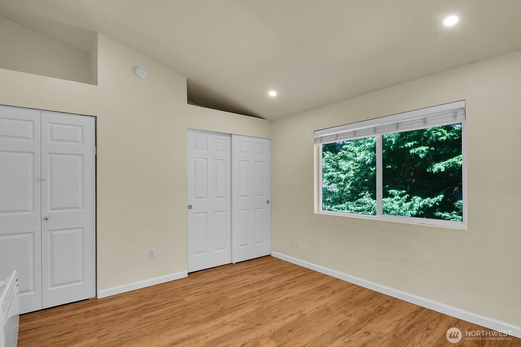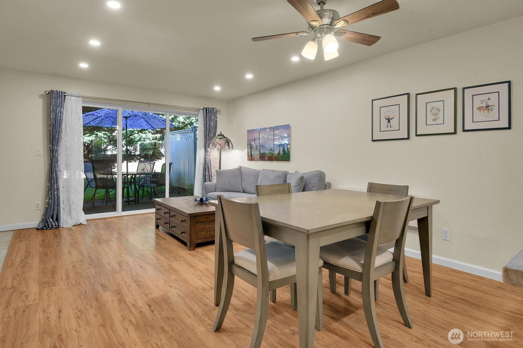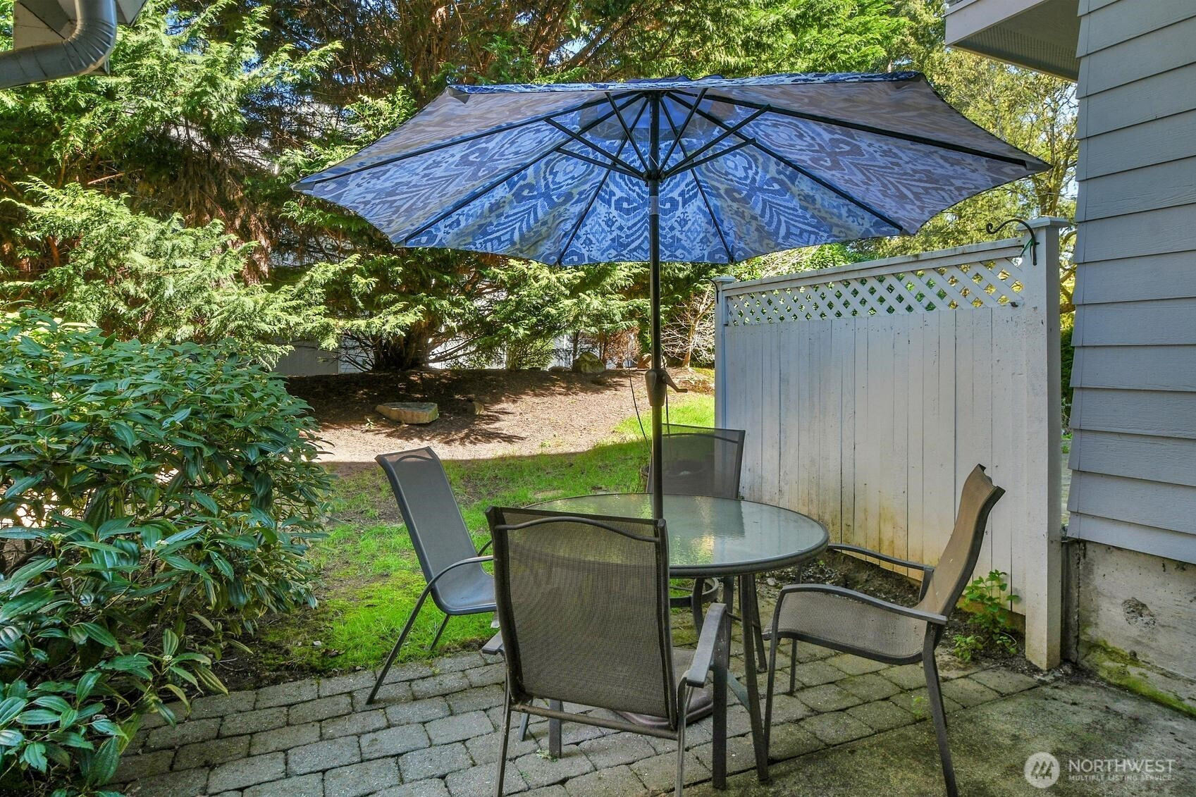 Tucked into a quiet Kirkland community, this beautifully remodeled 2-bed, 2.25-bath townhouse is packed with thoughtful upgrades that set it apart. Full slab marble countertops and undercounter sinks in the kitchen and all bathrooms, full wall backsplash on two walls, and a Samsung Smart induction range with convection, air fryer, and steam options make this kitchen a standout. Actual Pergo floors throughout — no carpet anywhere. Flush LED lighting with dimmer switches and multi-warmth settings eliminate the need for lamps. Built-in shelving frames an enclosed fireplace with flat screen mounting area and dedicated media outlets. Individual climate control in each bedroom, updated heating, and north-facing rear windows keep things cool all summer. Shaded patio with extra storage outside. Stackable washer/dryer frees the other half for pantry use. Close to waterfront parks, schools, shopping, and freeway access. Every detail has been considered — JUST MOVE IN!