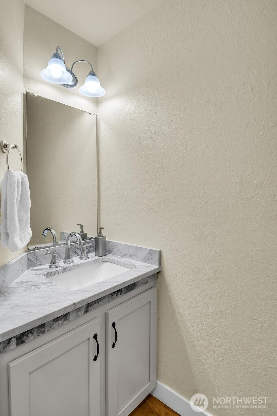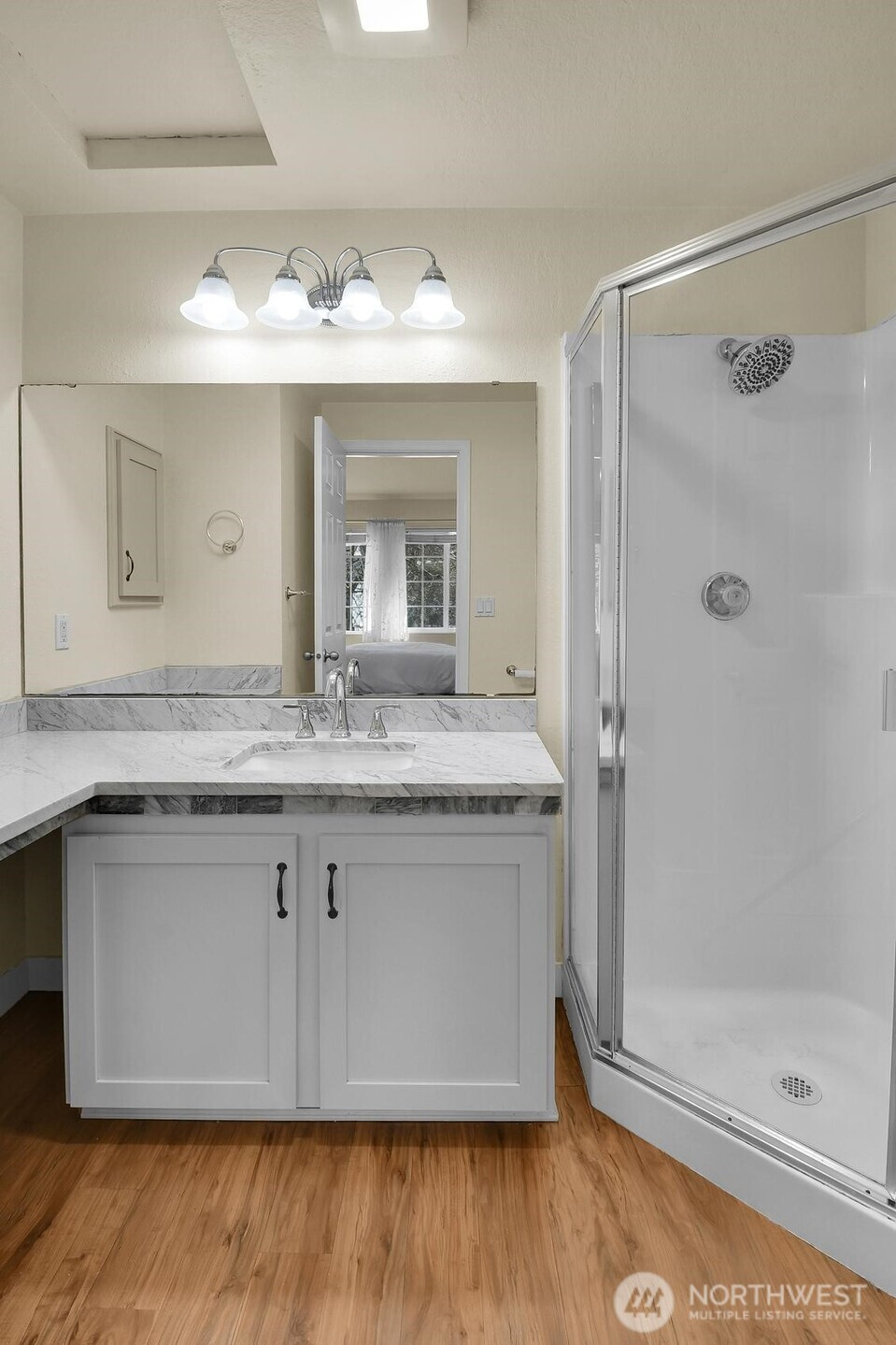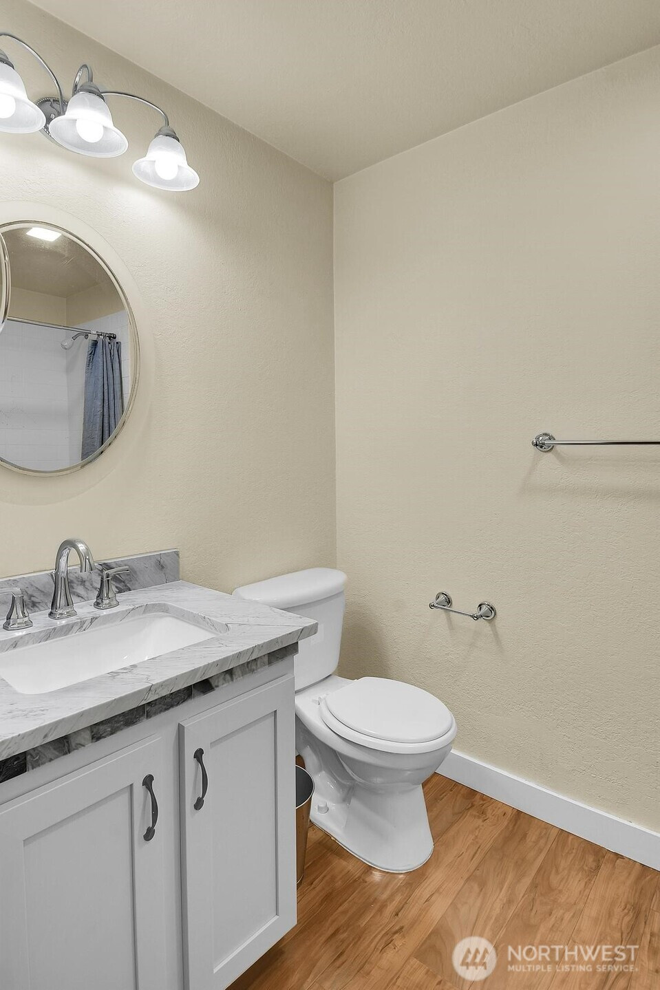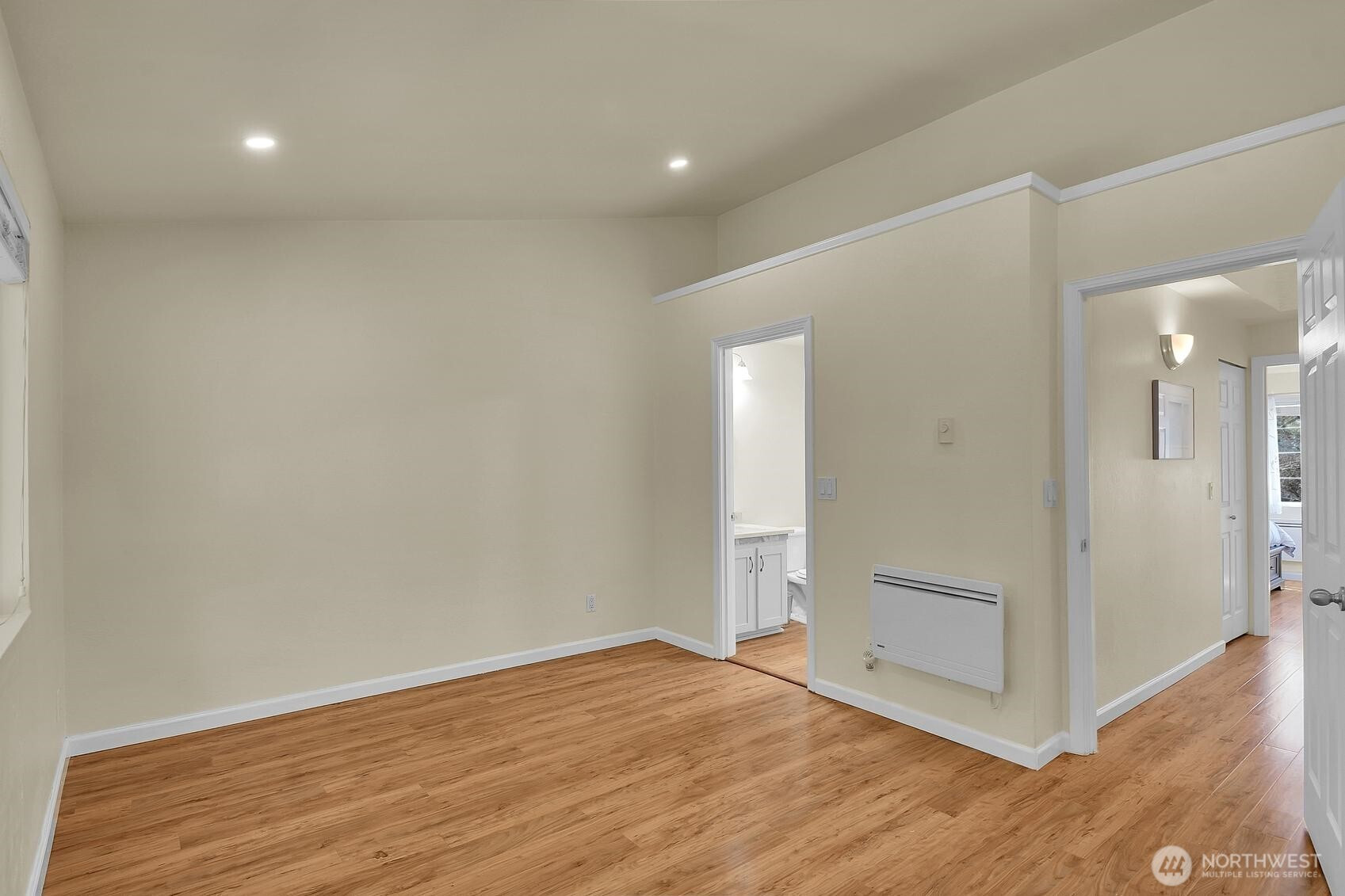 Tucked into a quiet Kirkland community, this beautifully remodeled 2-bed, 2.25-bath townhouse is packed with thoughtful upgrades that set it apart. Full slab marble countertops and undercounter sinks in the kitchen and all bathrooms, full wall backsplash on two walls, and a Samsung Smart induction range with convection, air fryer, and steam options make this kitchen a standout. Actual Pergo floors throughout — no carpet anywhere. Flush LED lighting with dimmer switches and multi-warmth settings eliminate the need for lamps. Built-in shelving frames an enclosed fireplace with flat screen mounting area and dedicated media outlets. Individual climate control in each bedroom, updated heating, and north-facing rear windows keep things cool all summer. Shaded patio with extra storage outside. Stackable washer/dryer frees the other half for pantry use. Close to waterfront parks, schools, shopping, and freeway access. Every detail has been considered — JUST MOVE IN!
